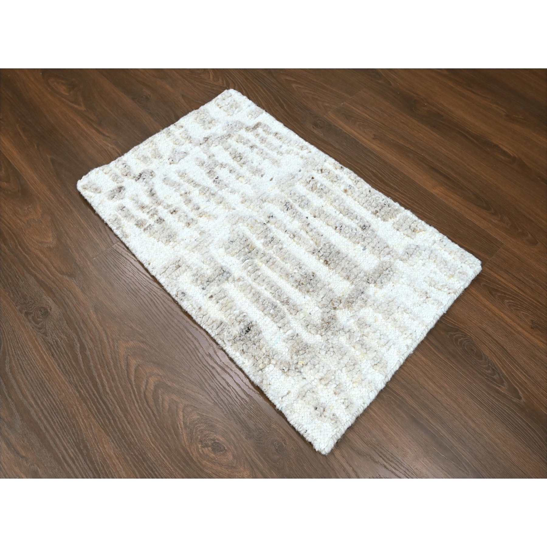 2’x2’9″ Bone White, Minimalist Swedish Design, Hand Knotted, Organic Wool, Sample, Mat, Oriental Rug HR10346