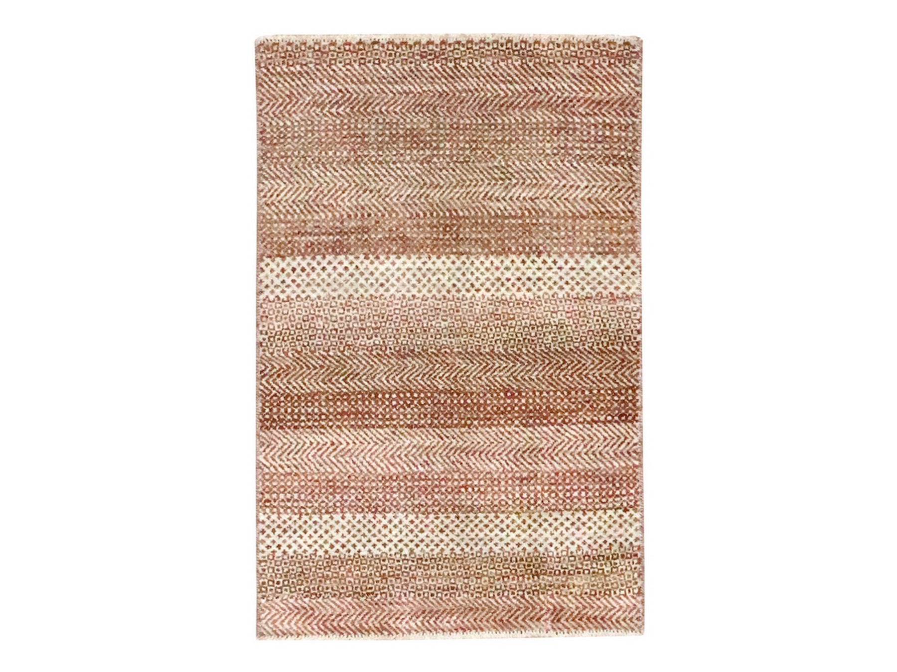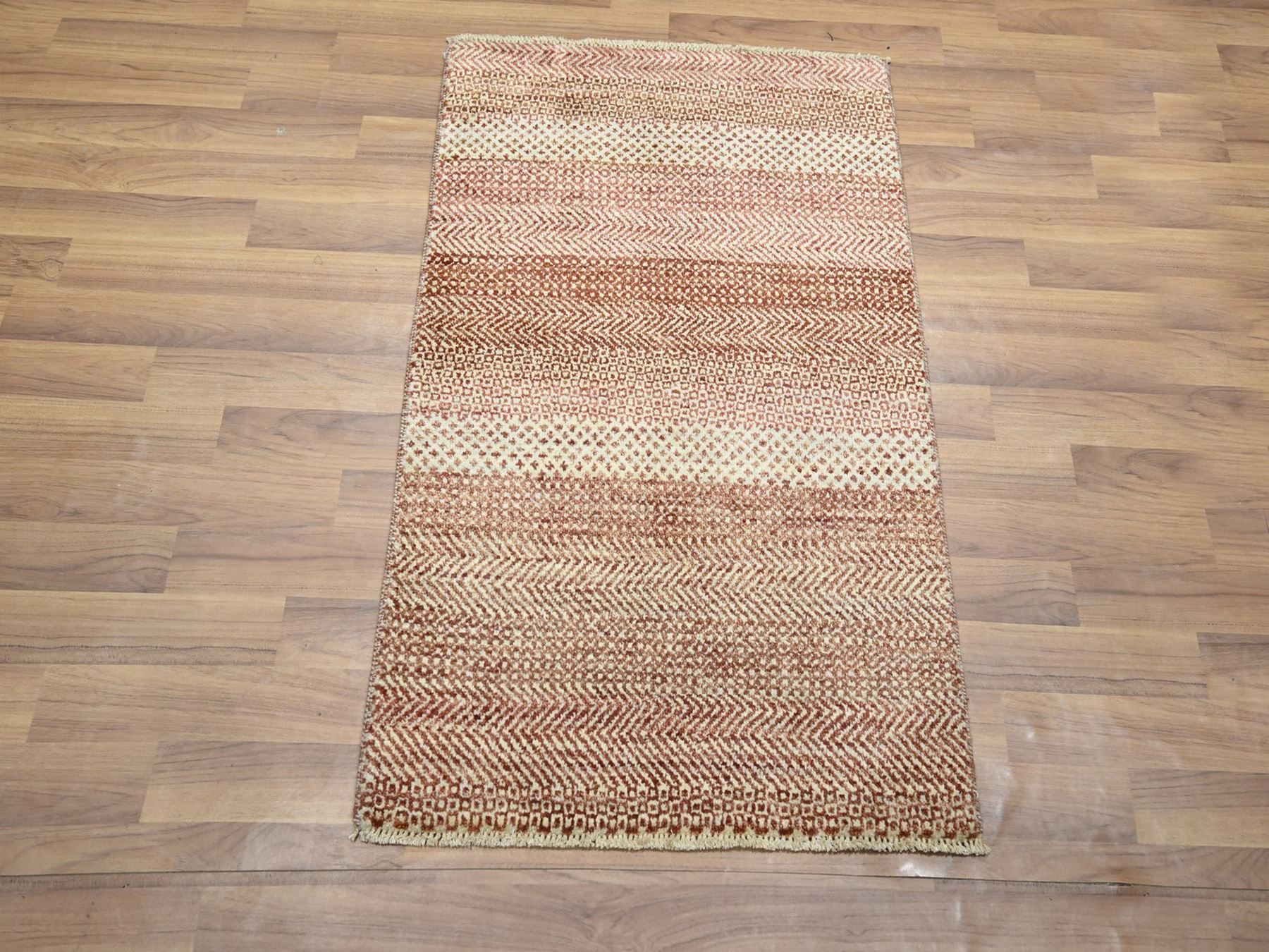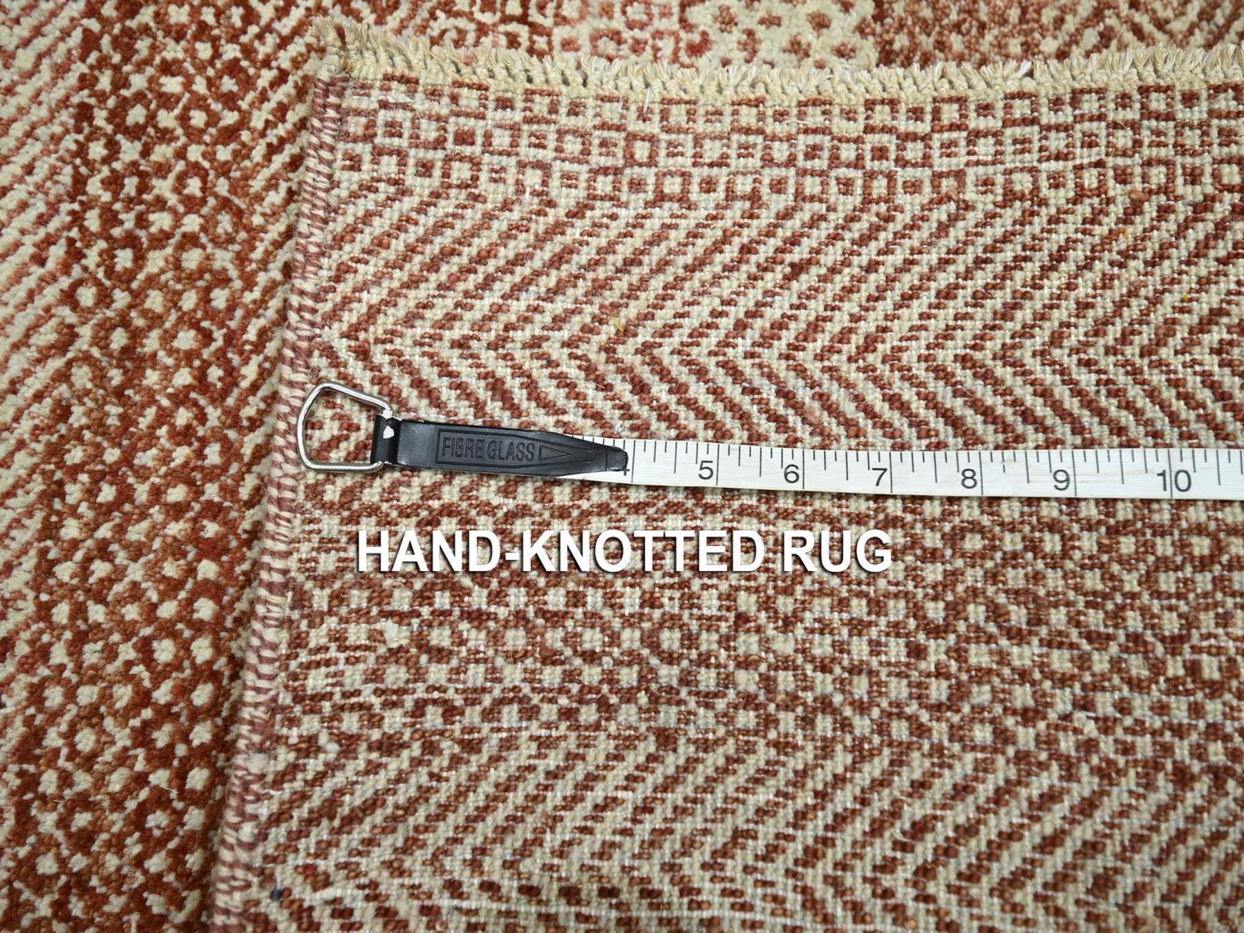 2’x3′ Beige-Red, Modern Grass Design, Tone on Tone, Wool and Silk, Hand Knotted, Mat, Sample, Oriental Rug HR76597