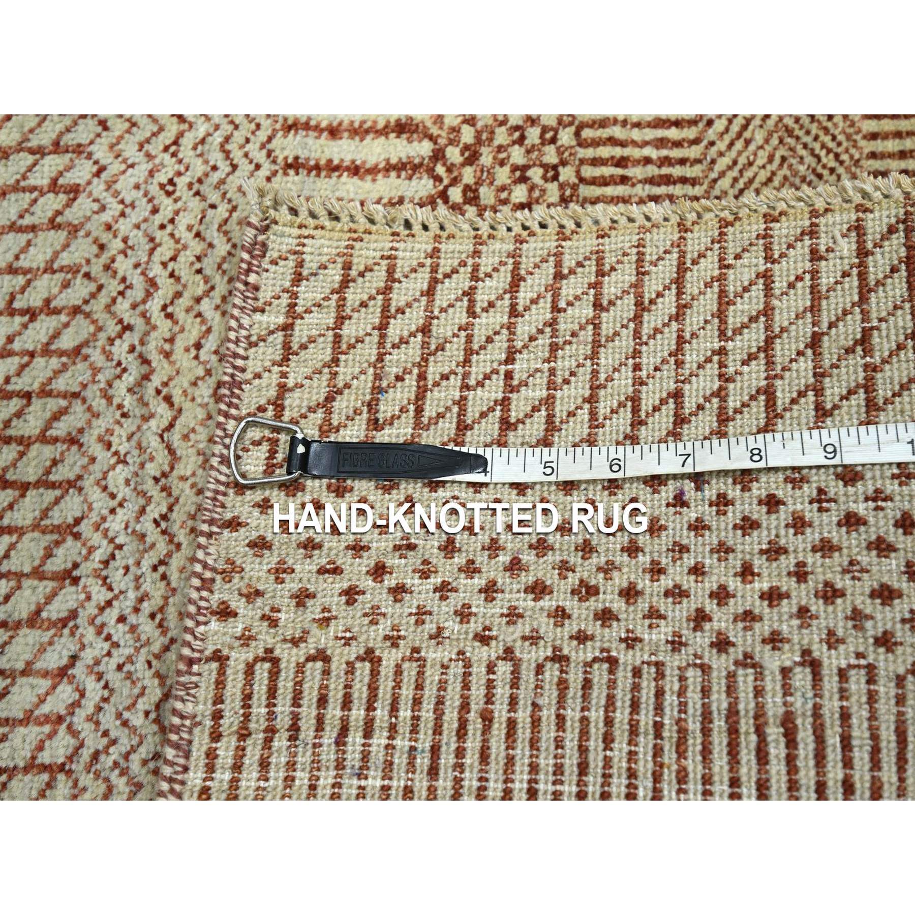2’x3′ Beige-Rust, Modern Grass Design, Hand Knotted, Wool with touch of Silk, Tone on Tone, Lush and Plush, Sample, Mat, Oriental Rug HR76636