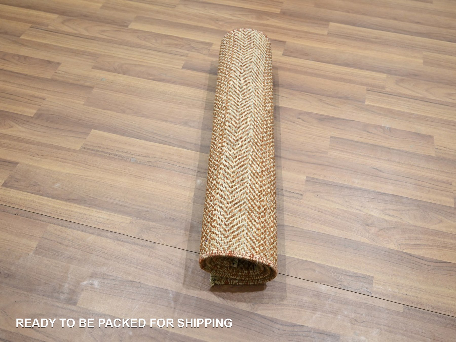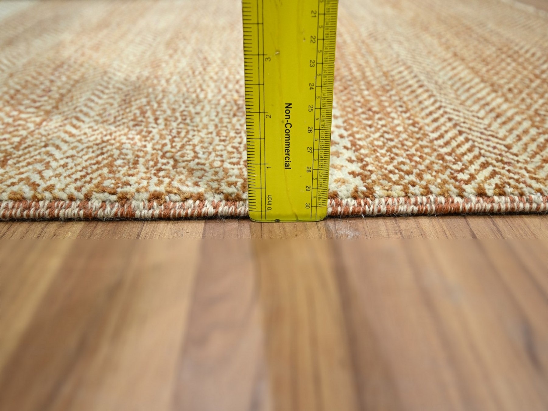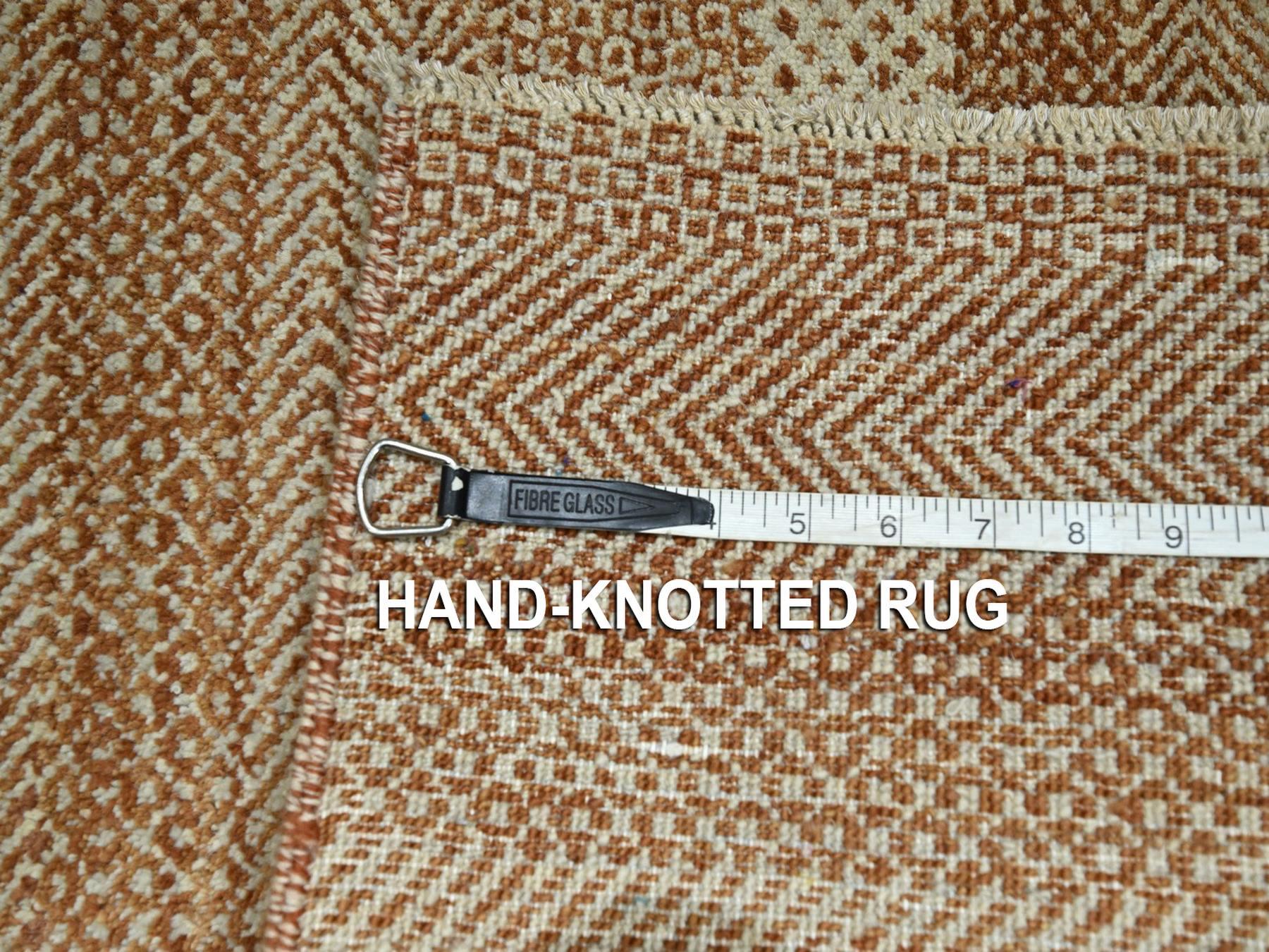 2’x3′ Beige-Rust, Tone on Tone, Modern Grass Design, Hand Knotted, Wool and Silk, Mat, Sample, Oriental Rug HR76598