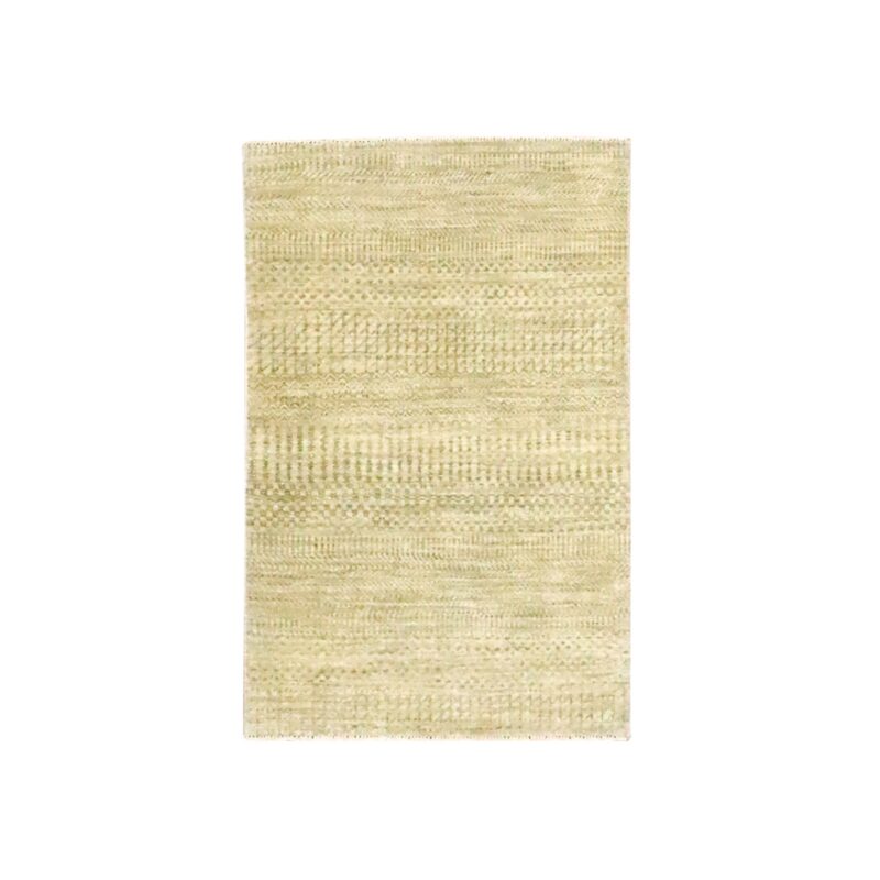 2’x3′ Beige, Tone on Tone, Modern Grass Design, Hand Knotted, Wool with touch of Silk, Lush and Plush, Sample, Mat, Oriental Rug HR76609