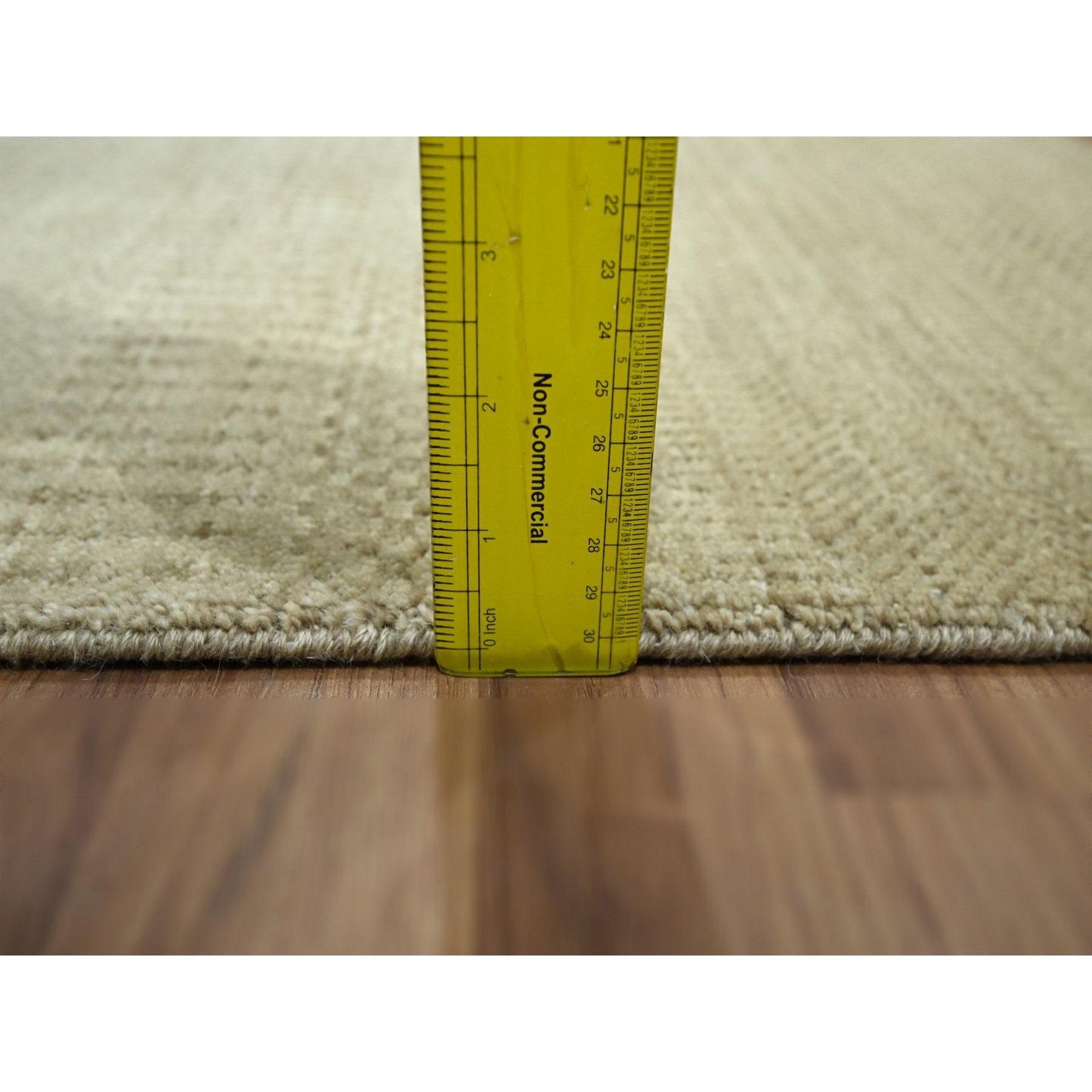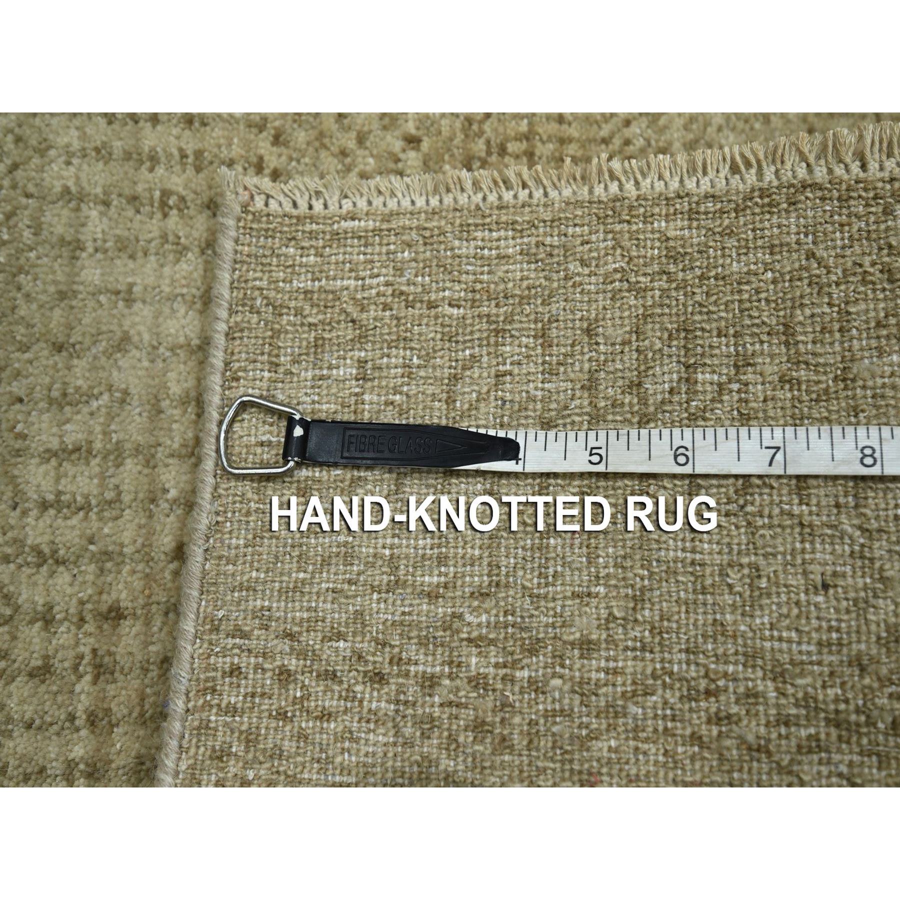 2’x3′ Beige, Wool with touch of Silk, Modern Grass Design, Hand Knotted, Tone on Tone, Lush and Plush, Mat, Sample, Oriental Rug HR76608