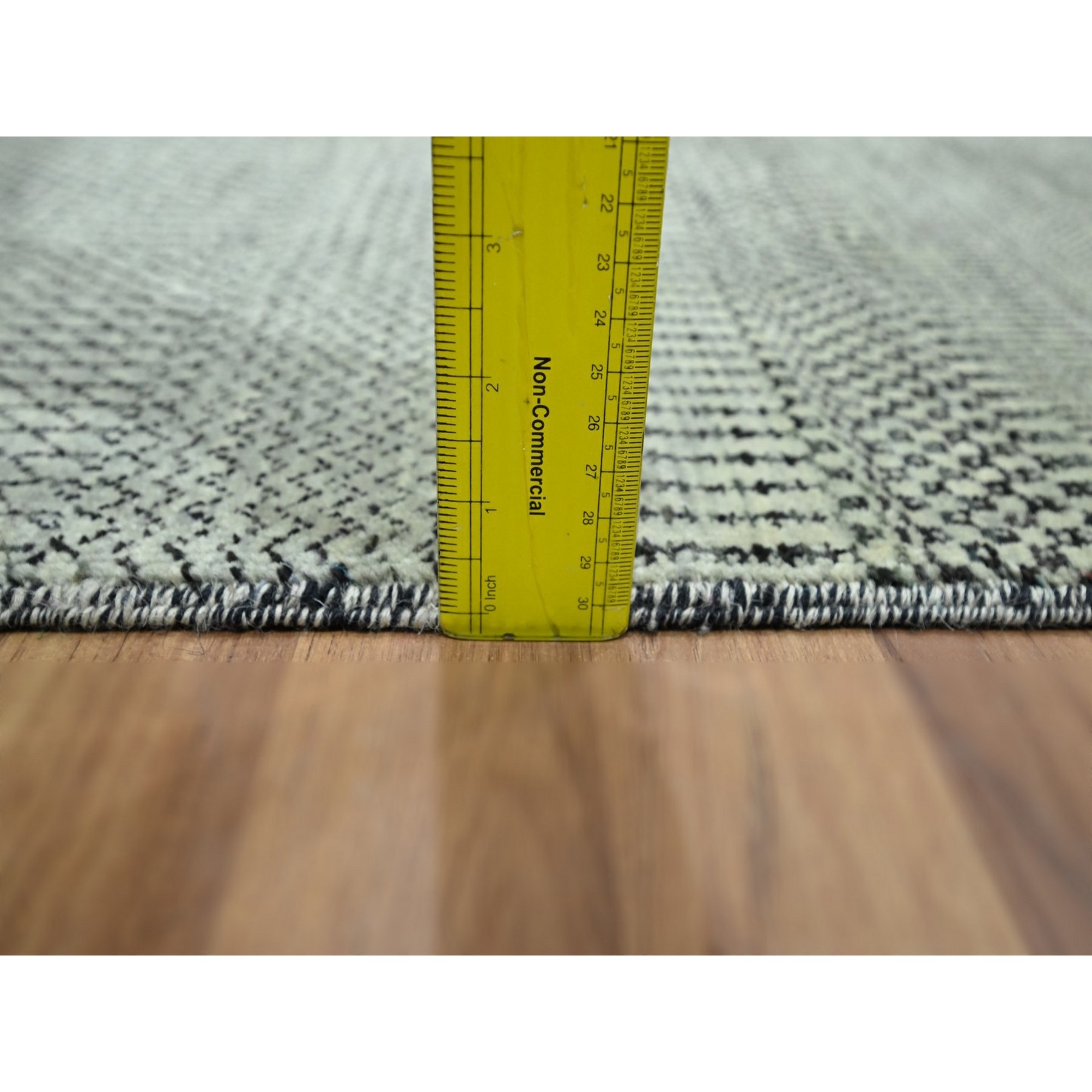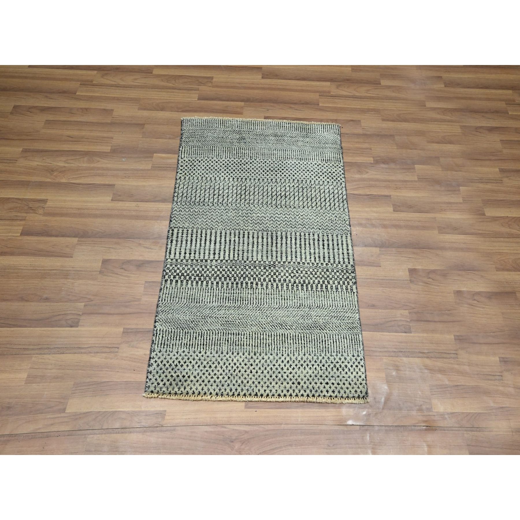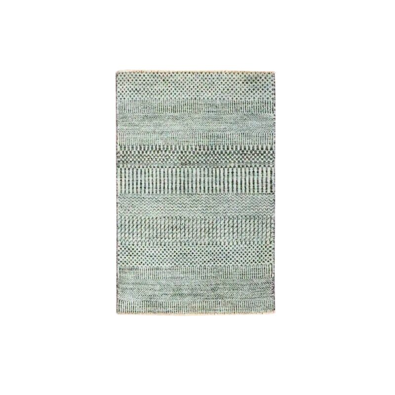 2’x3′ Cloud Gray, Modern Grass Design, Hand Knotted, Wool with touch of Silk, Tone on Tone, Lush and Plush, Sample, Mat, Oriental Rug HR76611
