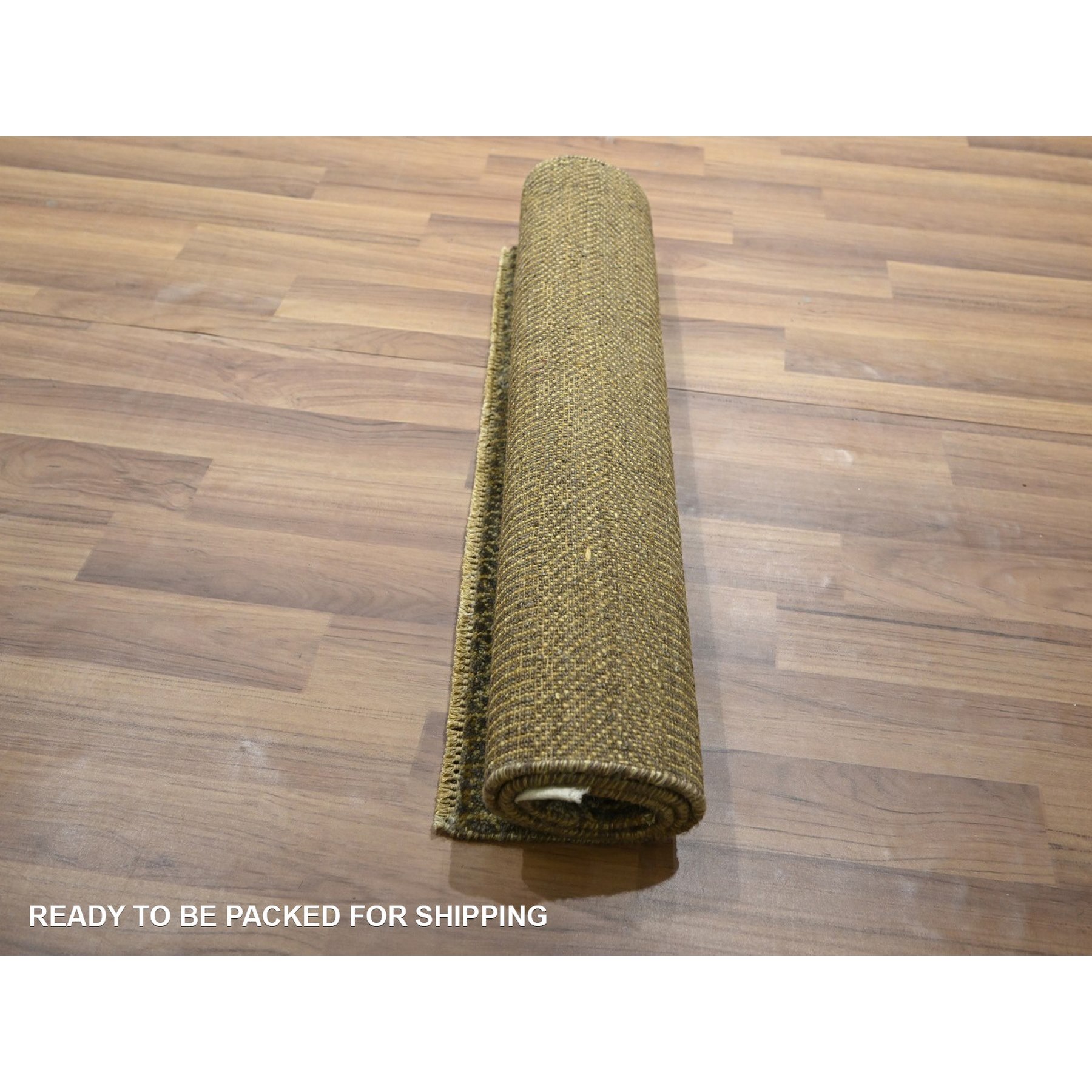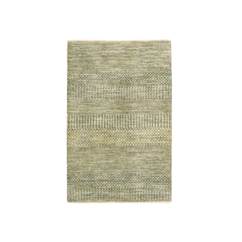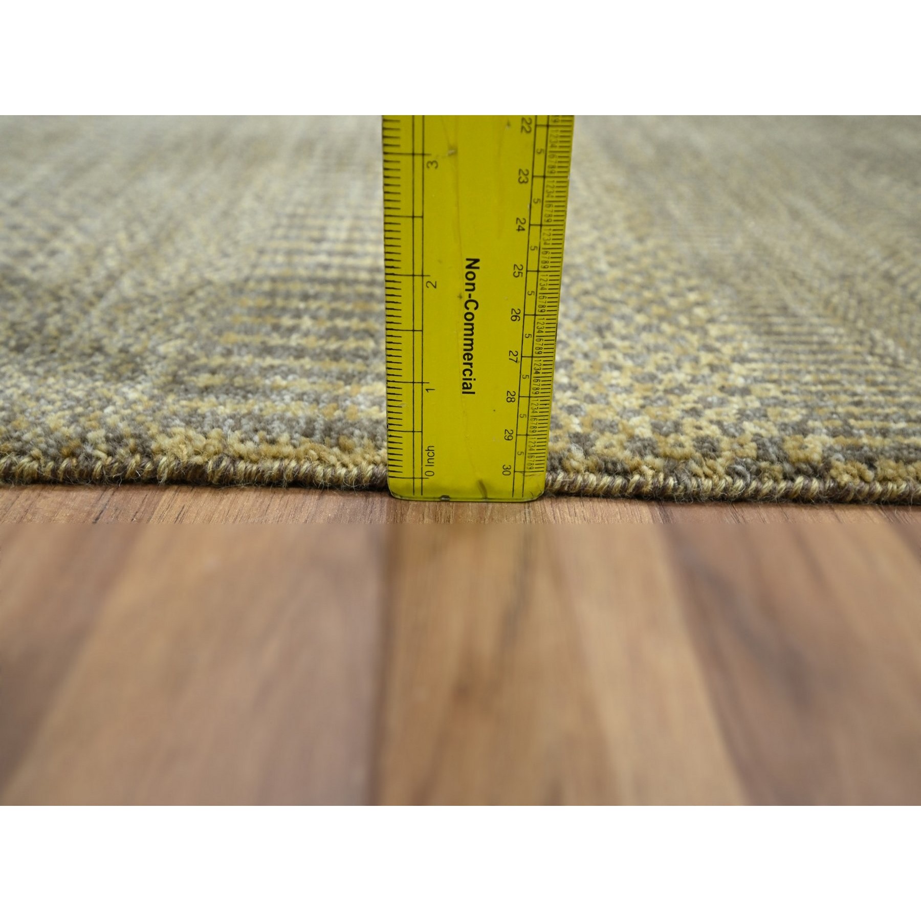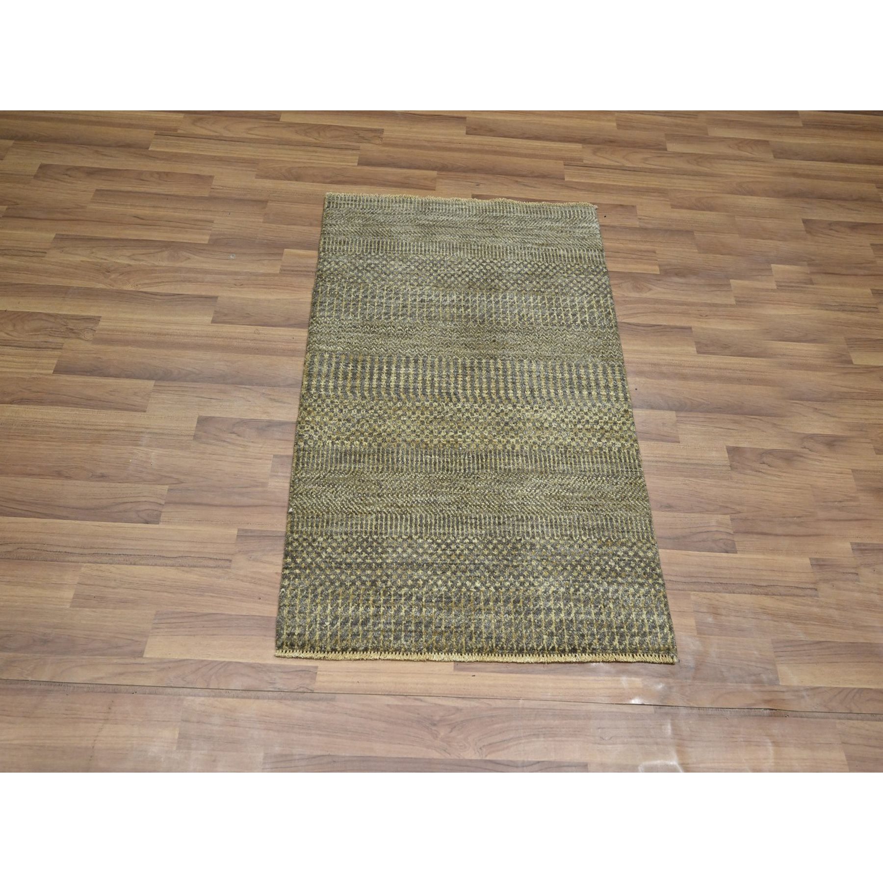 2’x3′ Ecru Brown, Modern Grass Design, Hand Knotted, Wool with touch of Silk, Tone on Tone, Lush and Plush, Mat, Sample, Oriental Rug HR76604