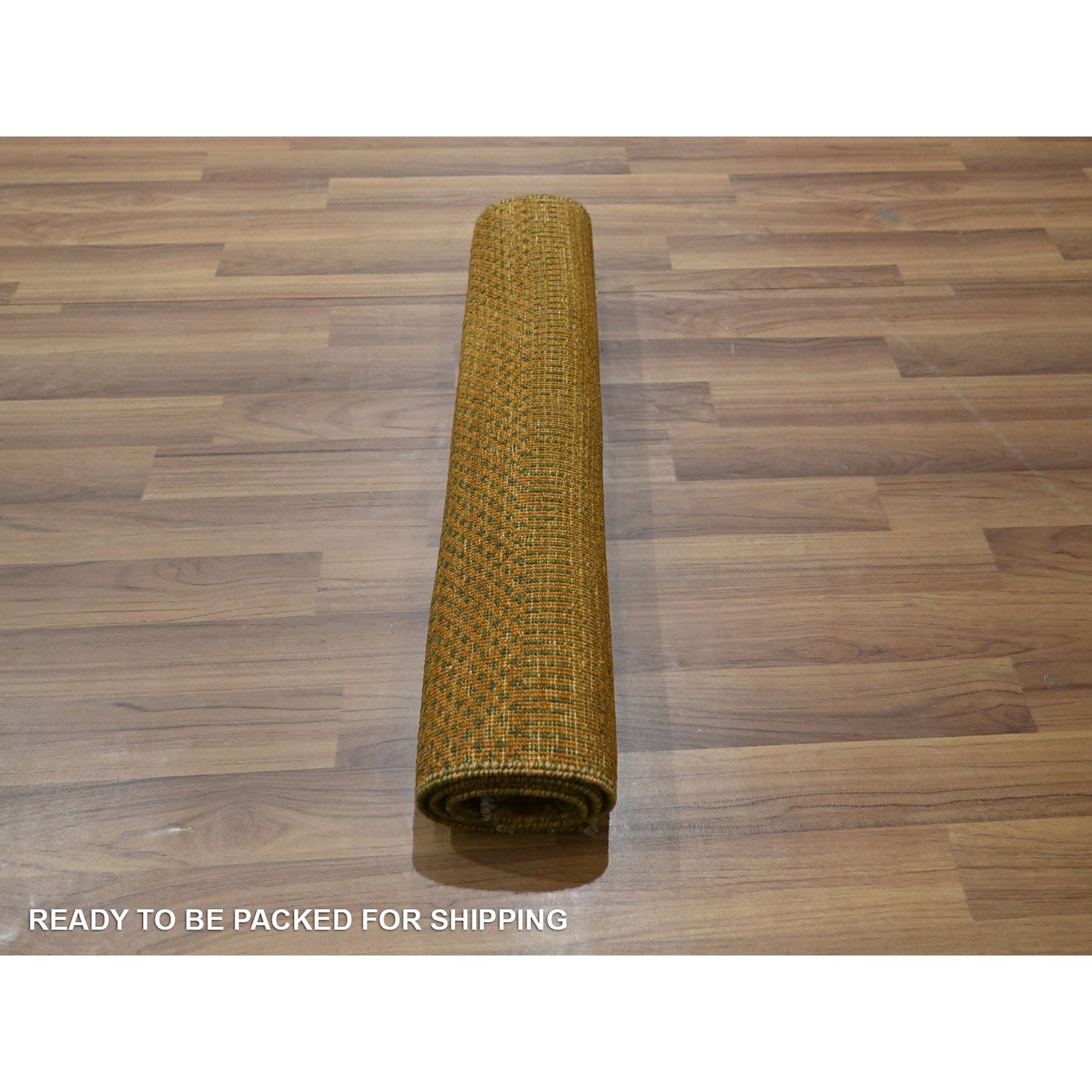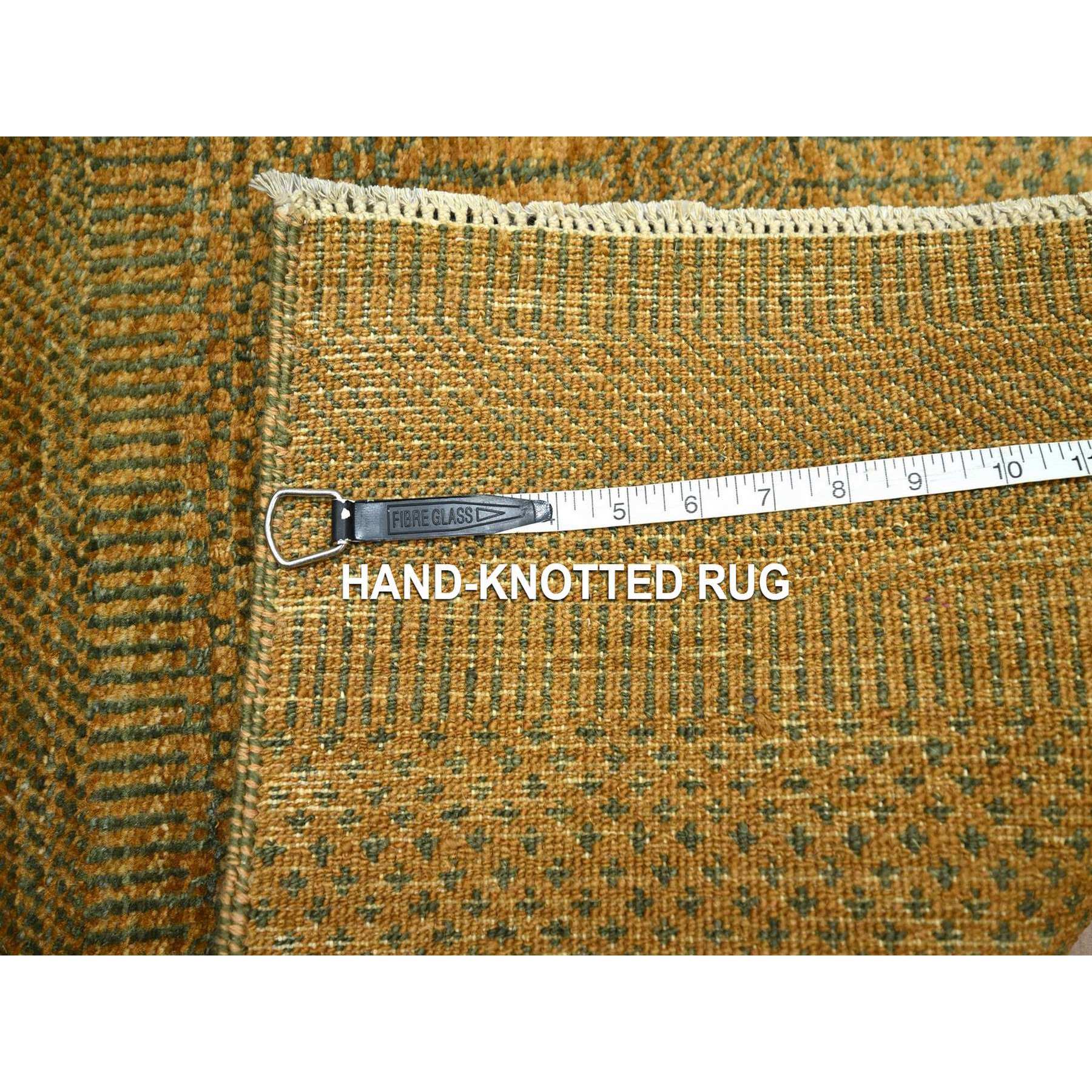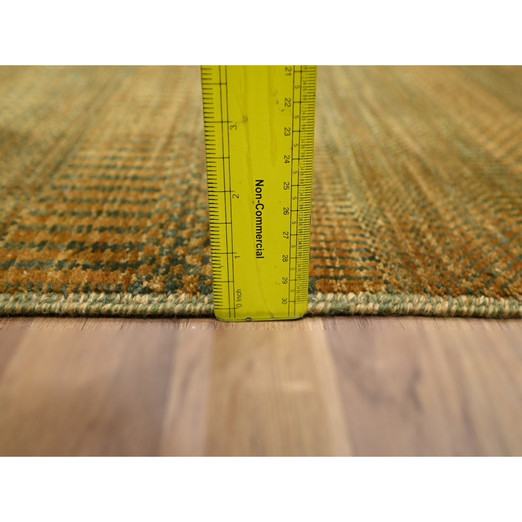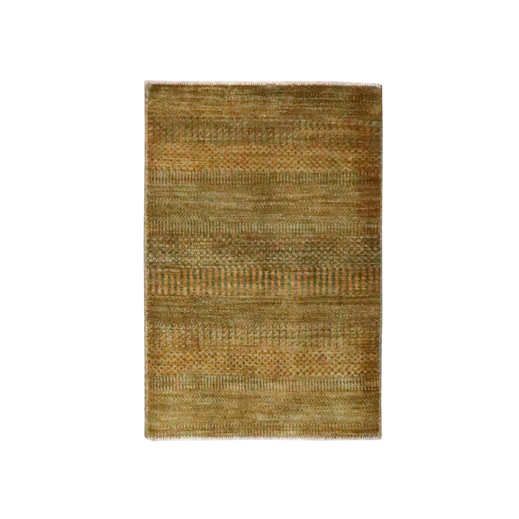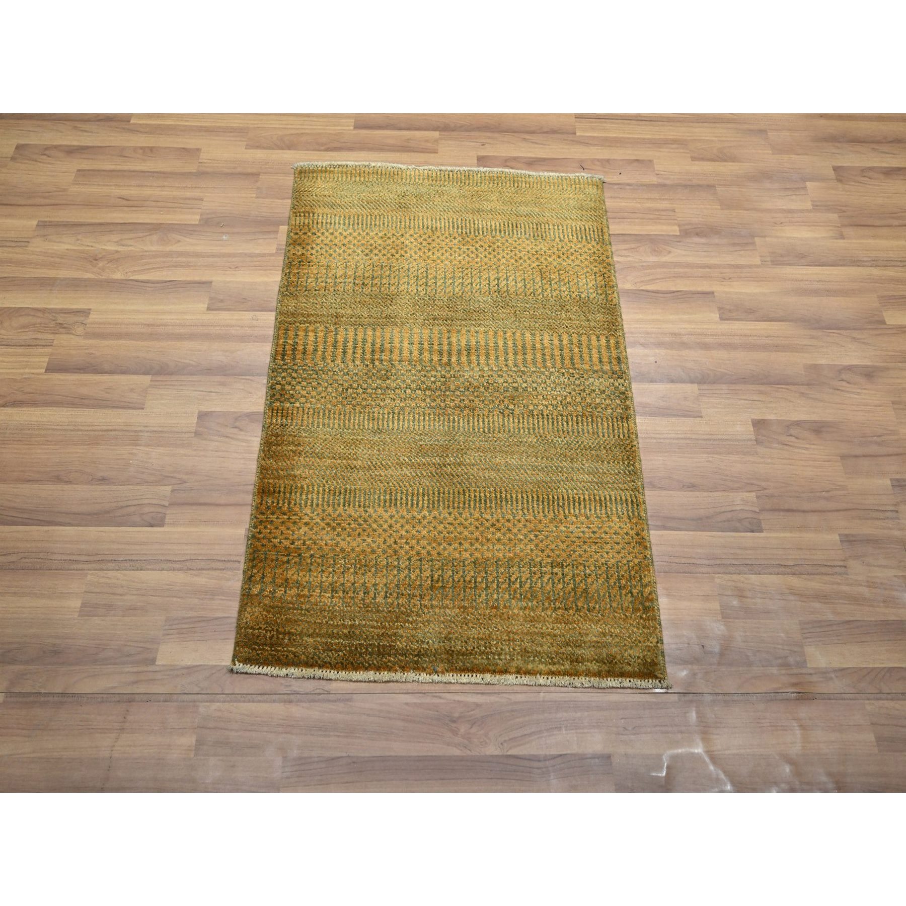 2’x3′ Golden Brown, Modern Grass Design, Hand Knotted, Wool with touch of Silk, Tone on Tone, Lush and Plush, Sample, Mat, Oriental Rug HR76651
