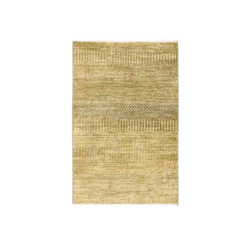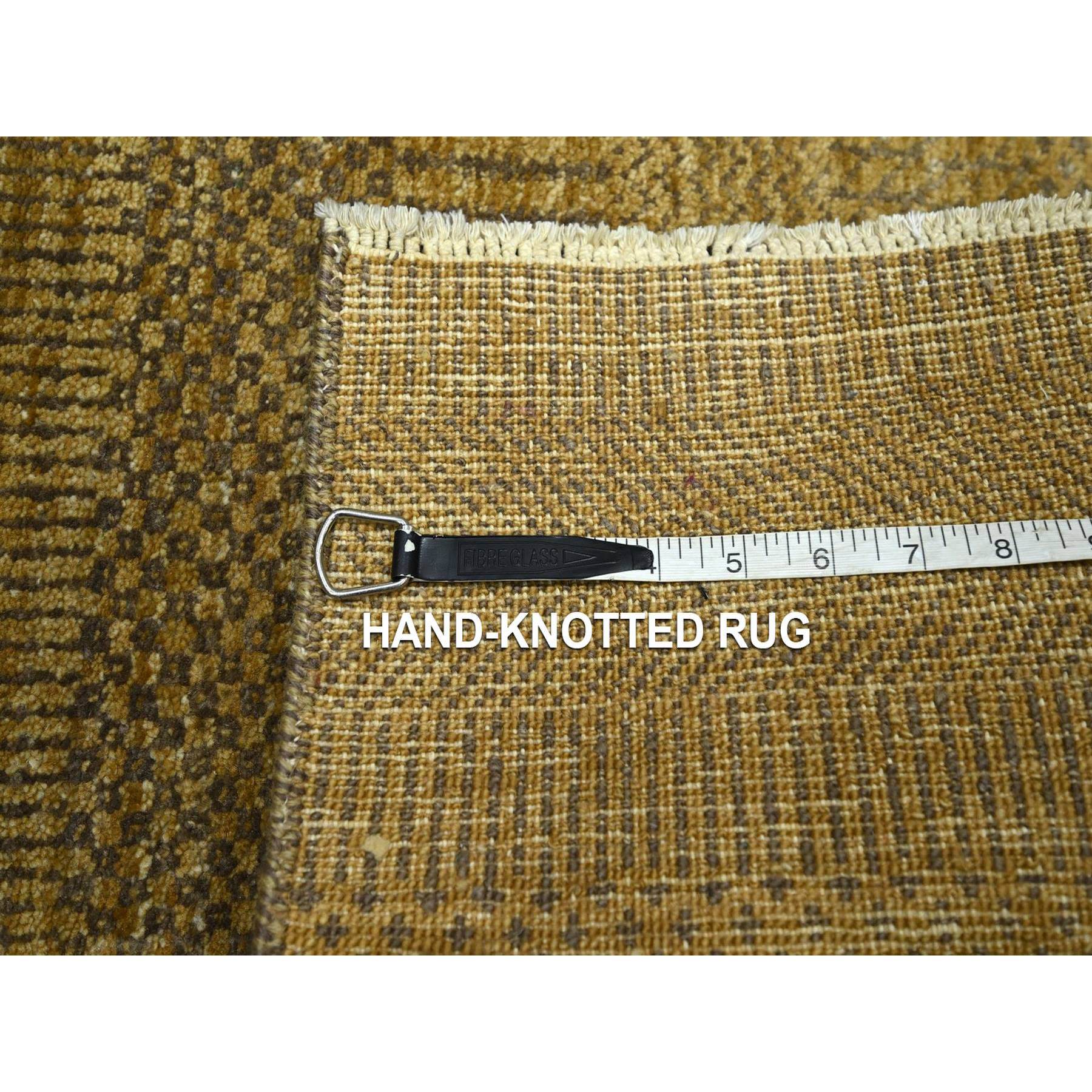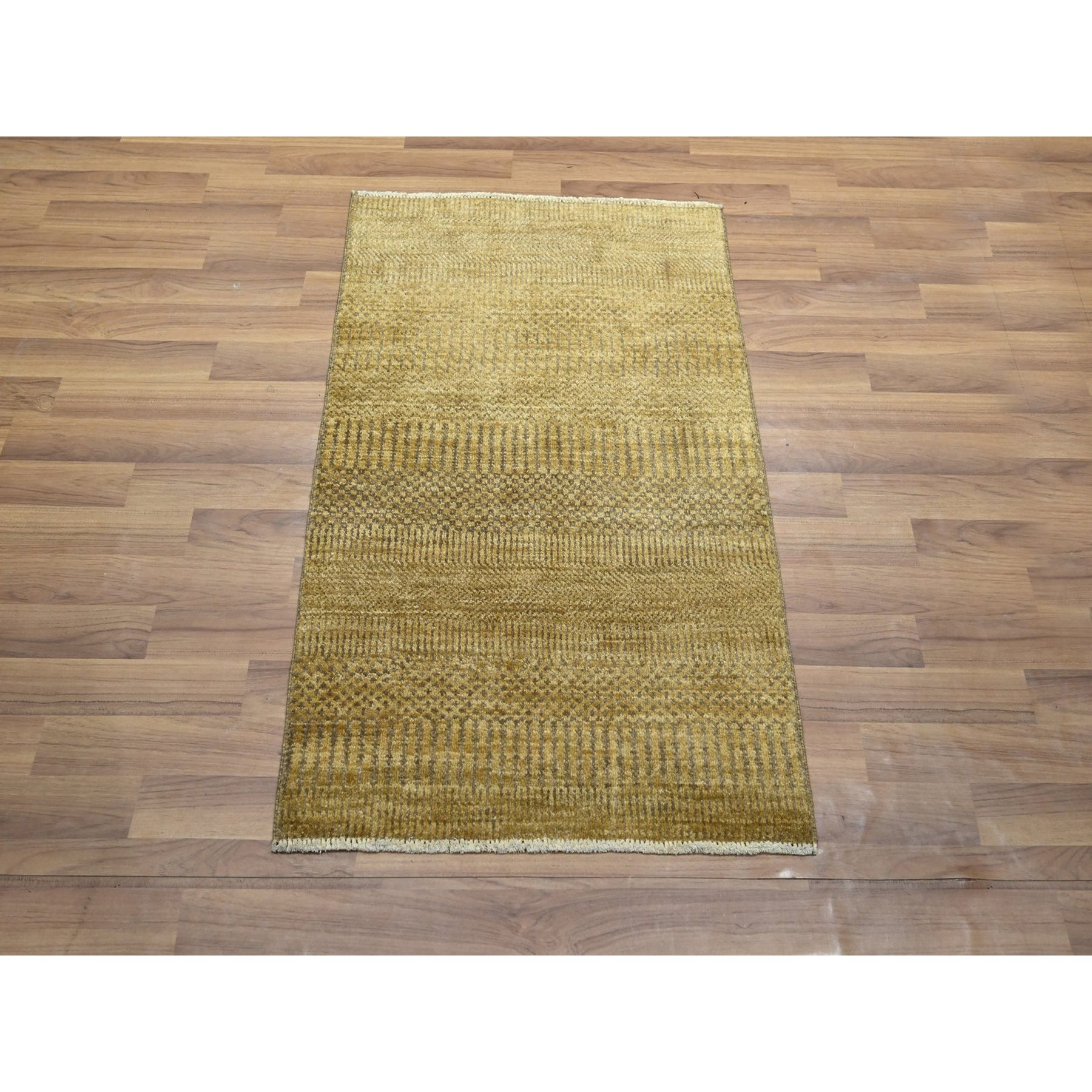 2’x3′ Golden Brown, Modern Grass Design, Hand Knotted, Wool with touch of Silk, Tone on Tone, Lush and Plush, Sample, Mat, Oriental Rug HR76659