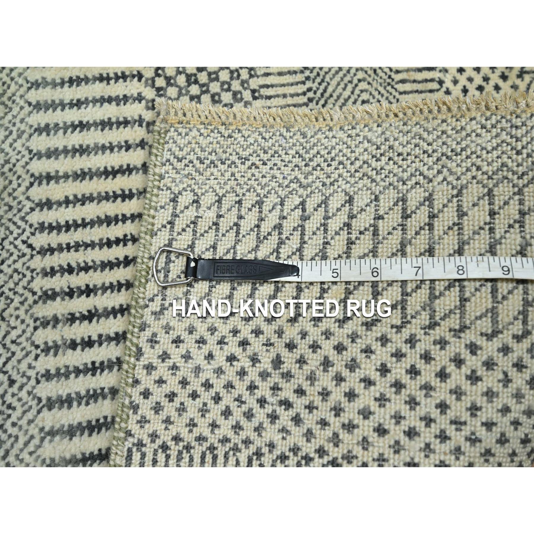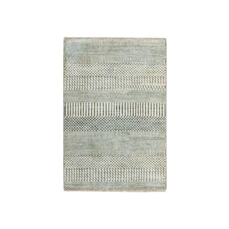 2’x3′ Gray-Beige, Modern Grass Design, Hand Knotted, Wool with touch of Silk, Tone on Tone, Lush and Plush, Sample, Mat, Oriental Rug HR76619