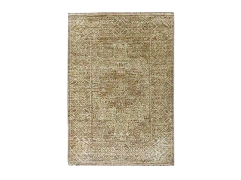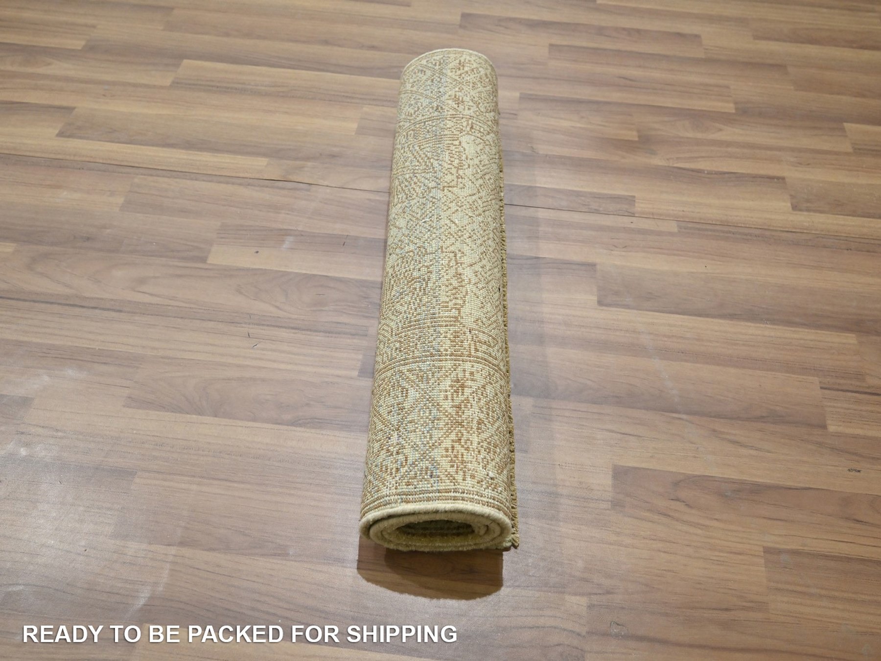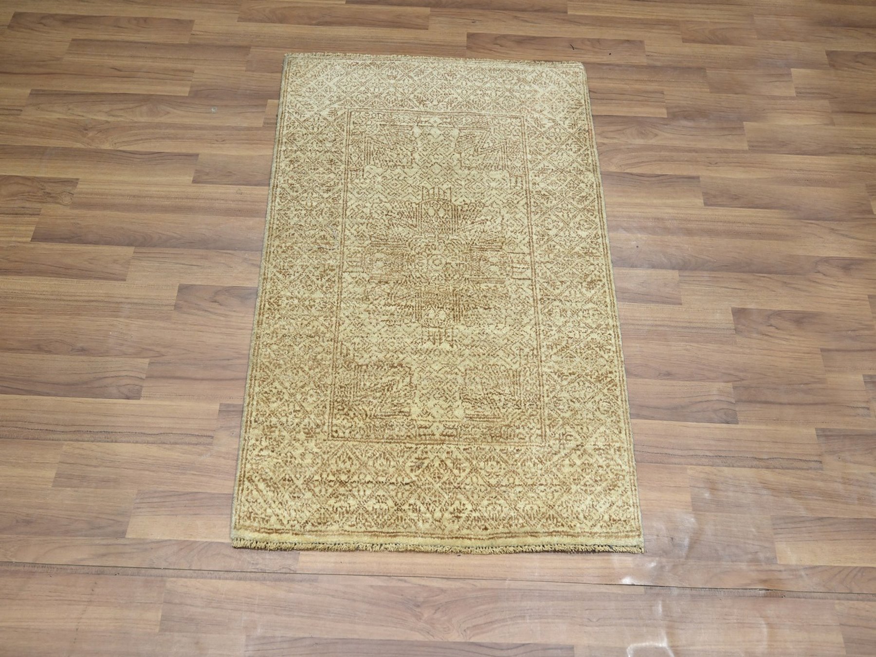 2’x3′ Honey Brown, Intricate Repetitive Geometric Design, Tone on Tone, Wool and Silk, Hand Knotted, Mat, Sample, Oriental Rug HR76677