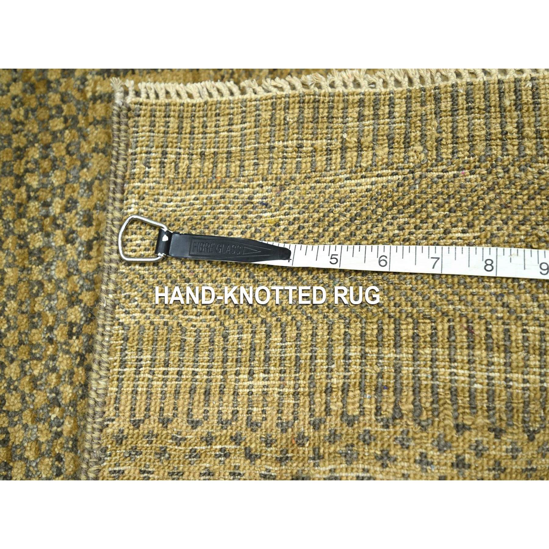 2’x3′ Honey Brown, Modern Grass Design, Hand Knotted, Wool with touch of Silk, Tone on Tone, Lush and Plush, Sample, Mat, Oriental Rug HR76623