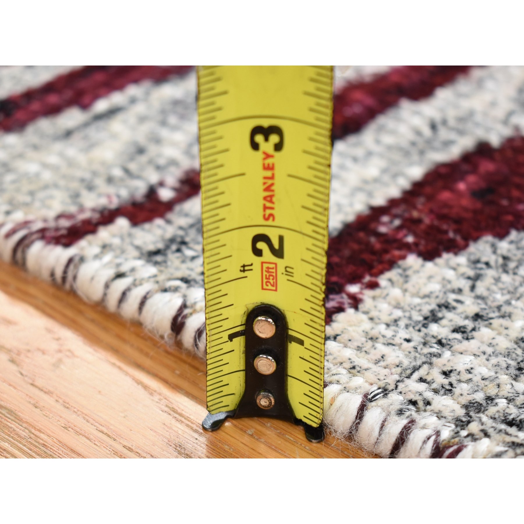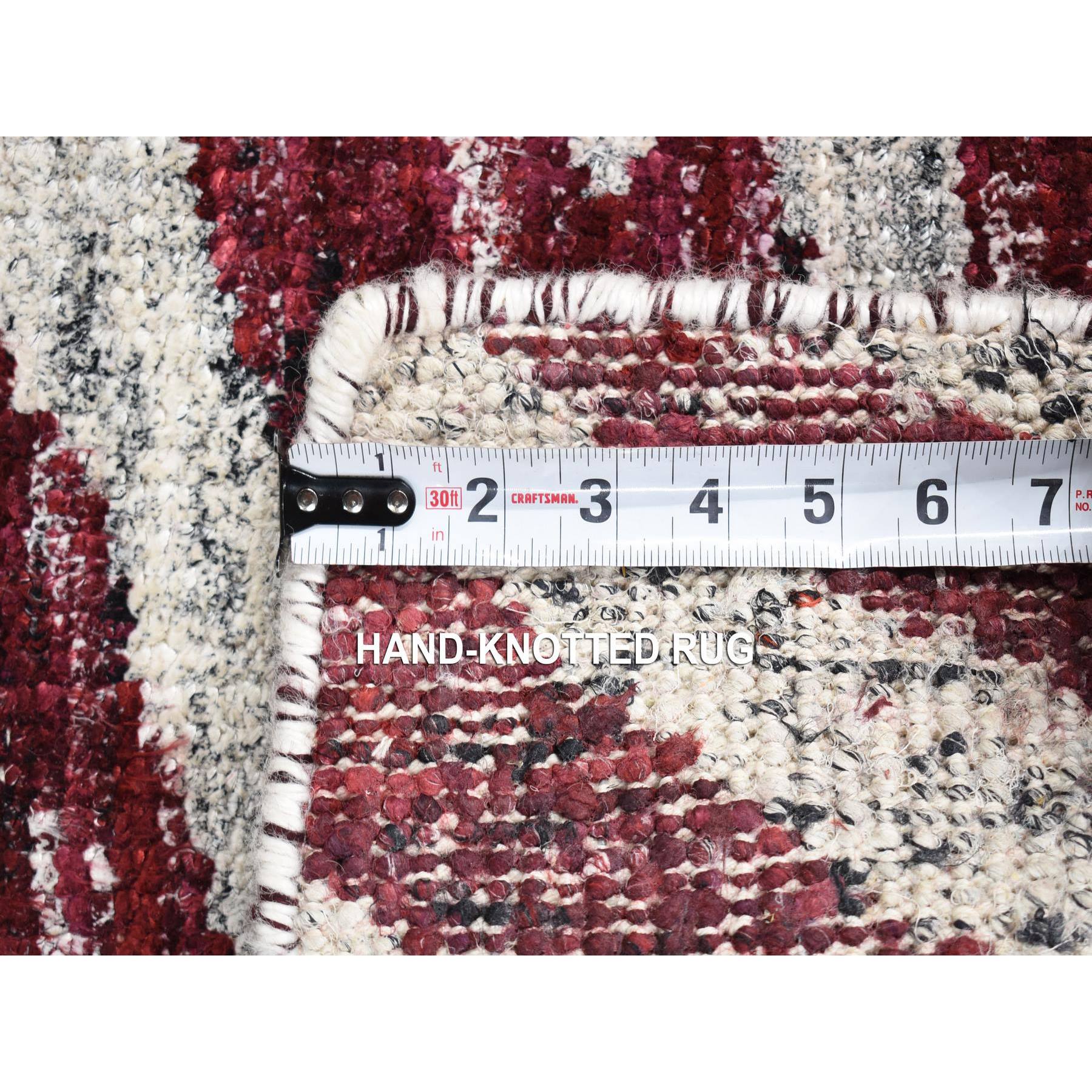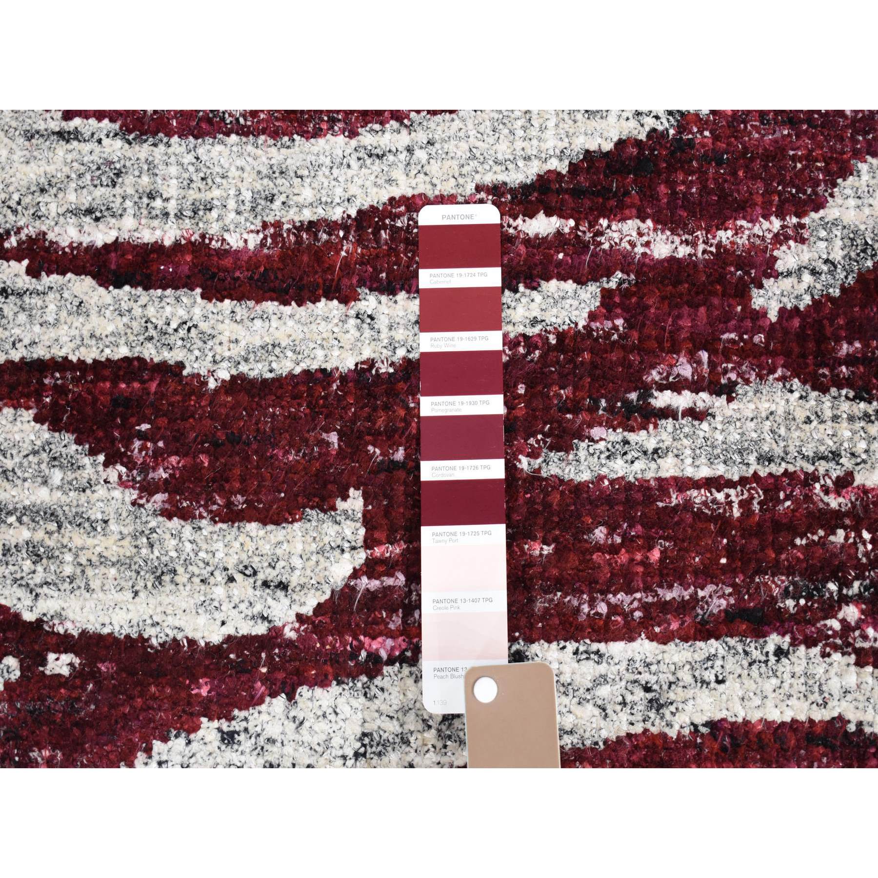 2’x3′ Ivory and Burgundy Red, Modern with Tree Bark Design, Hand Knotted Sari Silk, Mat Oriental Rug HR80614