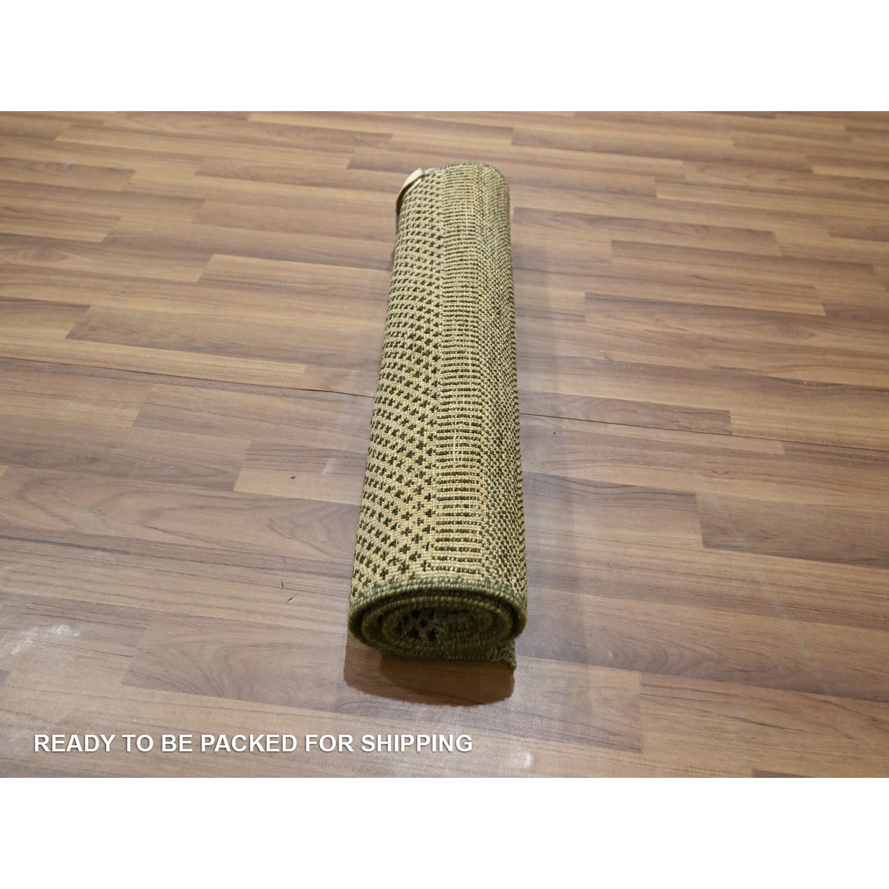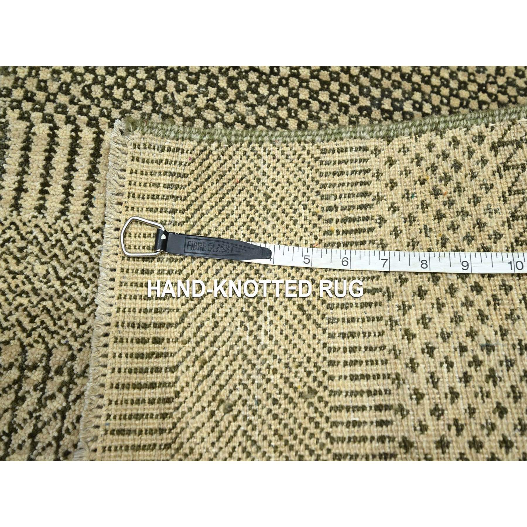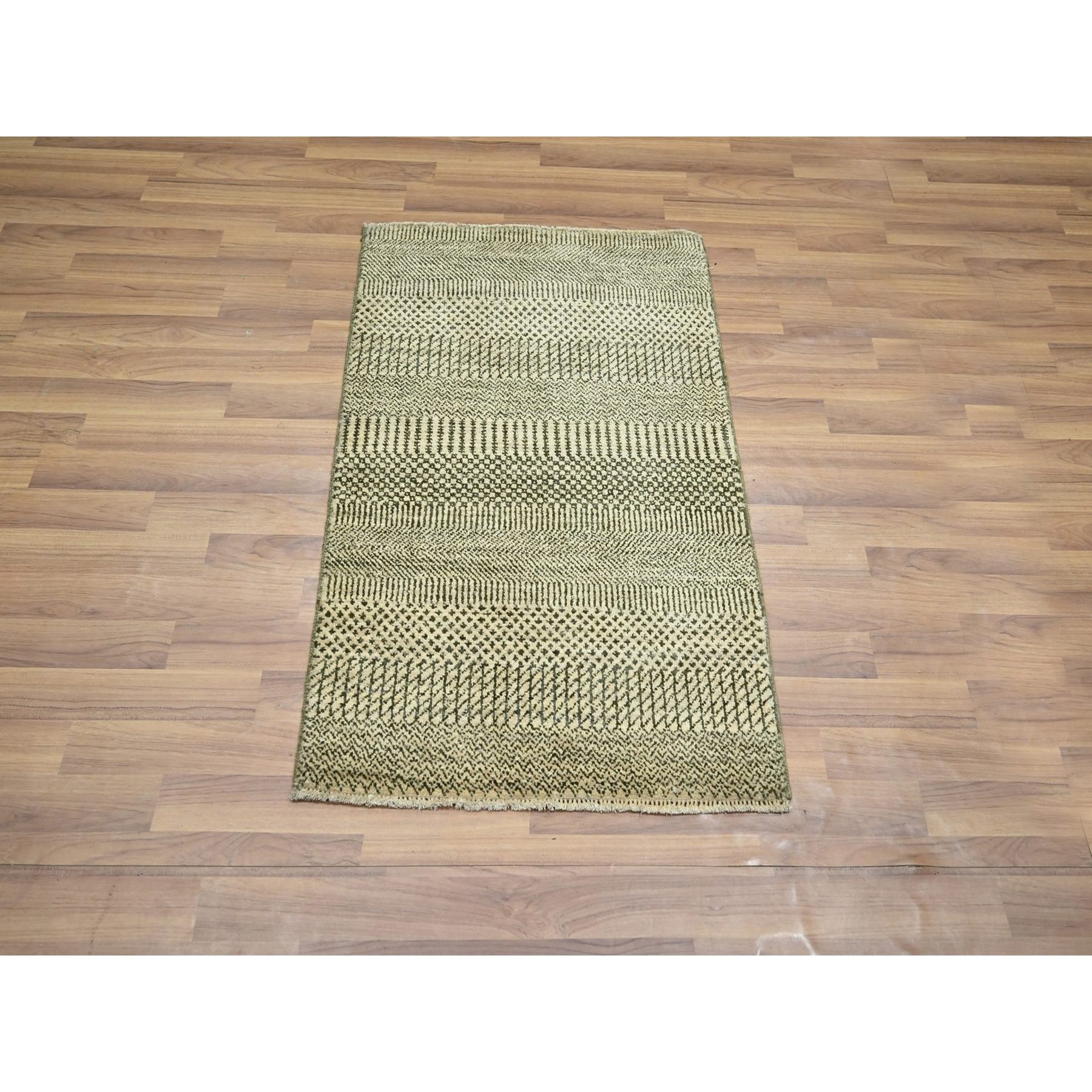 2’x3′ Khaki Brown, Modern Grass Design, Hand Knotted, Wool with touch of Silk, Tone on Tone, Lush and Plush, Mat, Sample, Oriental Rug HR76633