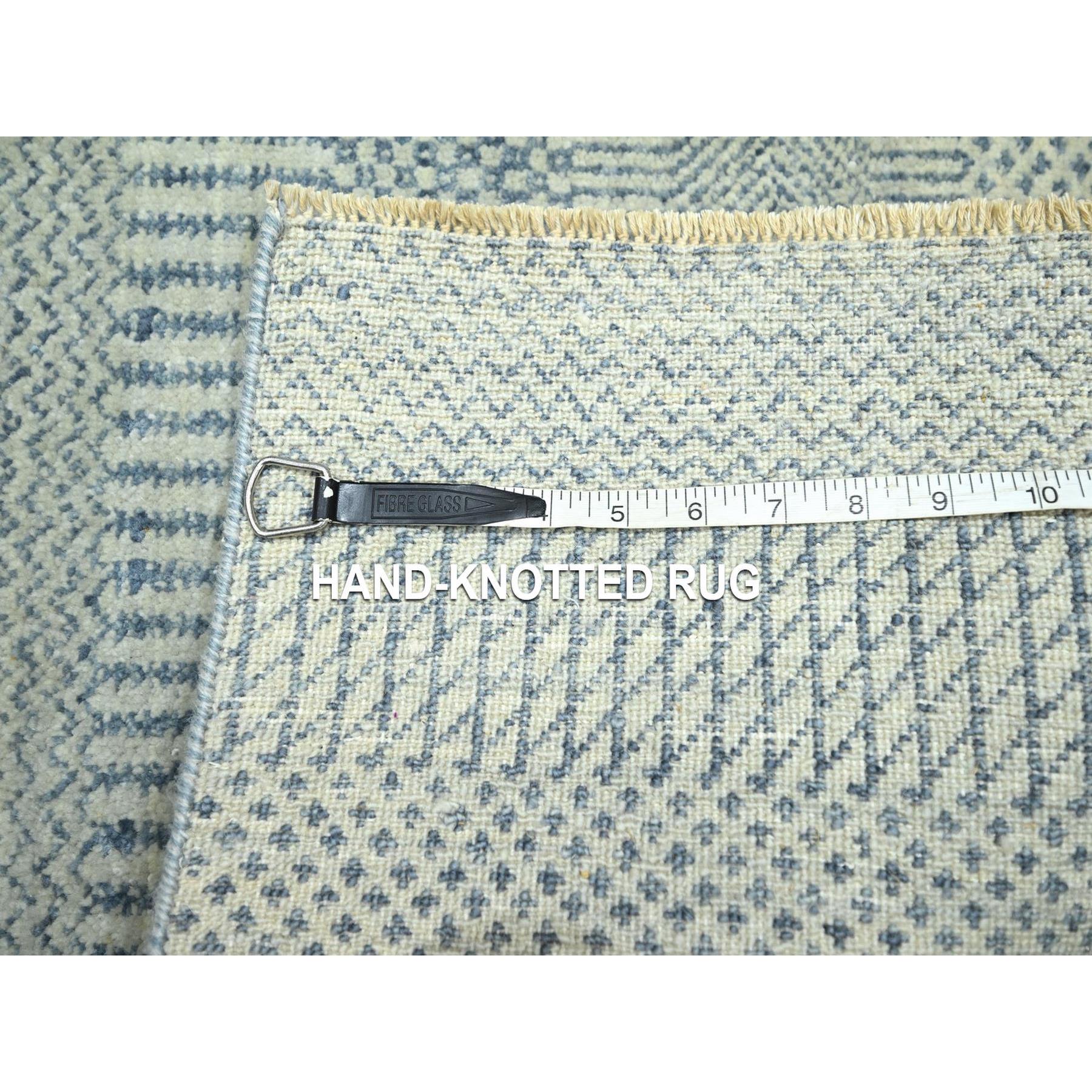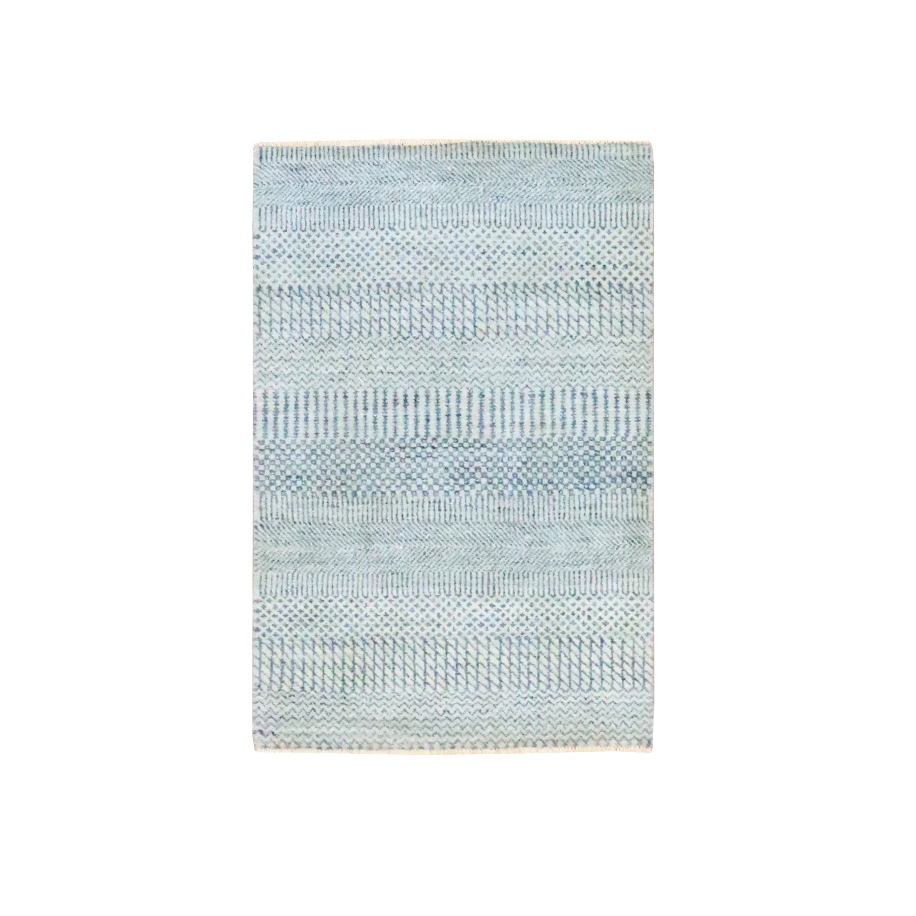 2’x3′ Sky Blue, Tone on Tone, Modern Grass Design, Hand Knotted, Wool with touch of Silk, Lush and Plush, Sample, Mat, Oriental Rug HR76624