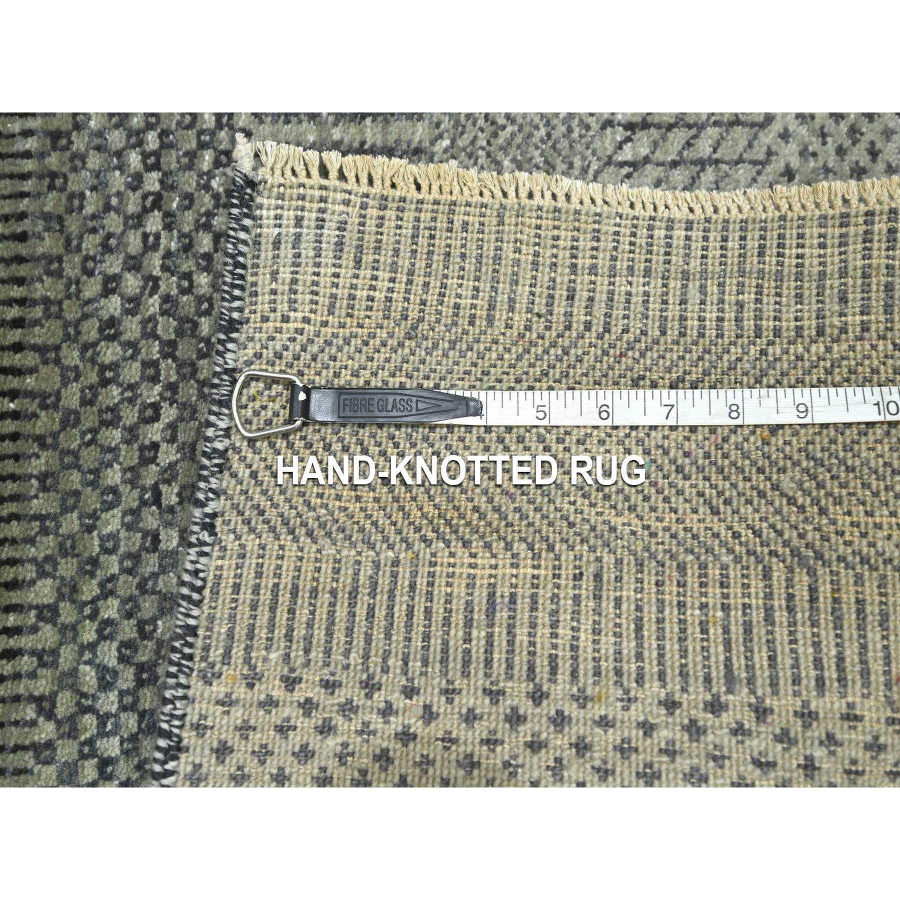 2’x3′ Sonic Gray, Modern Grass Design, Hand Knotted, Wool with touch of Silk, Tone on Tone, Lush and Plush, Sample, Mat, Oriental Rug HR76648