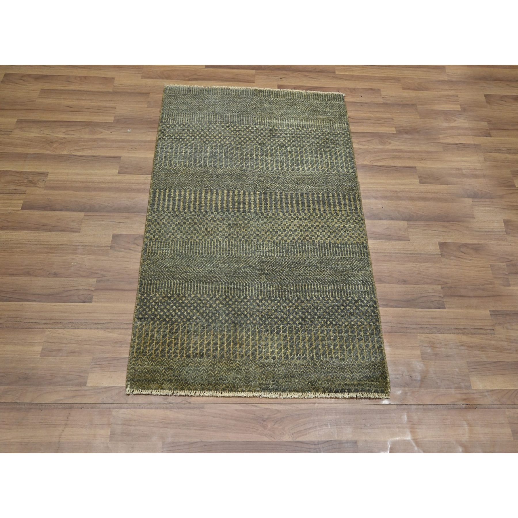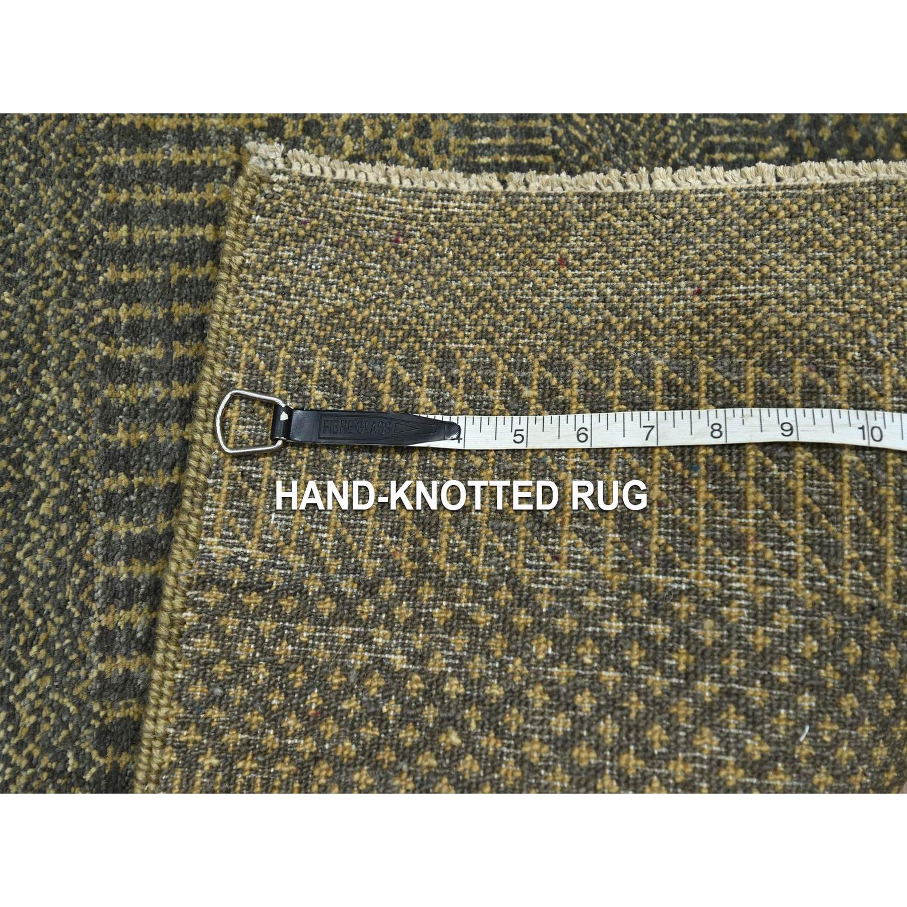 2’x3′ Umber Brown, Hand Knotted, Modern Grass Design, Wool with touch of Silk, Tone on Tone, Lush and Plush, Sample, Mat, Oriental Rug HR76649
