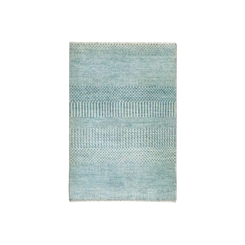 2’x3′ Yonder Blue, Modern Grass Design, Hand Knotted, Wool with touch of Silk, Tone on Tone, Lush and Plush, Sample, Mat, Oriental Rug HR76627