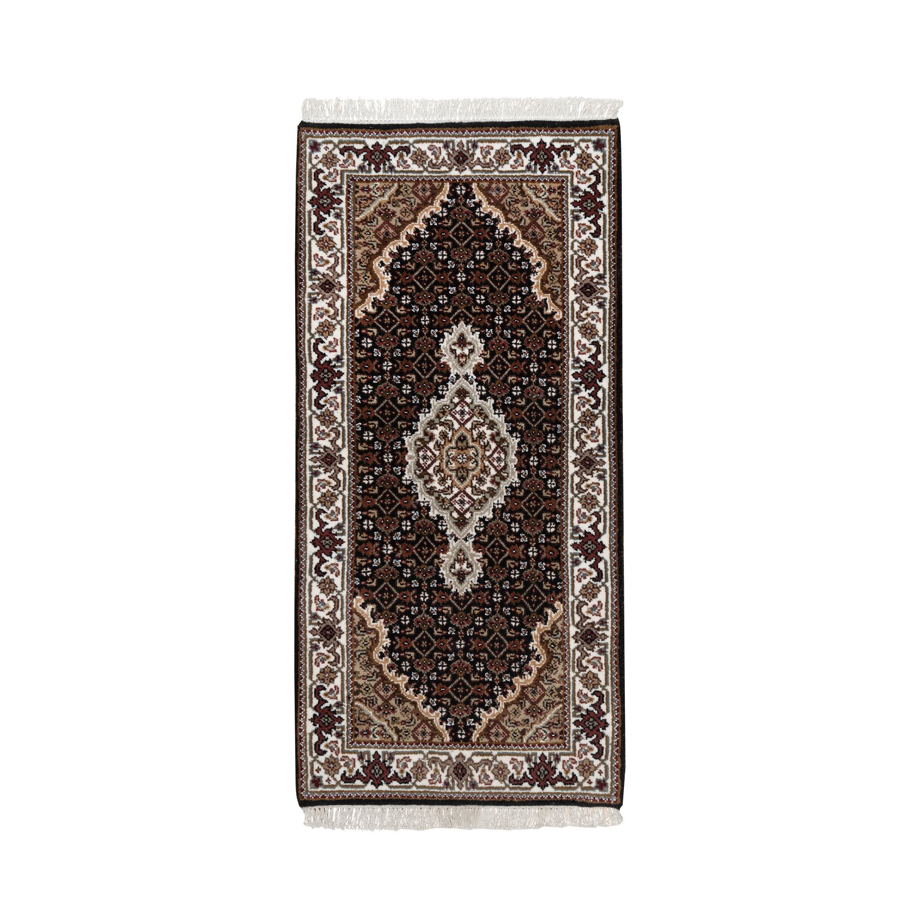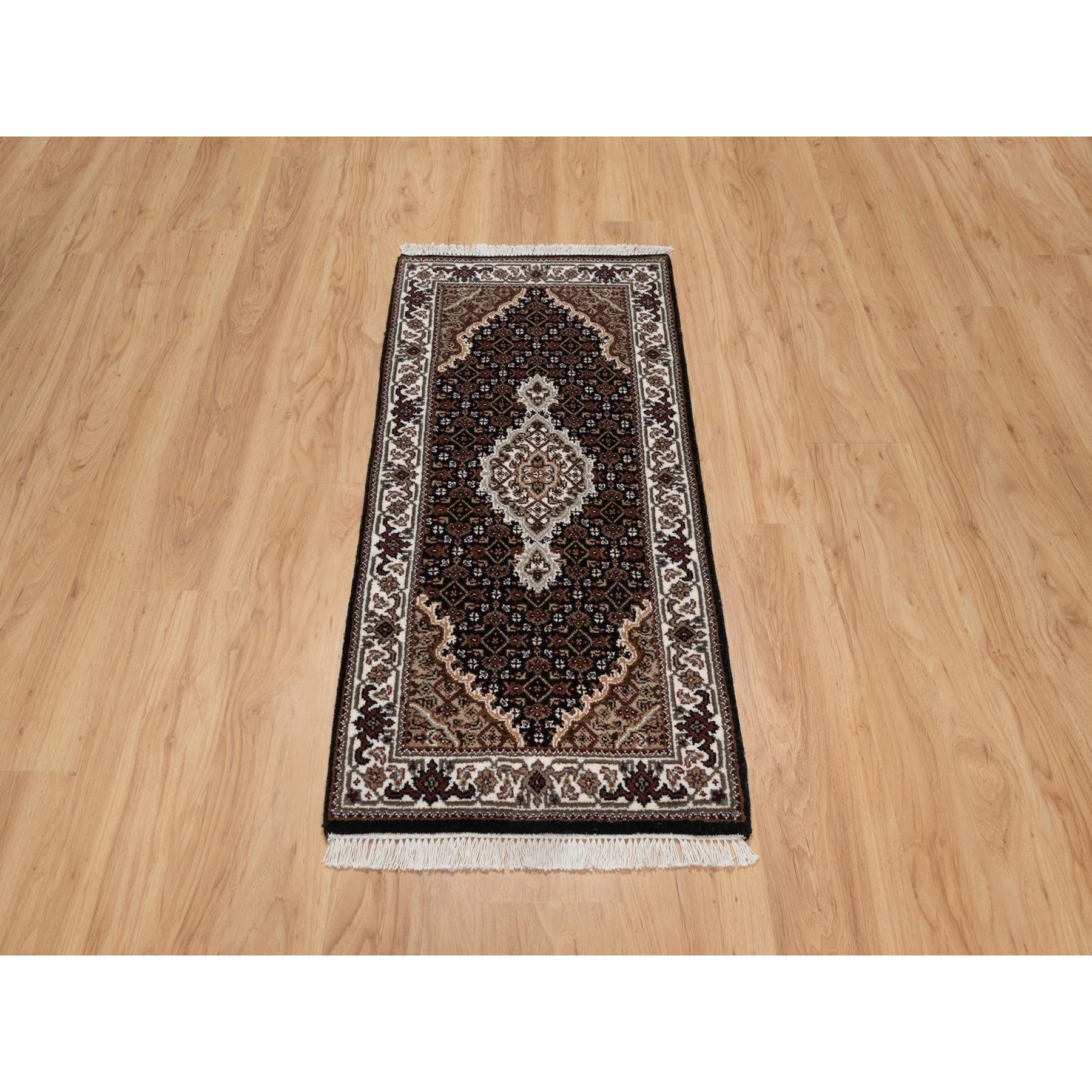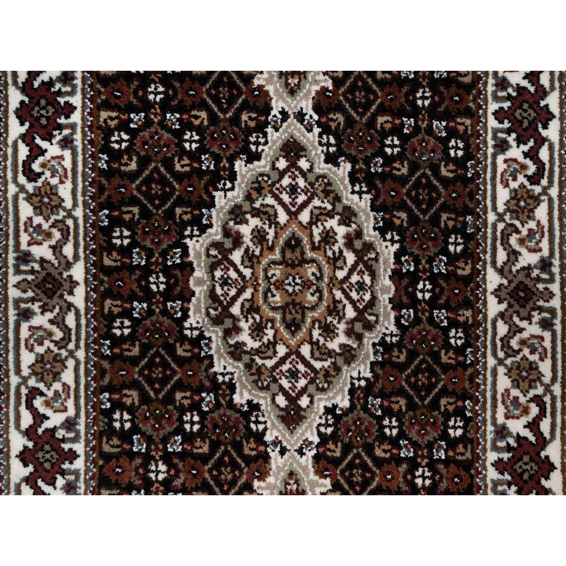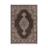 2’x4’2″ Phantom Black, Tabriz Mahi with Fish Medallion Design, 100% Wool, 175 KPSI, Hand Knotted, Mat, Sample, Oriental Rug HR91568