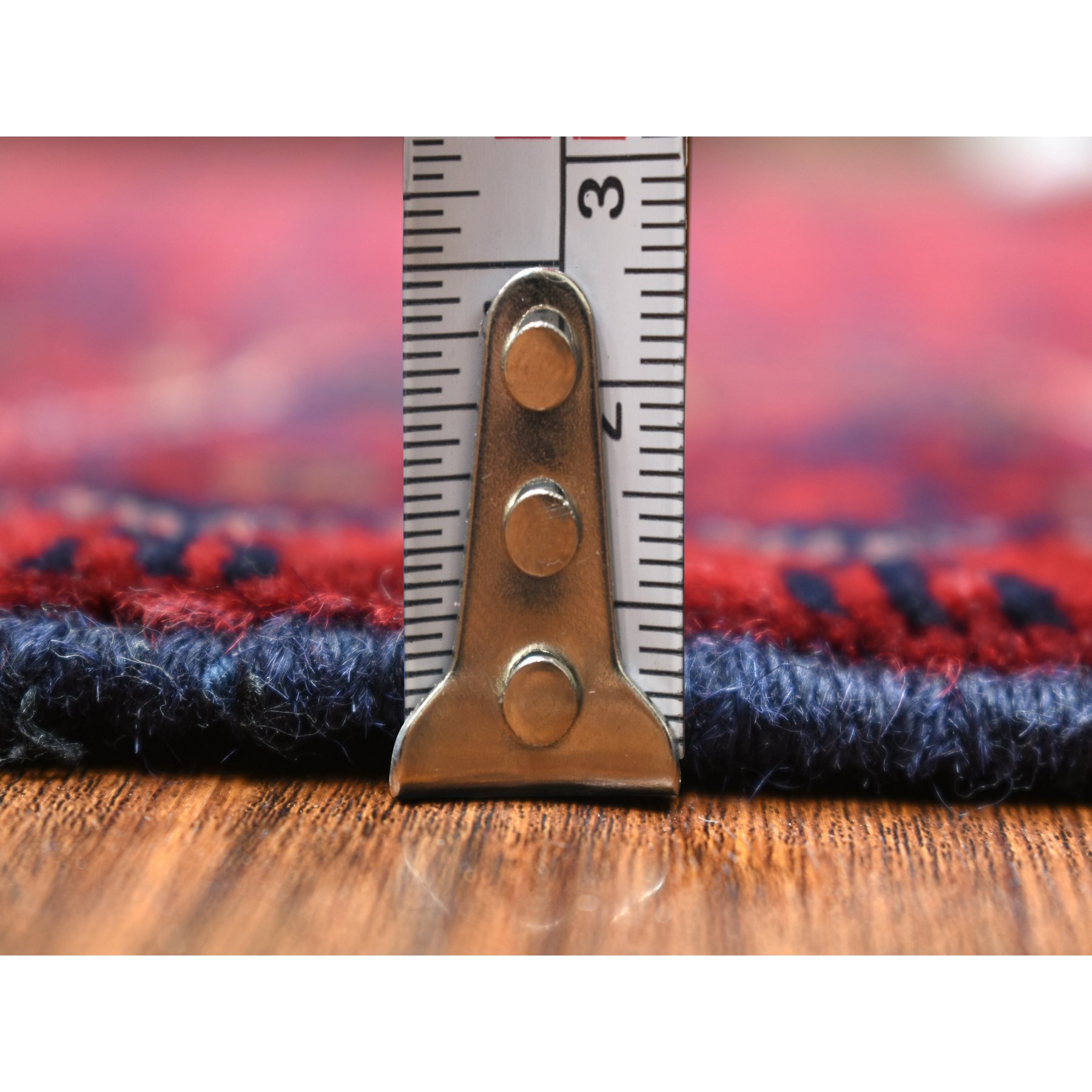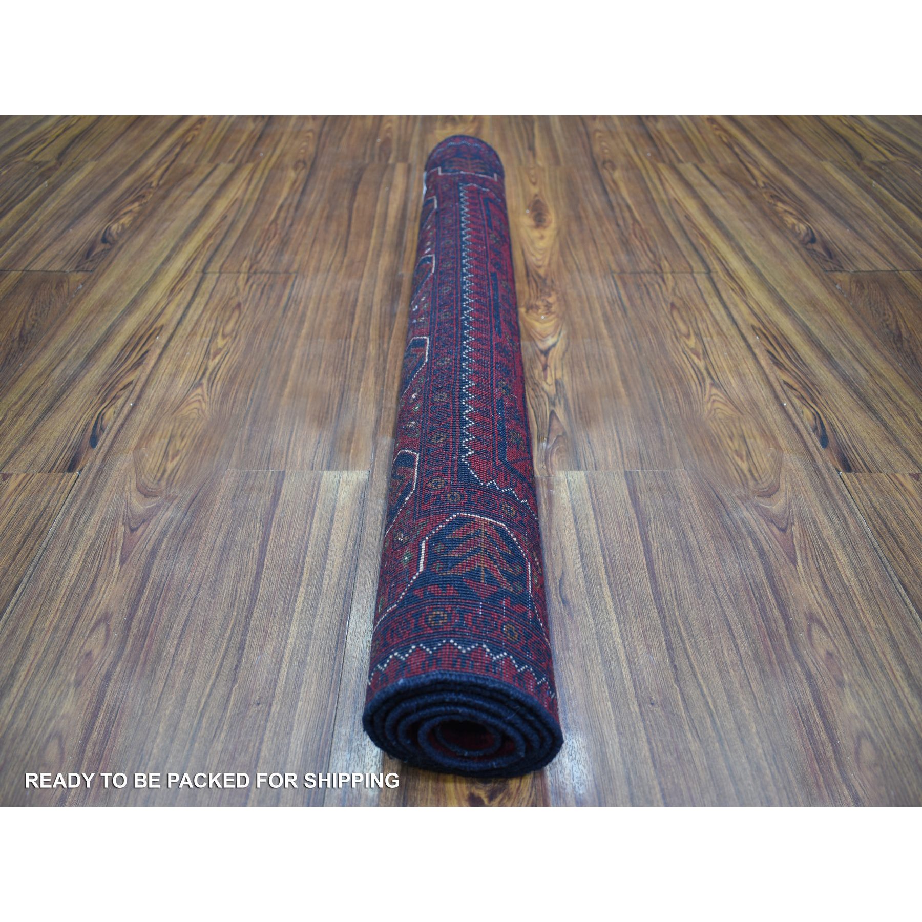 3’5″x4’10” Deep and Saturated Red with Touches of Blue, Afghan Khamyab with Geometric Design, Shiny Wool Hand Knotted, Oriental Rug HR71810