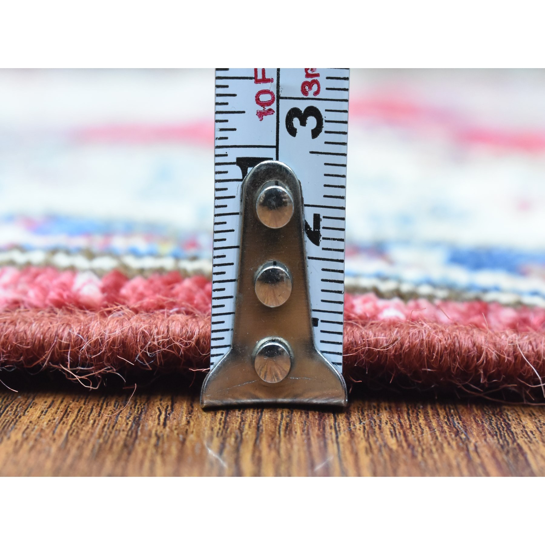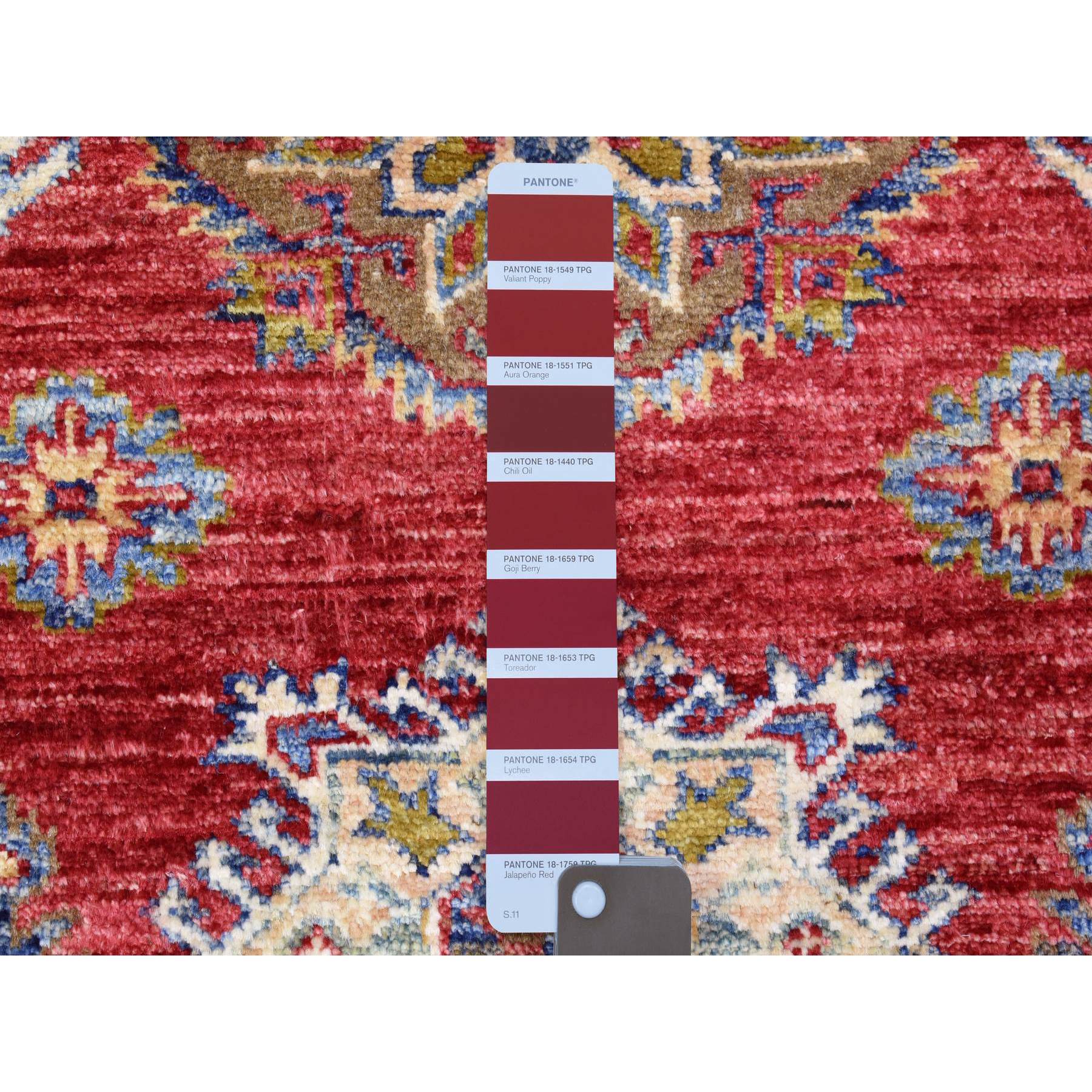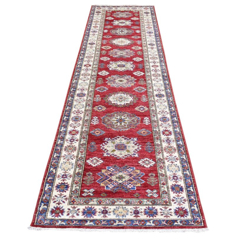 3’x11′ Rich Red Hand Knotted, Extra Soft Wool, Afghan Super Kazak with Geometric Medallions, Natural Dyes Runner Oriental Rug HR72908