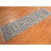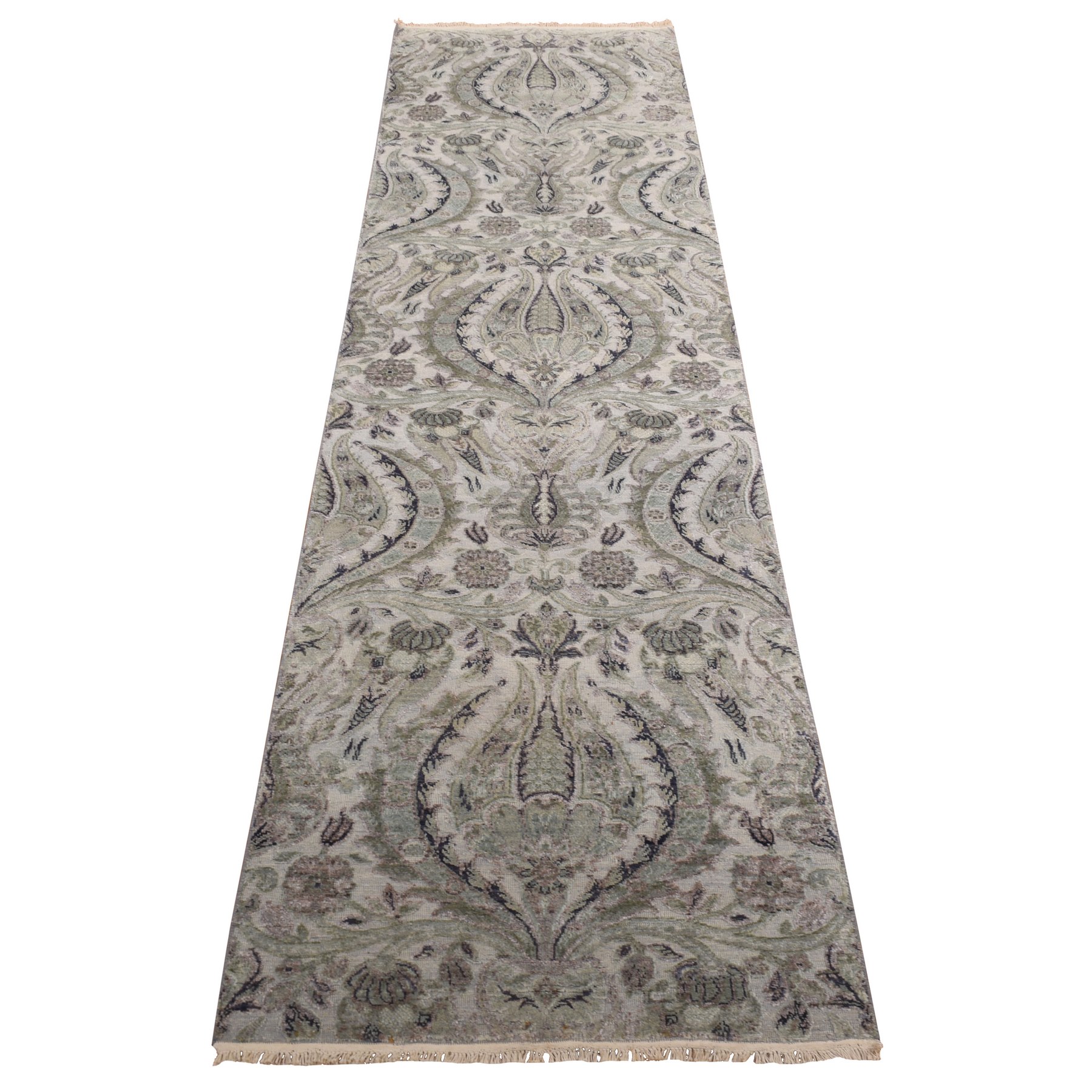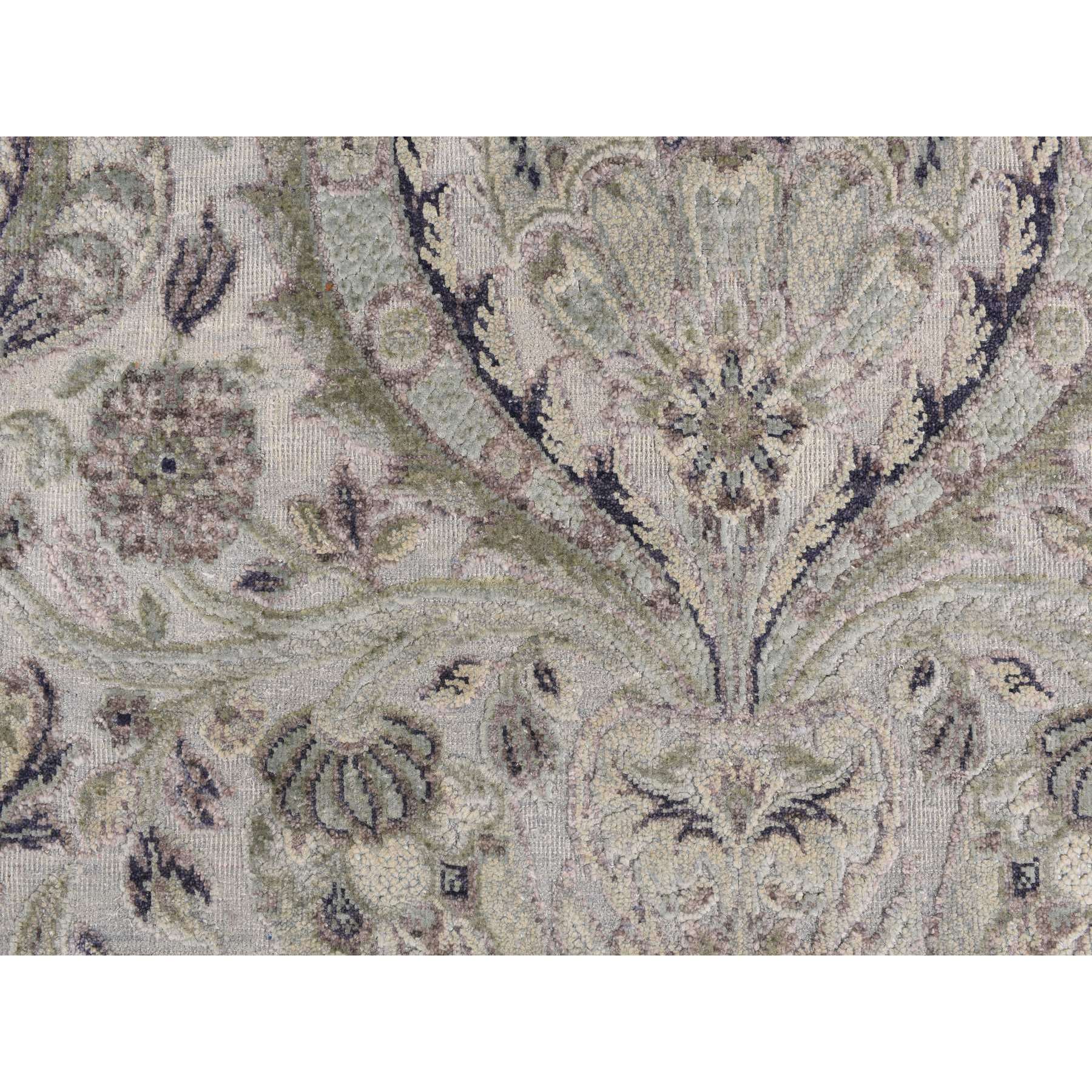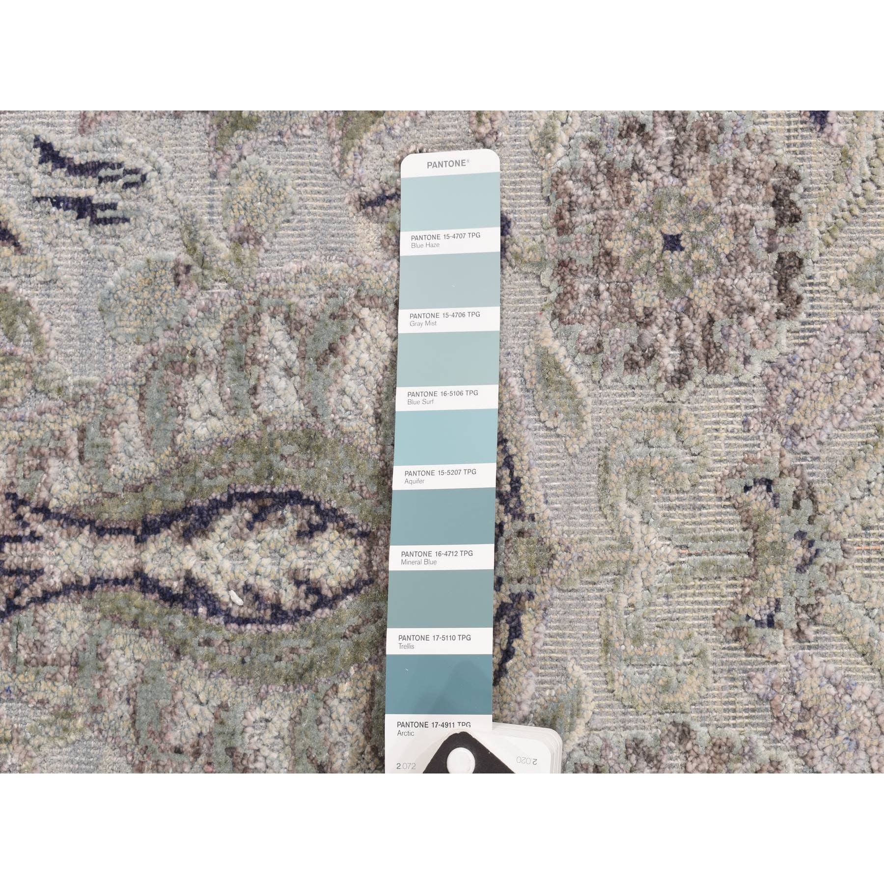 3’x11’10” Mist Gray, Tulip Flower Design, Pure Silk with Textured Wool, Hand Knotted, Runner, Oriental Rug HR78282
