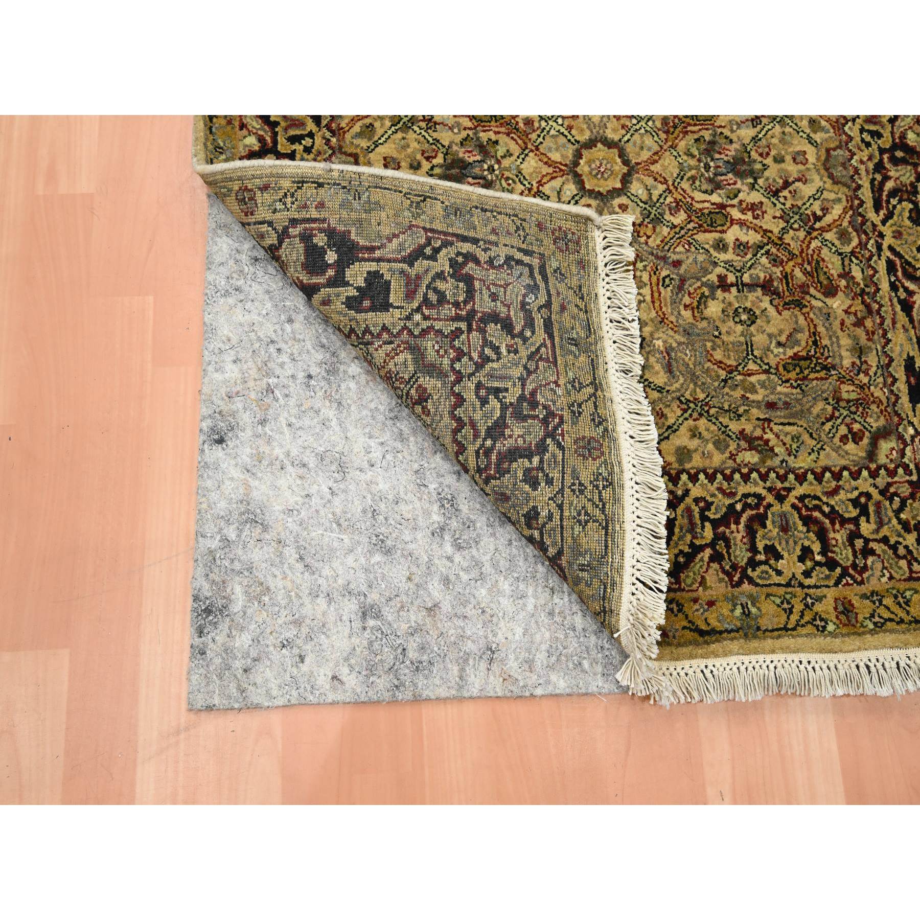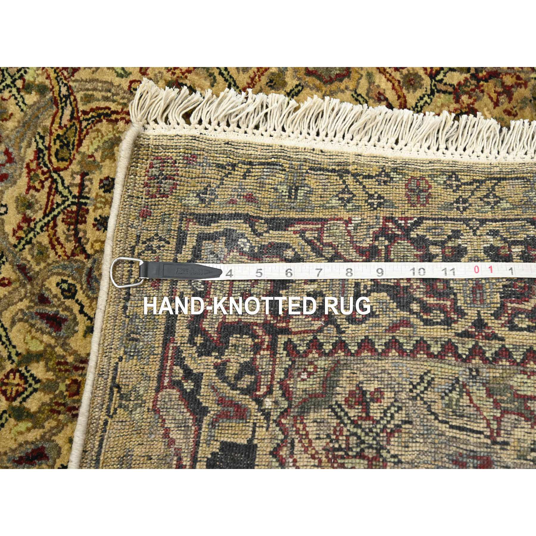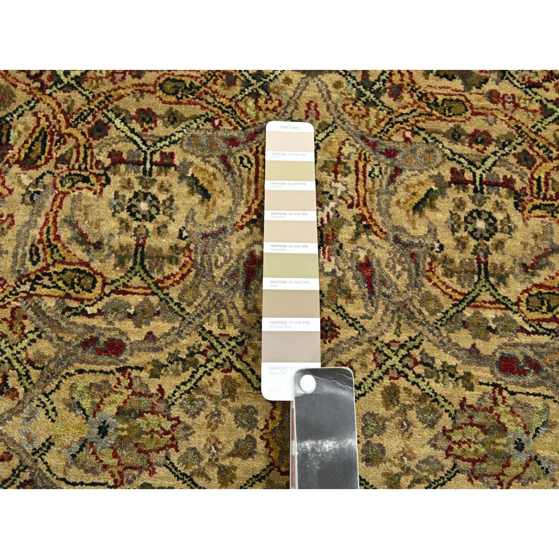 3’x19’5″ Golden Yellow, Rajasthan with All Over Leaf Design, Hand Knotted, Densely Woven, 100% Wool, Thick and Plush, XL Runner, Oriental Rug HR75633