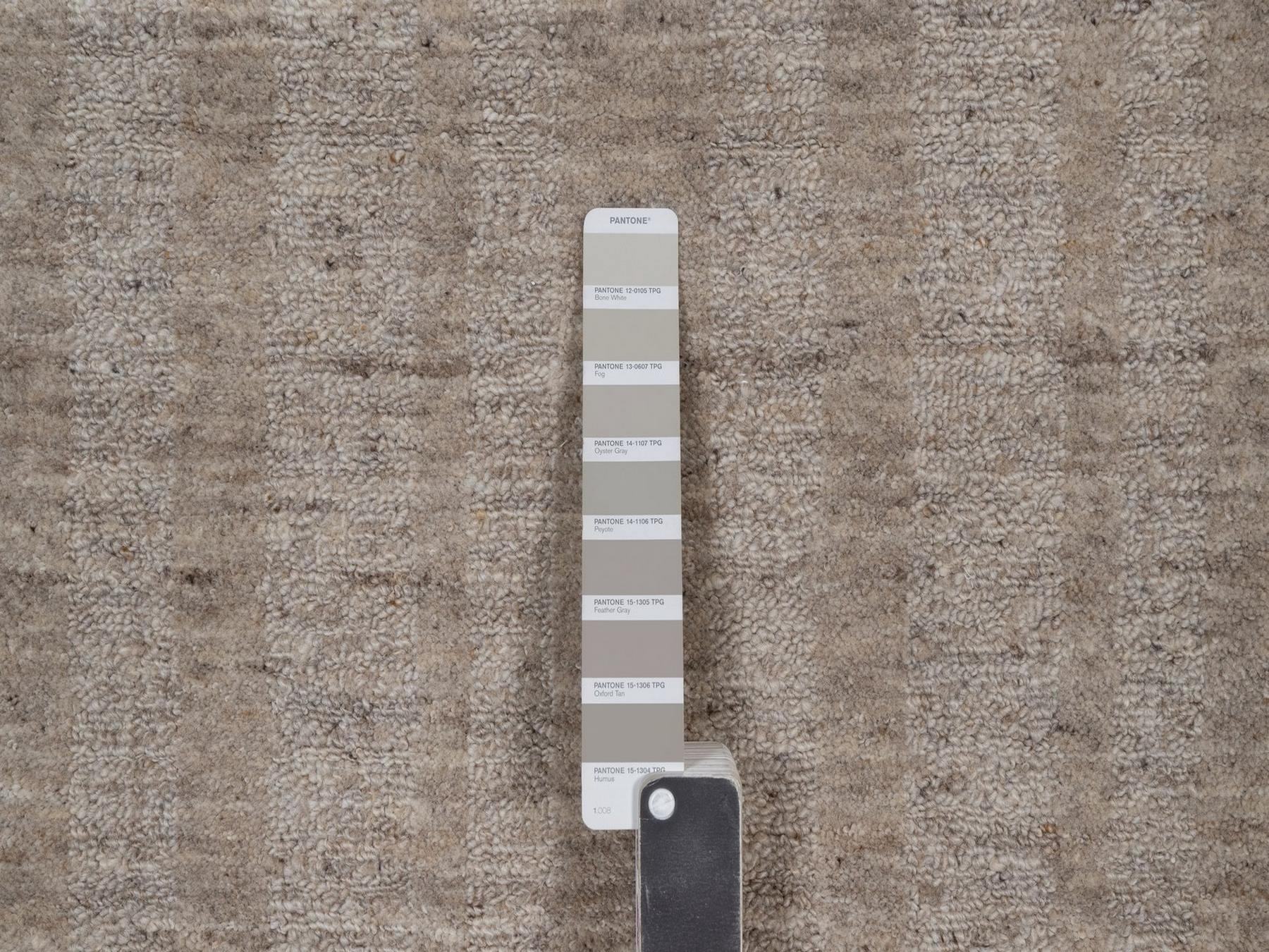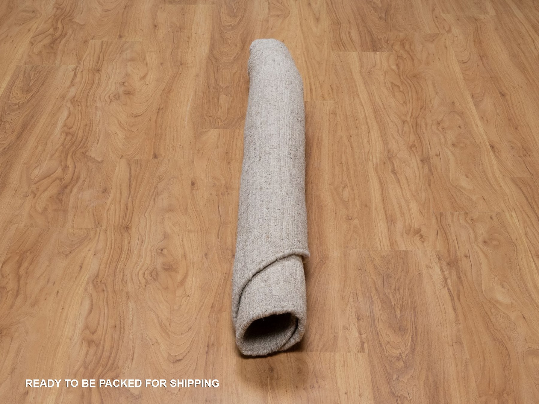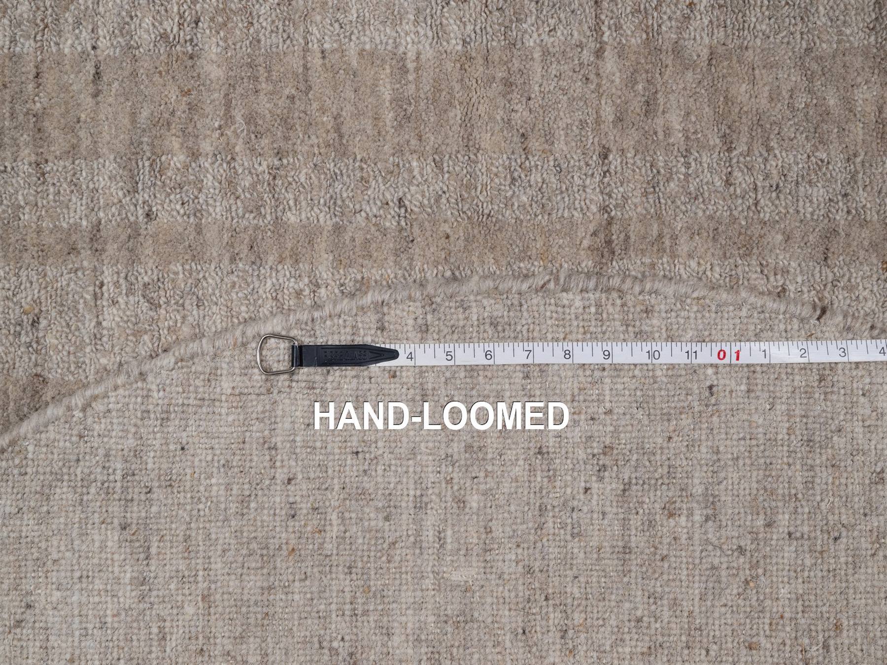 4’10″x4’10” Tan Brown, Hand Loomed, Salt and Pepper Design, Undyed Natural Wool, Round, Oriental Rug HR91653