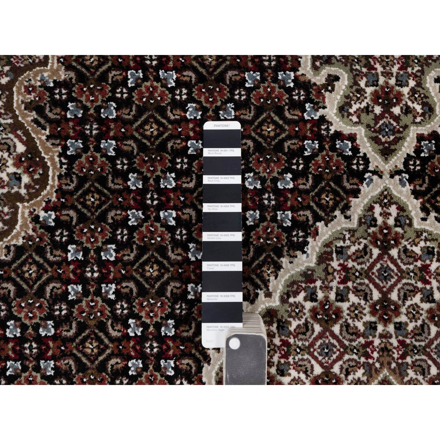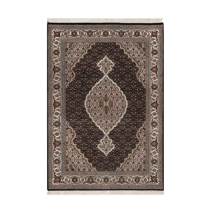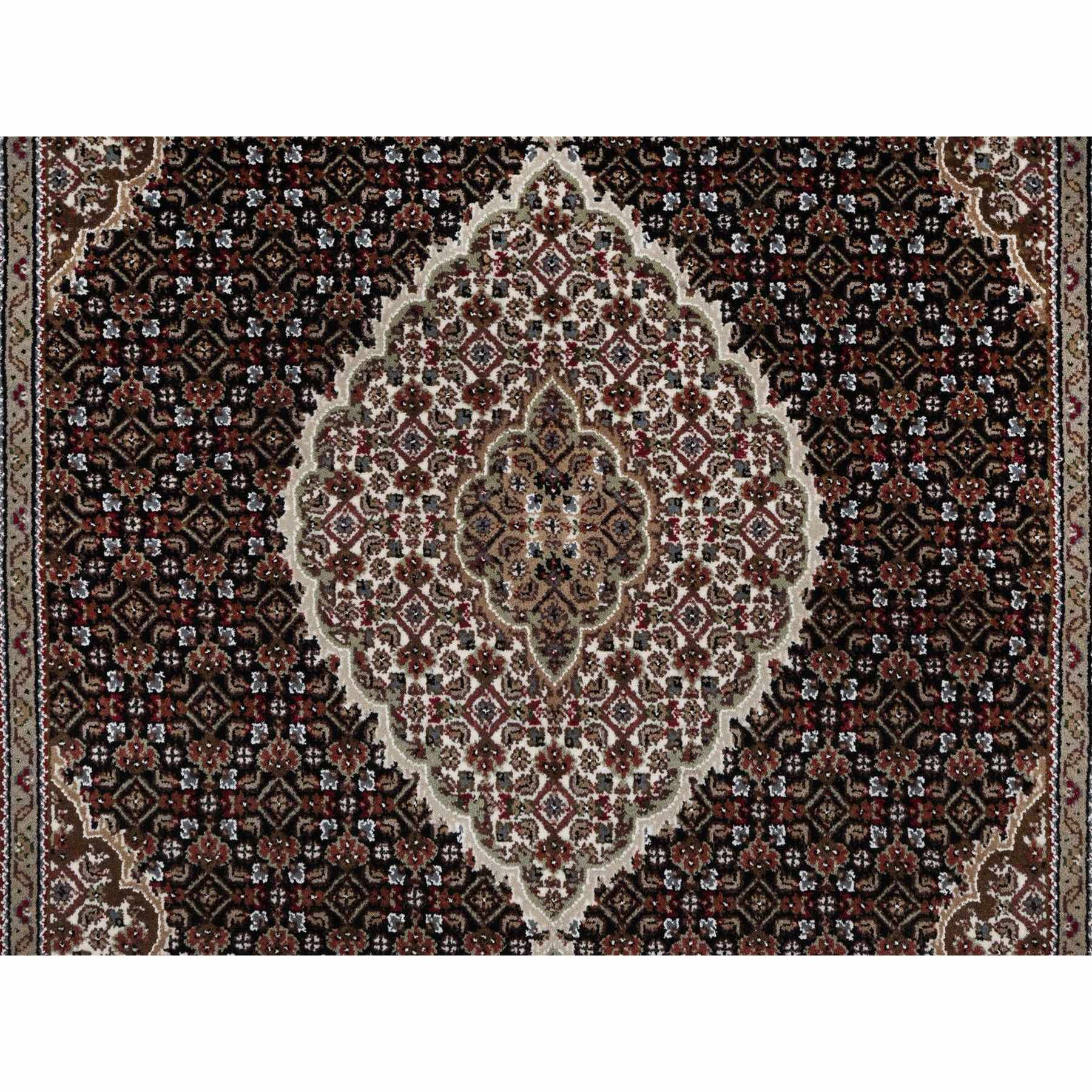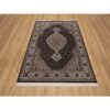 4’9″x6’9″ Onyx Black, 175 KPSI, Tabriz Mahi with Fish Medallion Design, 100% Wool, Hand Knotted, Oriental Rug HR91588