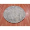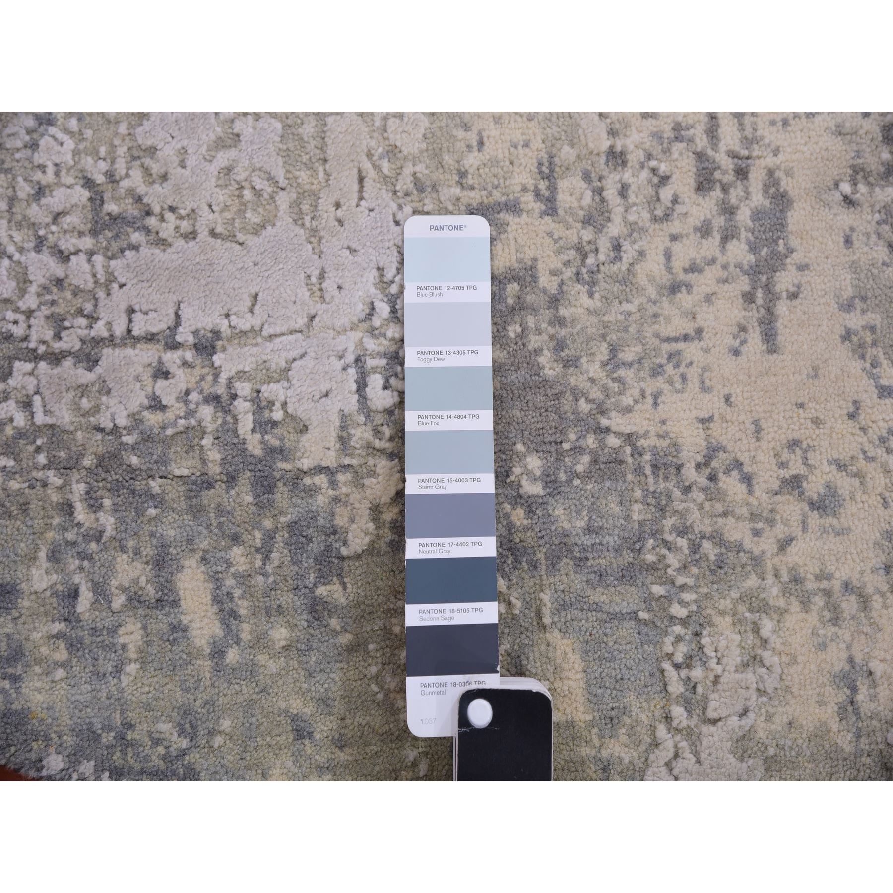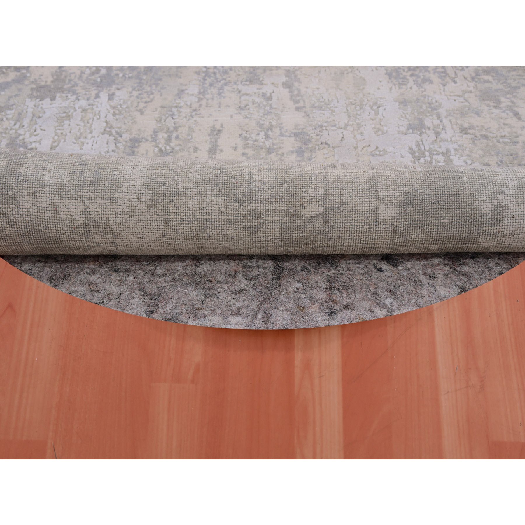 4’x4′ Moonquake Gray With Touches Of Still Gray, Modern Wool and Silk, Soft Pile Hand Knotted Abstract Design, Round Oriental Rug HR75349
