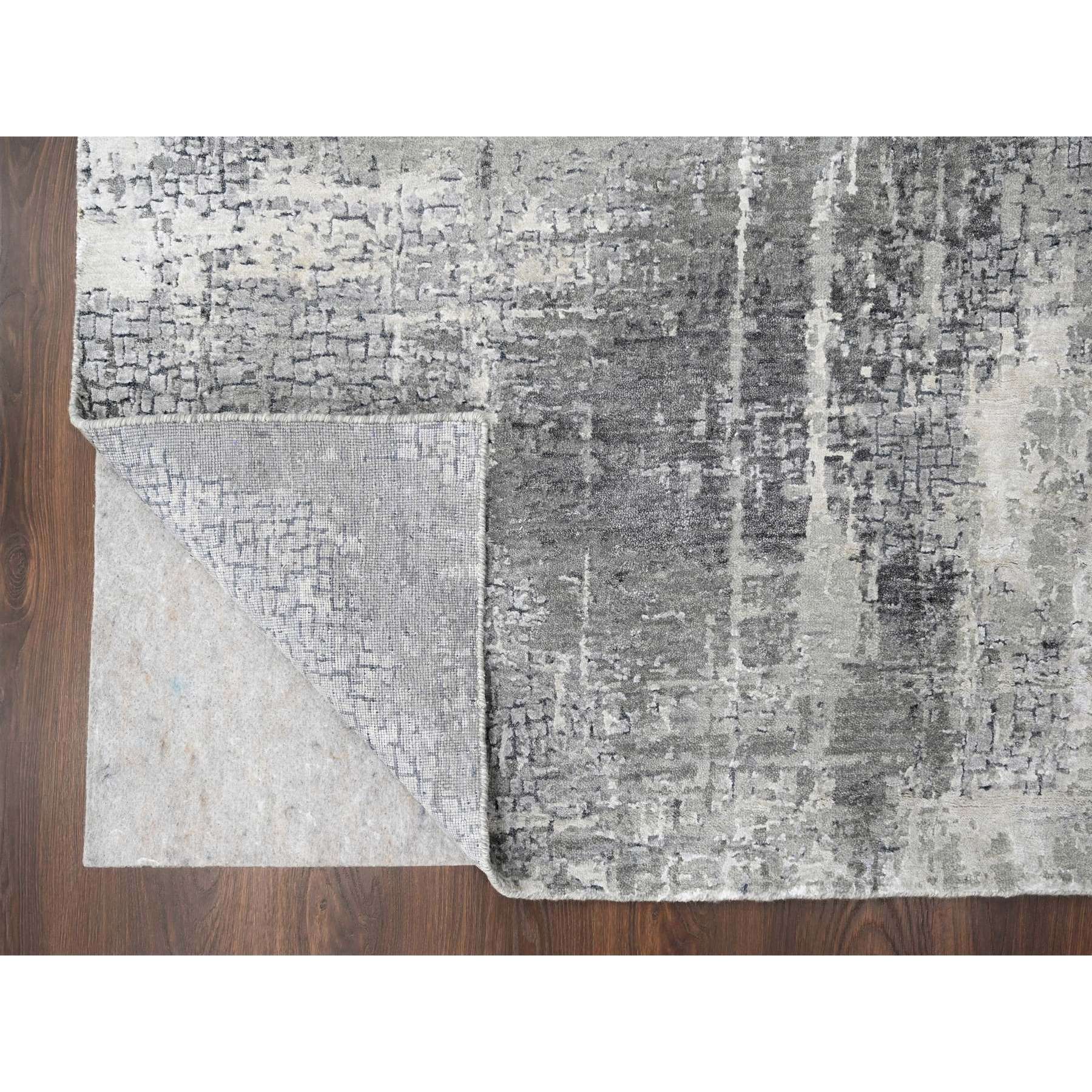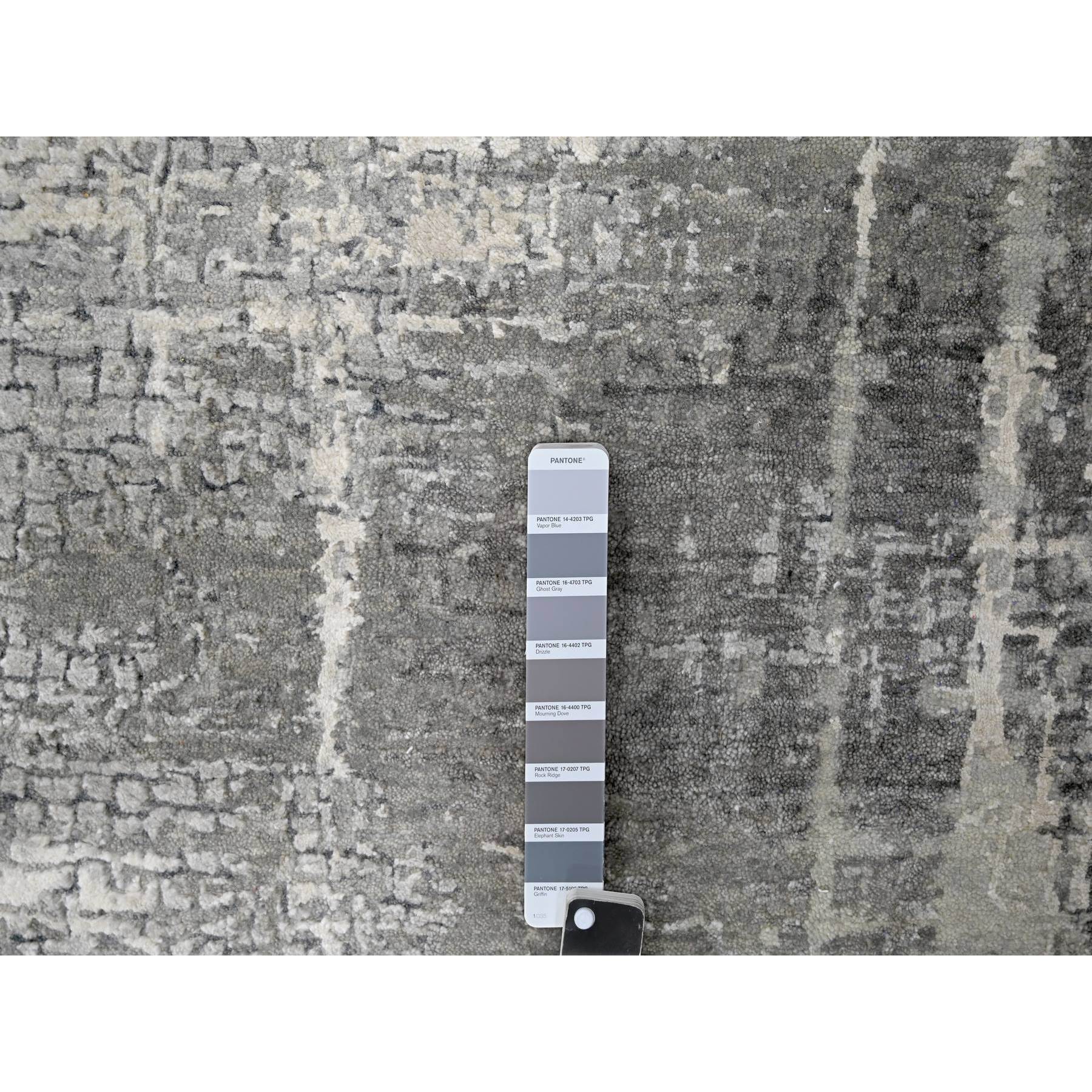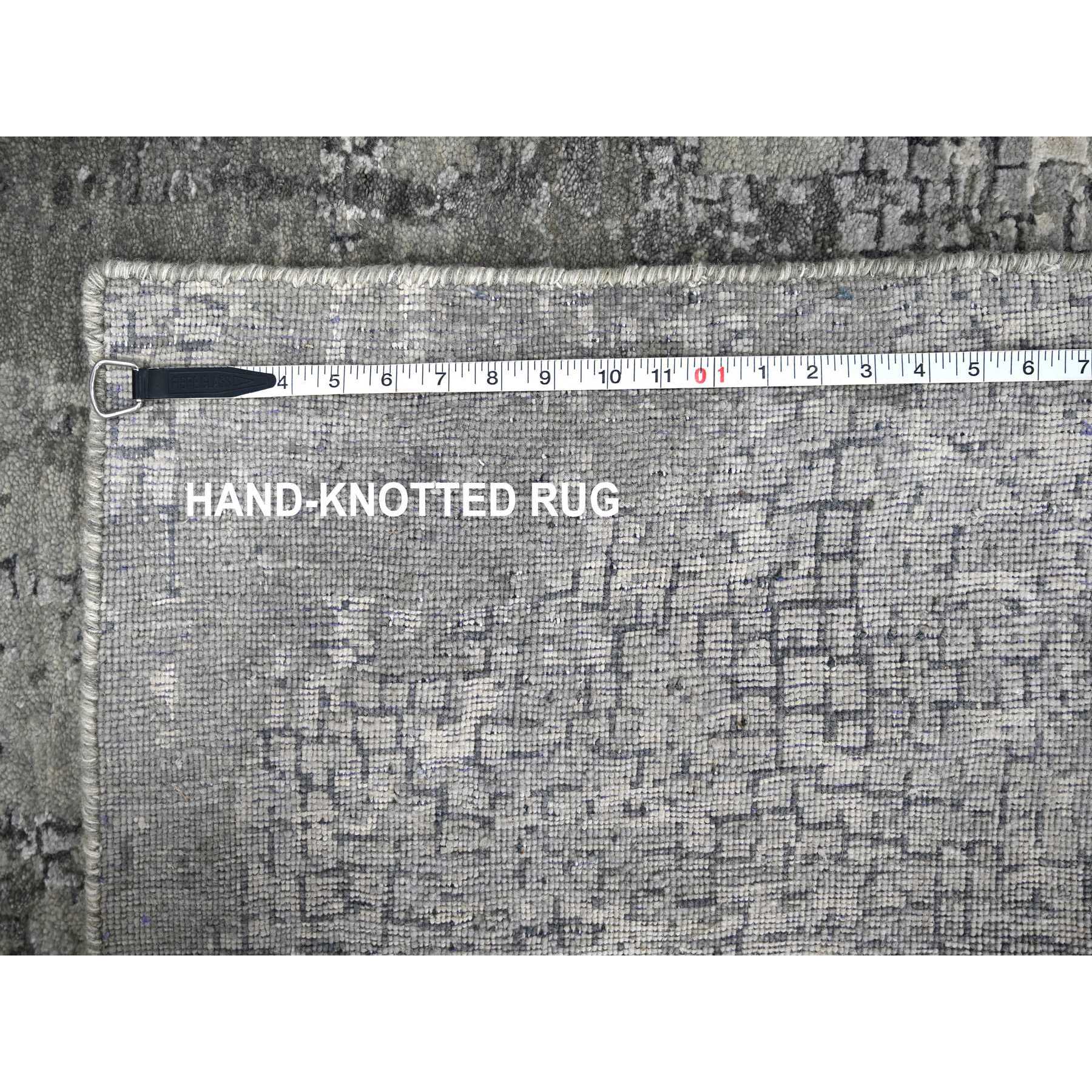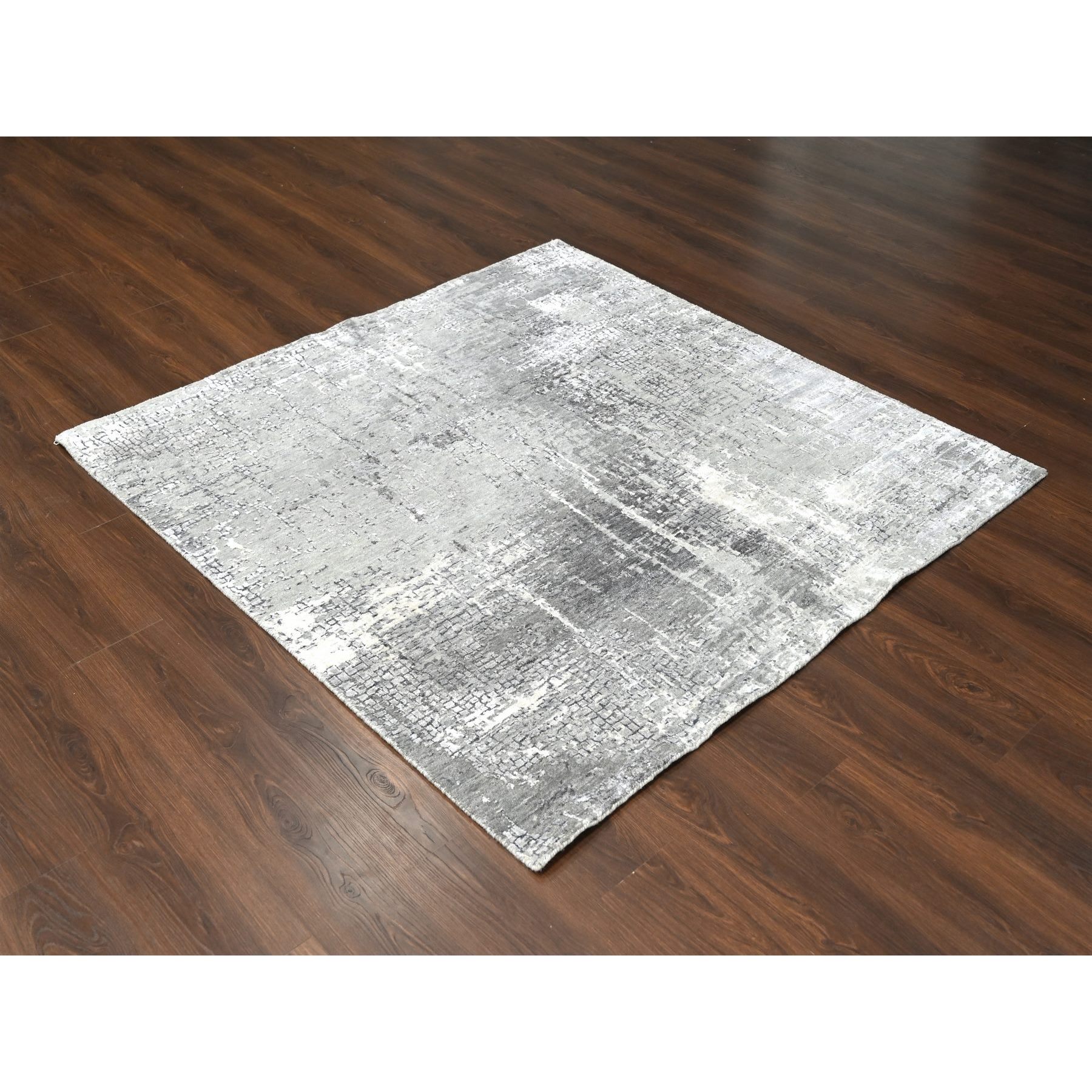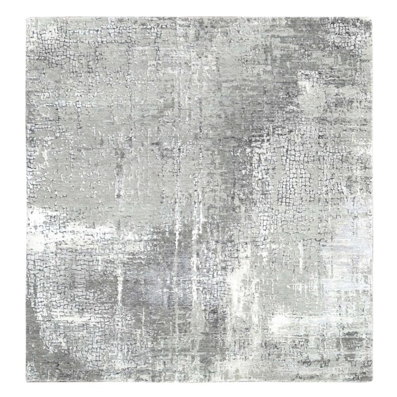 5’10″x5’9″ Stone Eagle and Lava Gray, Densely Woven, Persian Knot, Abstract with Mosaic Design, Wool and Silk, Hand Knotted, Square Oriental Rug HR84605