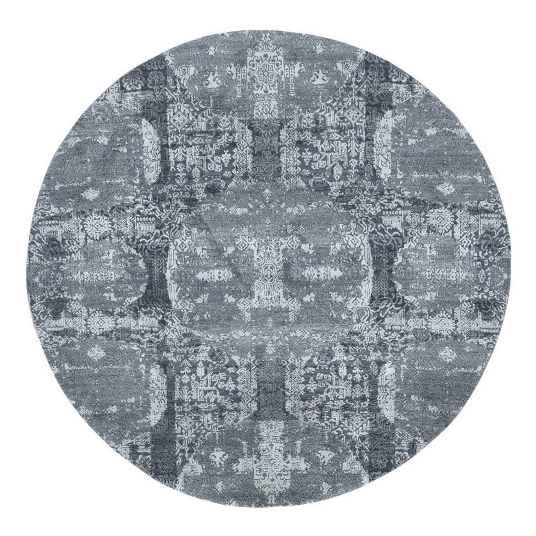 6’1″x6’1″ Gray Wool and Pure Silk Jewellery Design Hand Knotted Round Oriental Rug HR66778