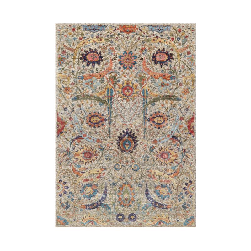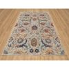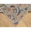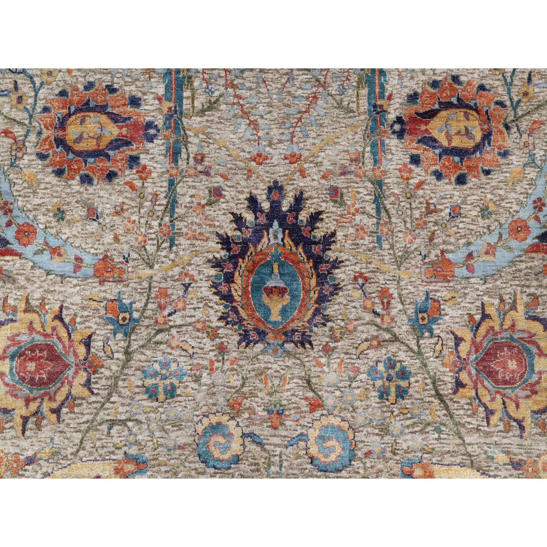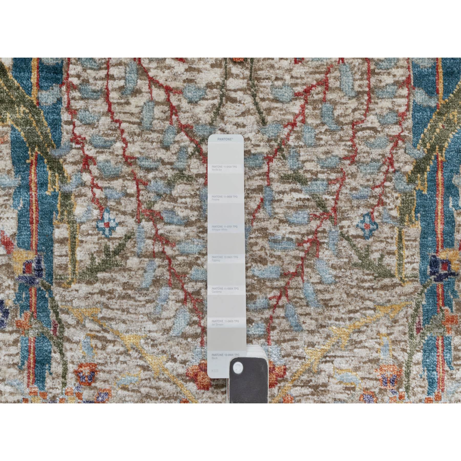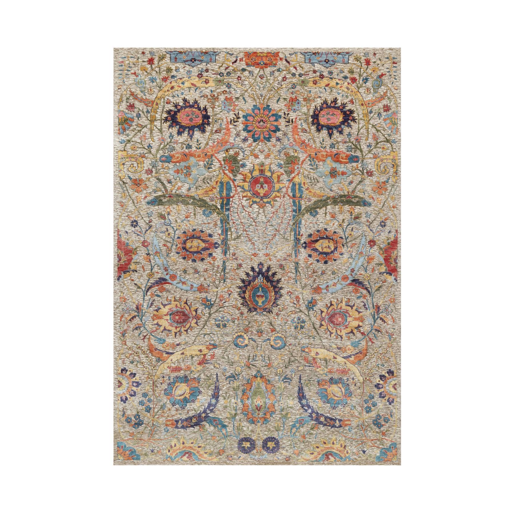 6’3″x9’1″ Cosmic Latte White, Soft and Plush Pile, Hand Knotted With Sickle Leaf Design, Silk With Textured Wool, Oriental Rug HR90947