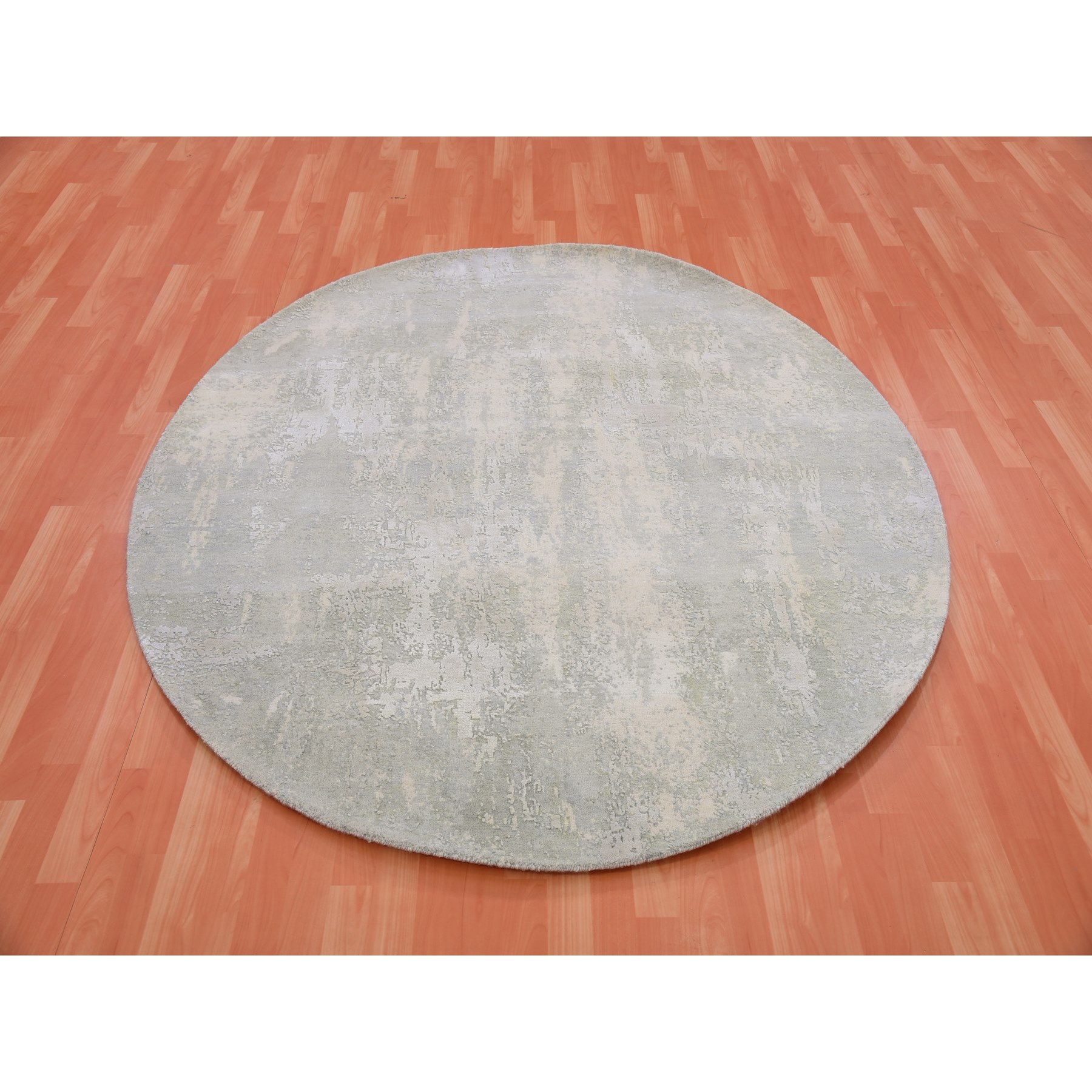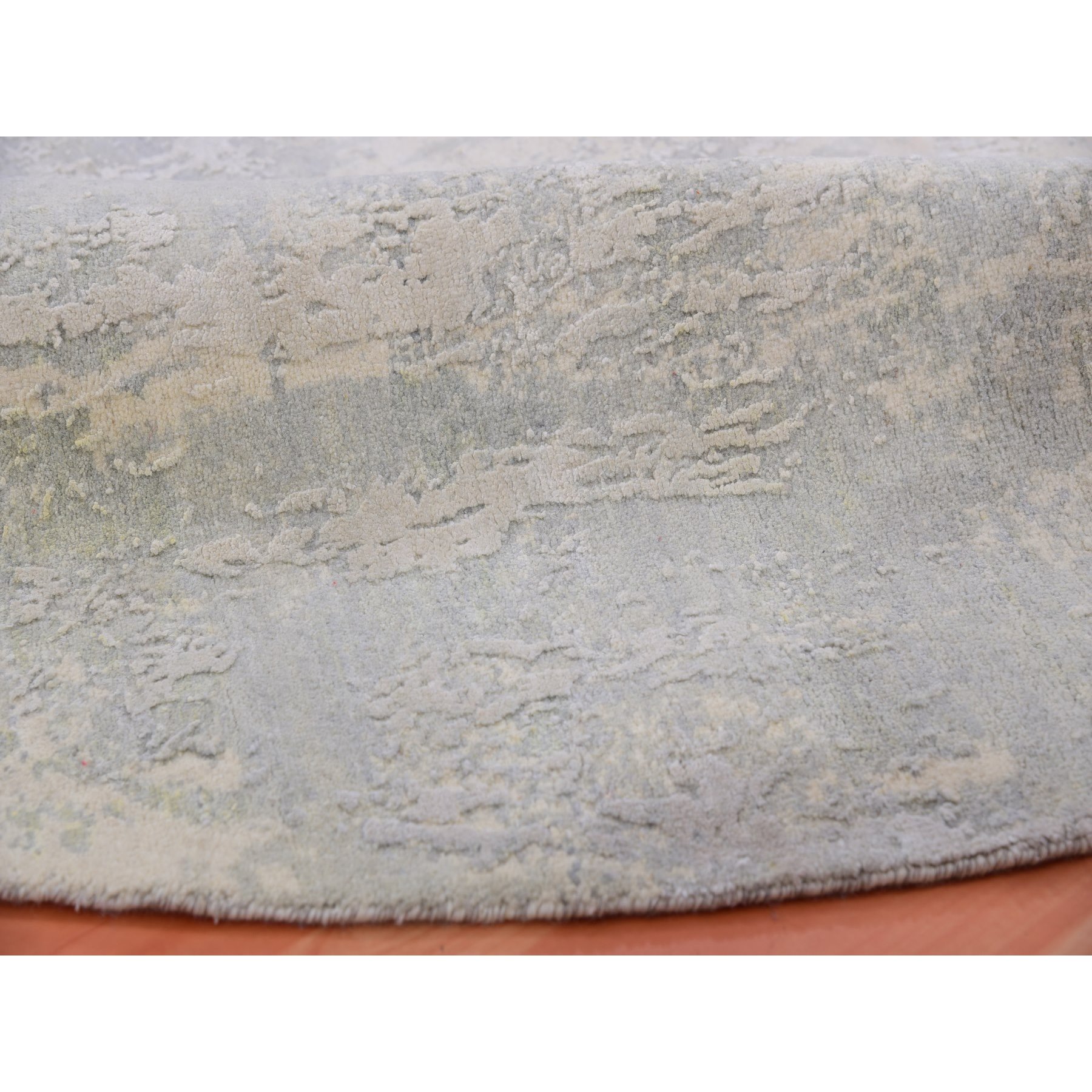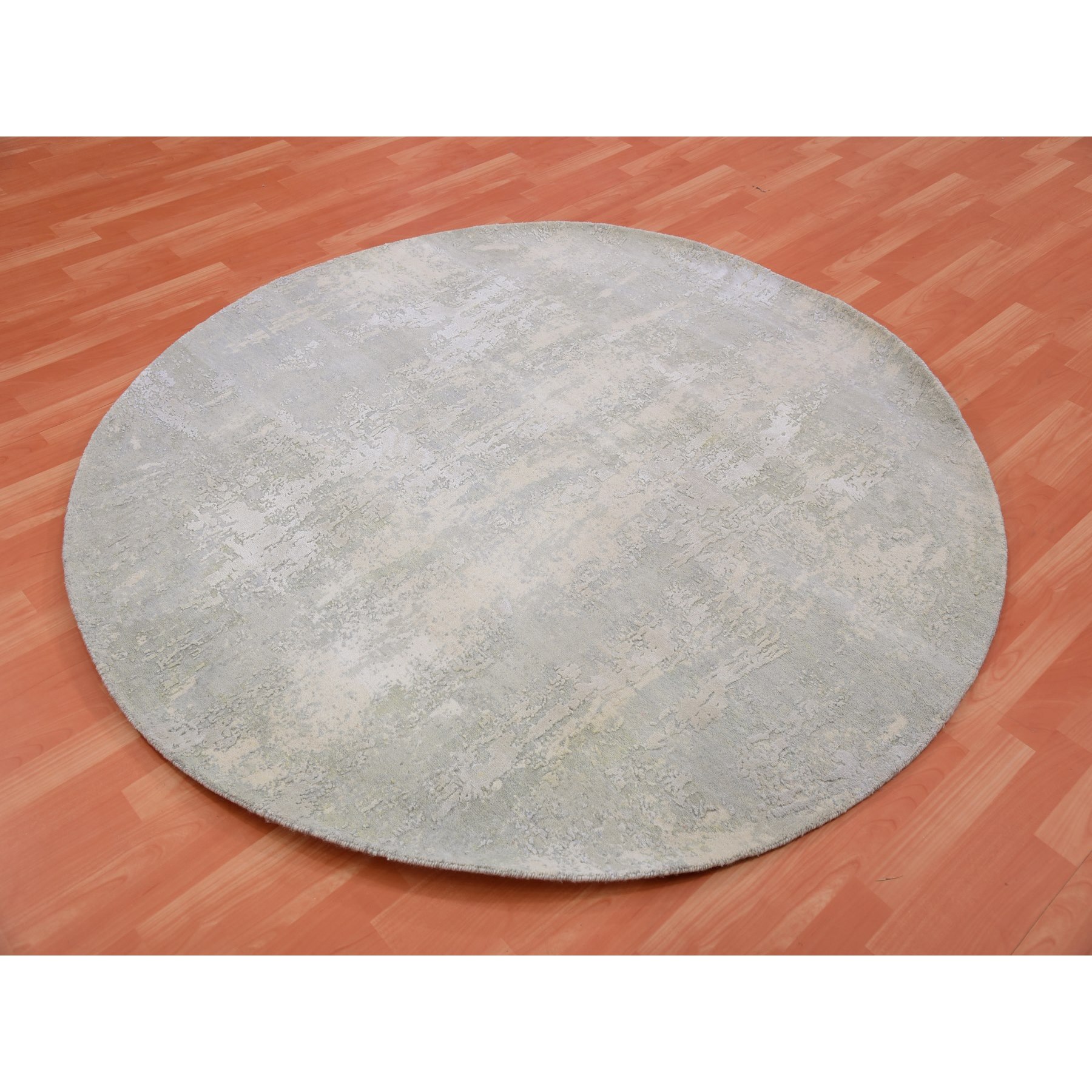 6’x6′ Flannel Gray, Wool and Silk, Hand Knotted, Modern Abstract Design, Round Oriental Rug HR75347