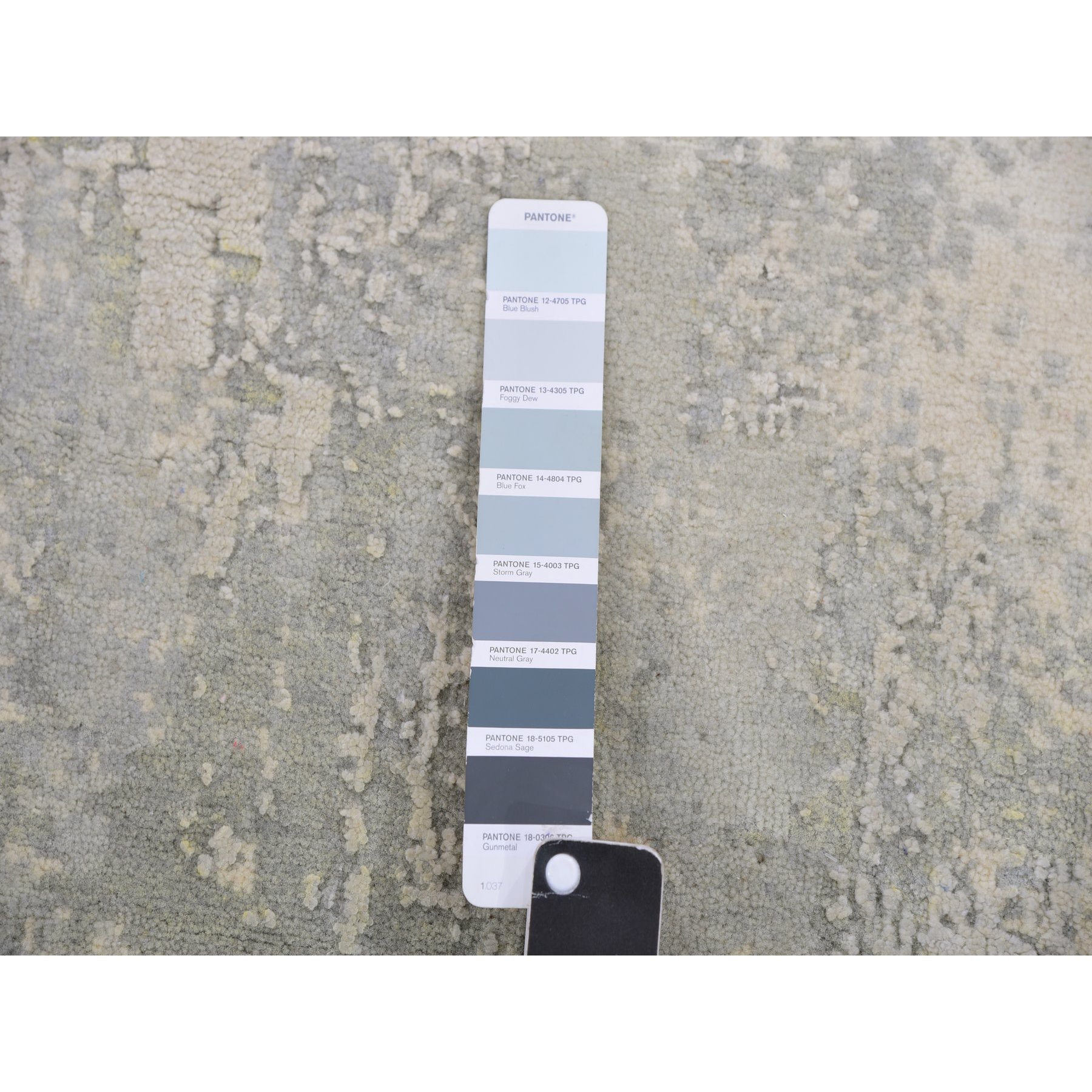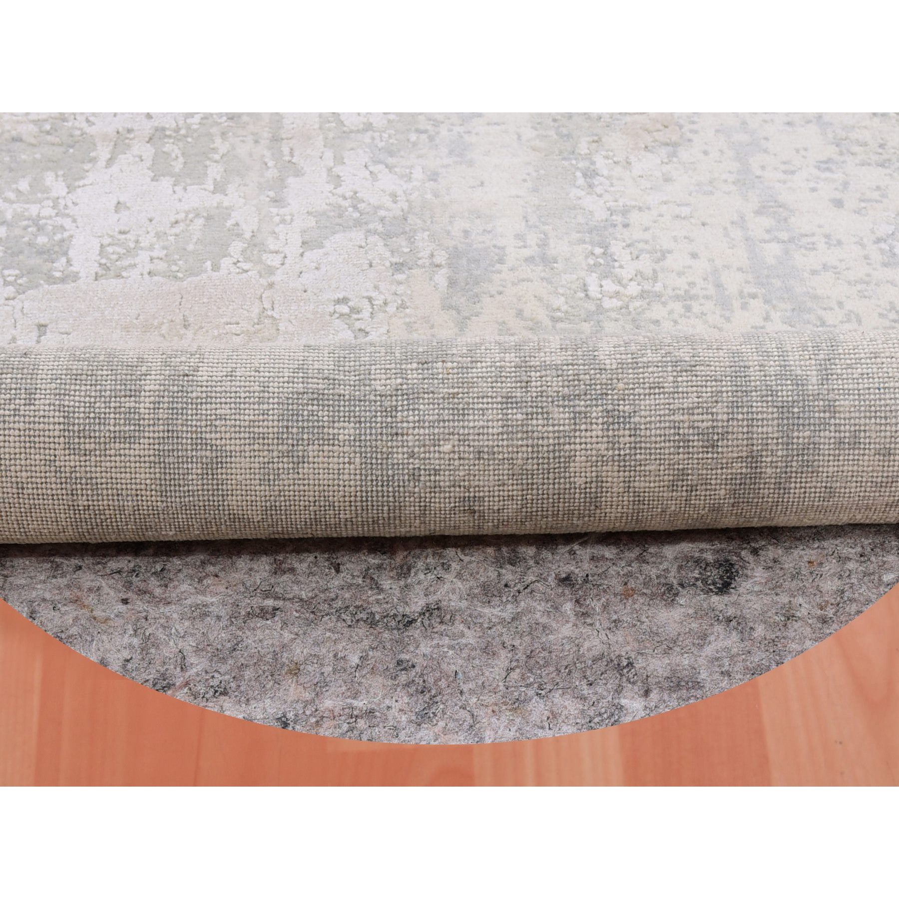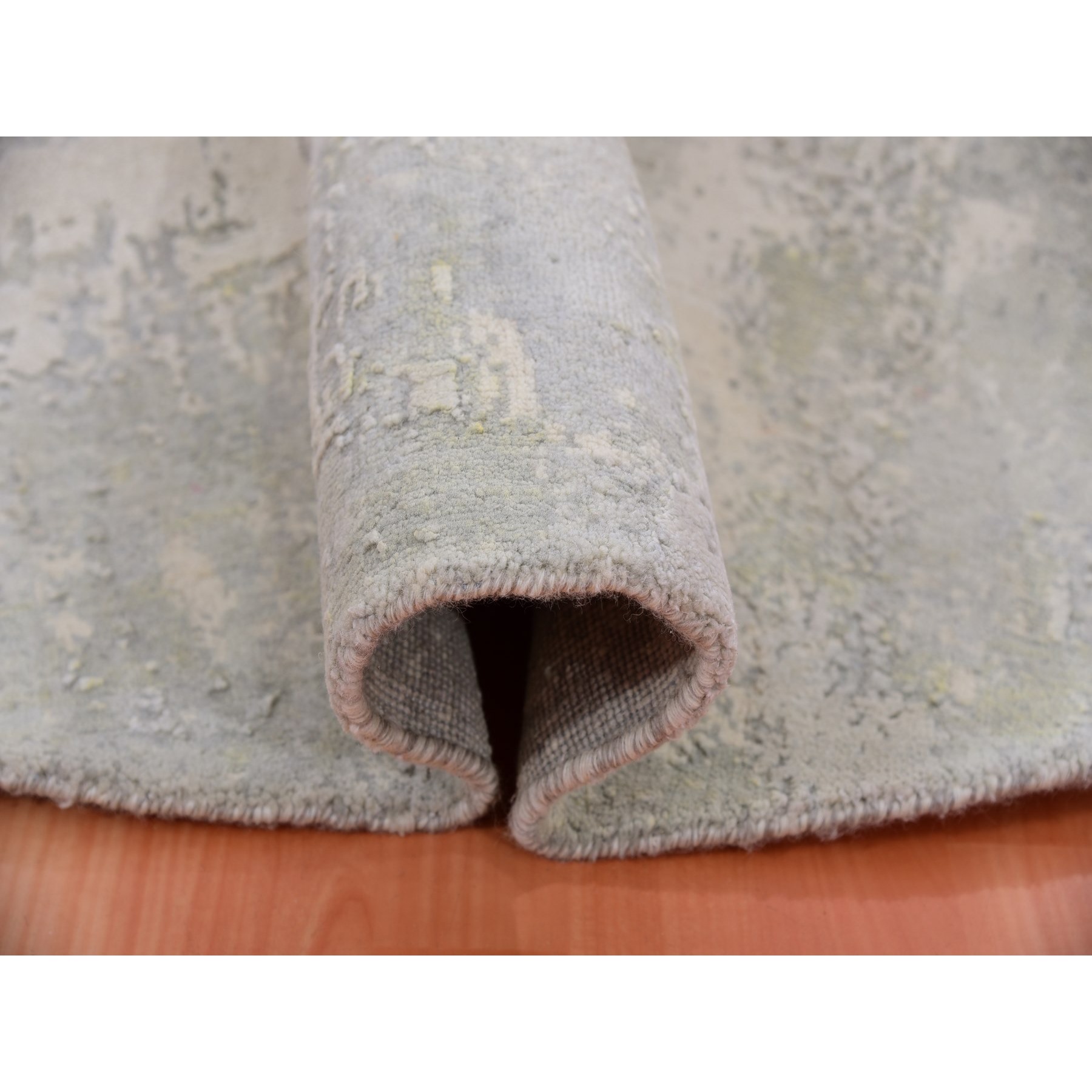 6’x6′ Flannel Gray, Wool and Silk, Hand Knotted, Modern Abstract Design, Round Oriental Rug HR75347