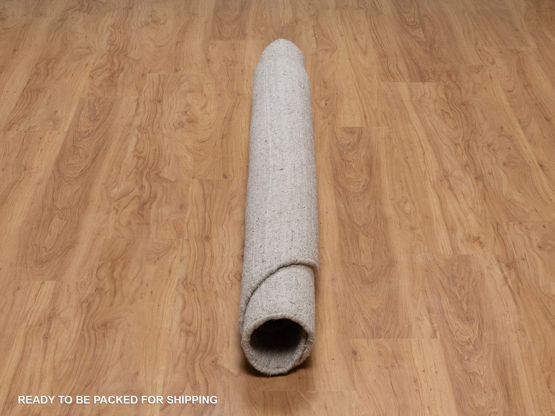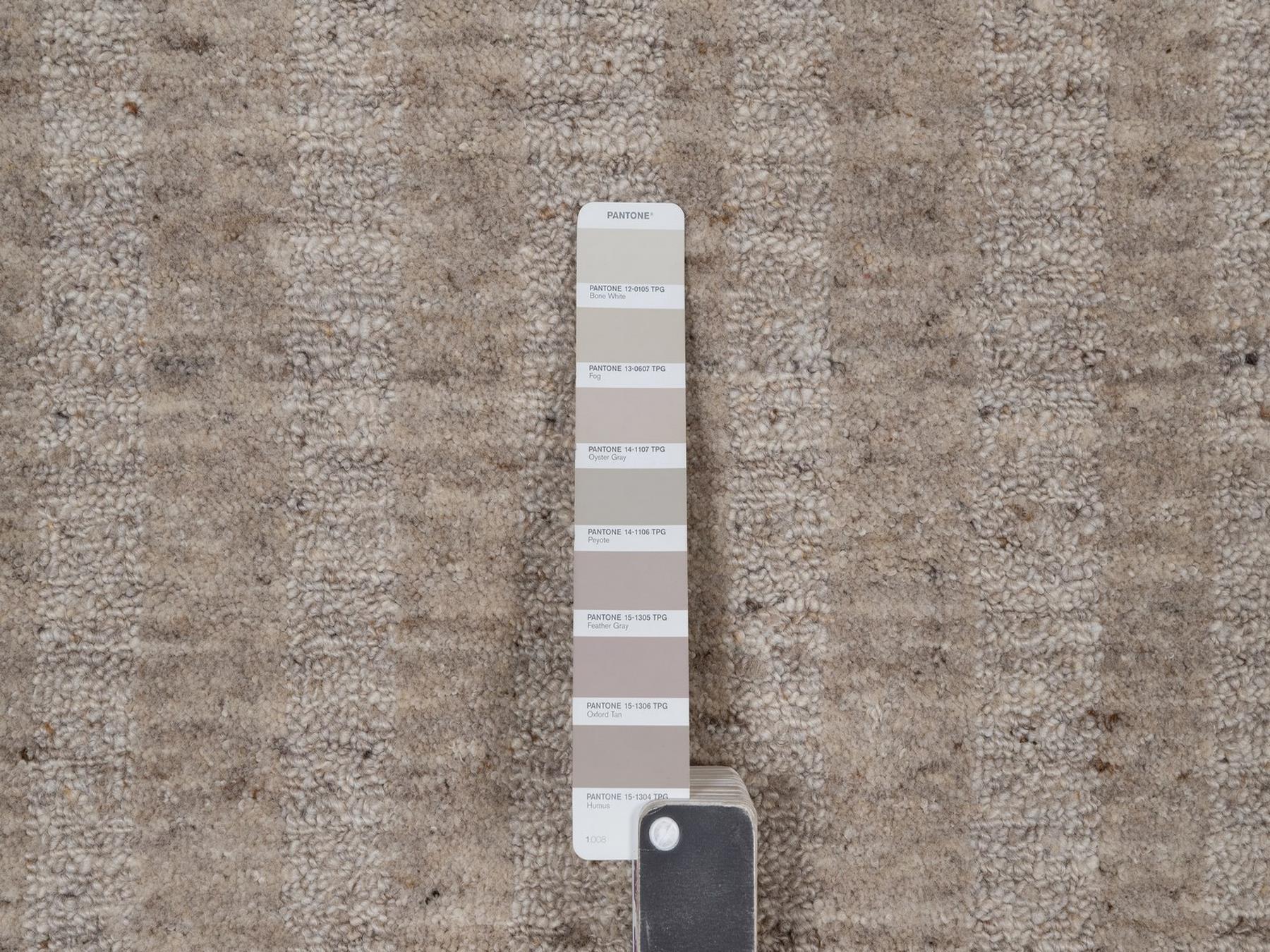 6’x6′ Light Brown, Stripes Design with Salt and Pepper Effect, Hand Loomed, Undyed Natural Wool, Round, Oriental Rug HR91655