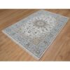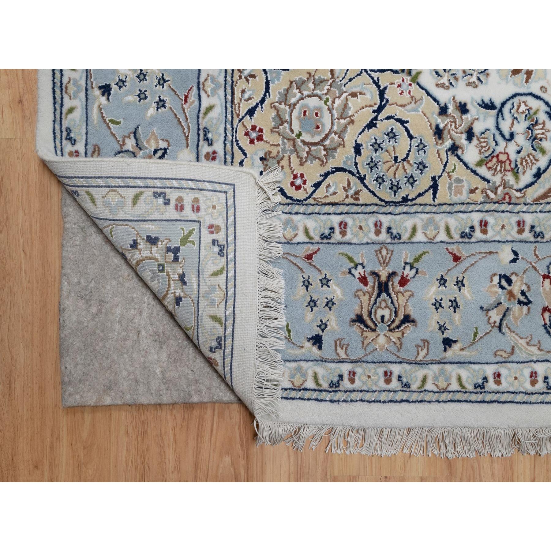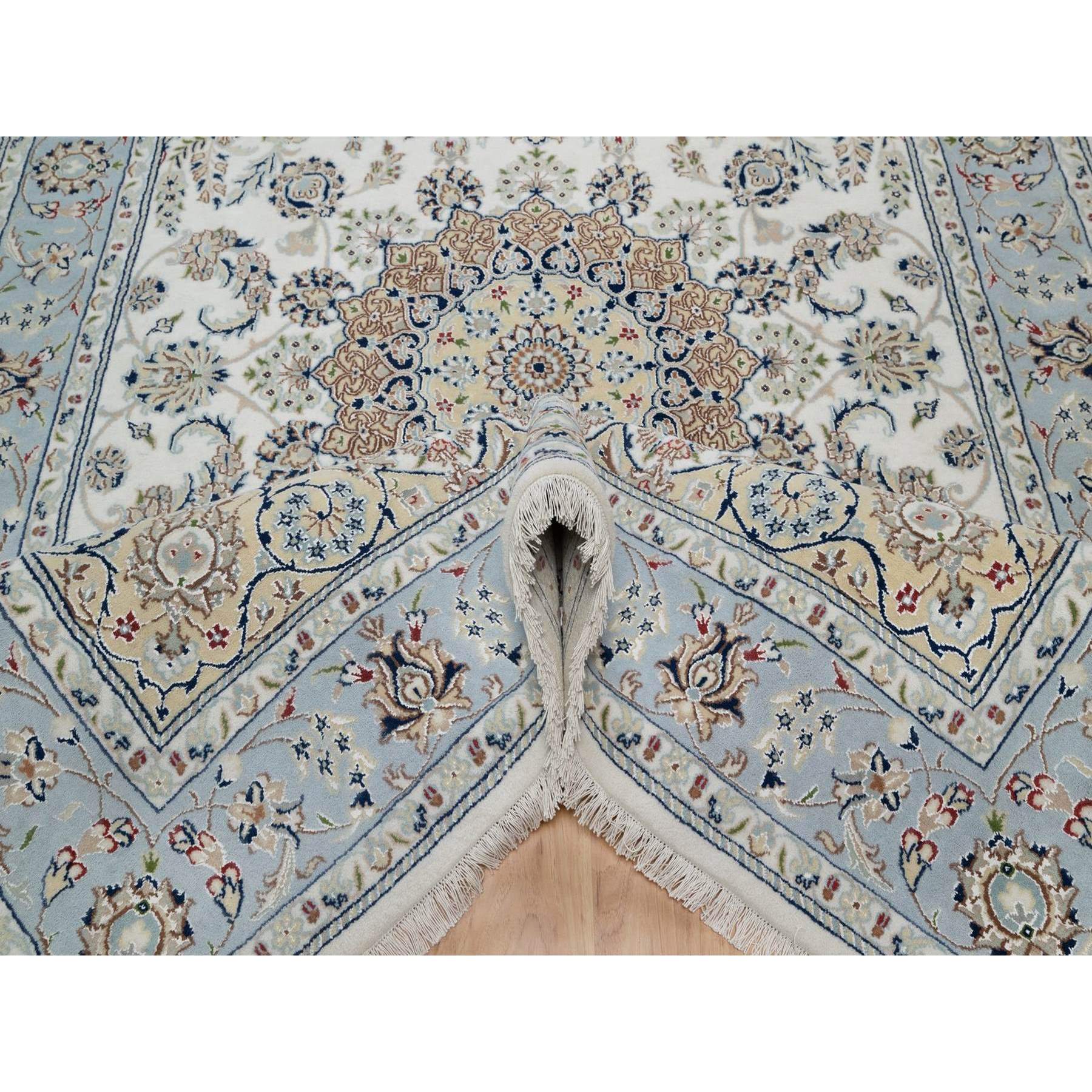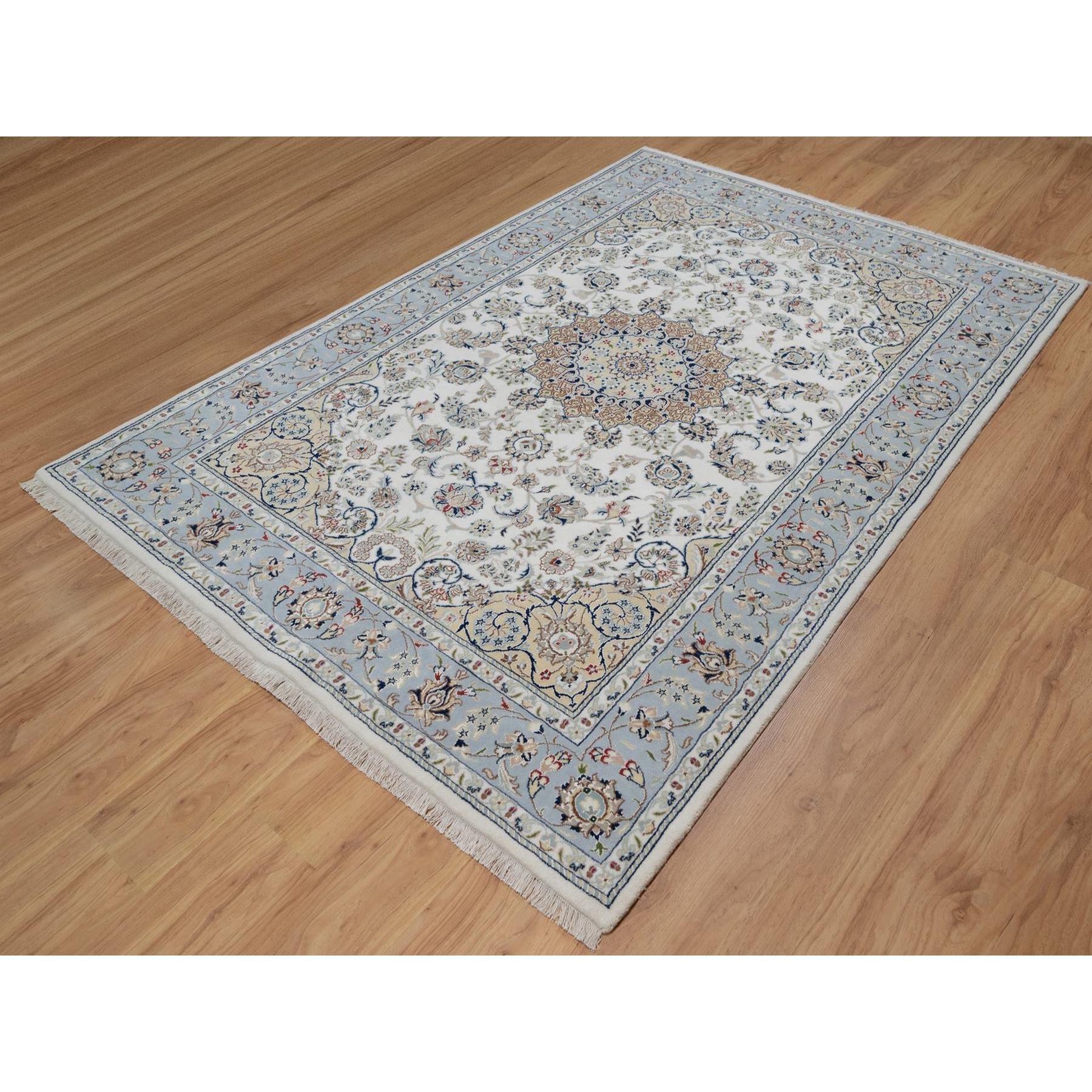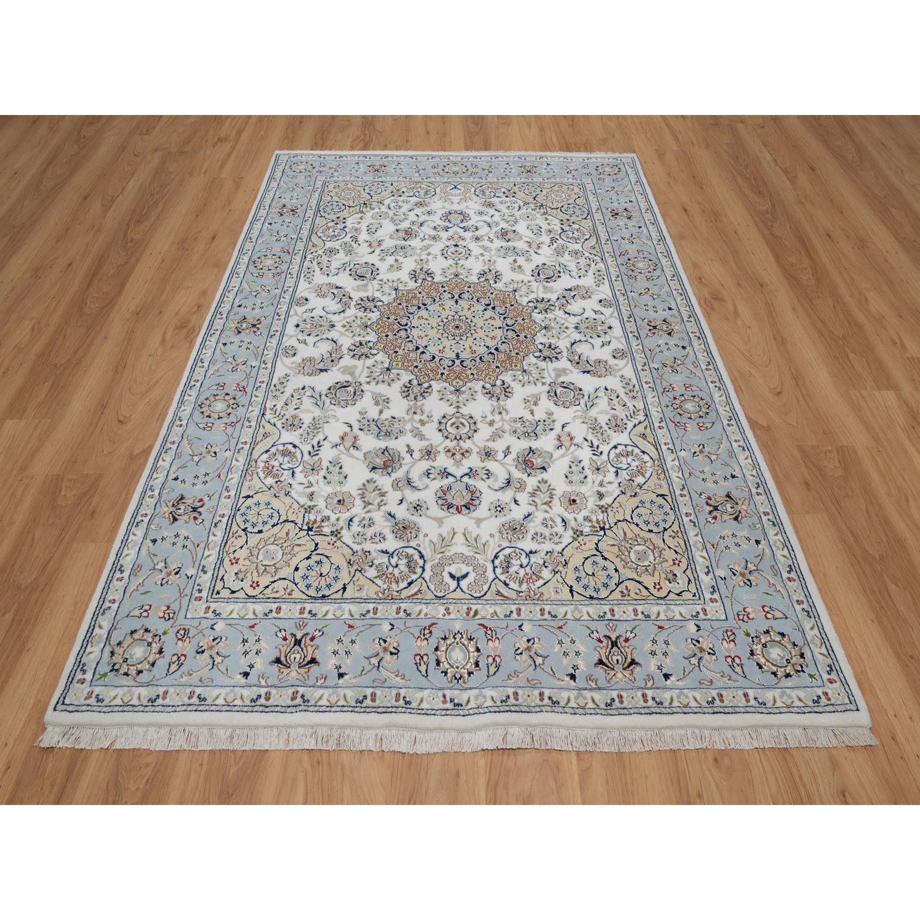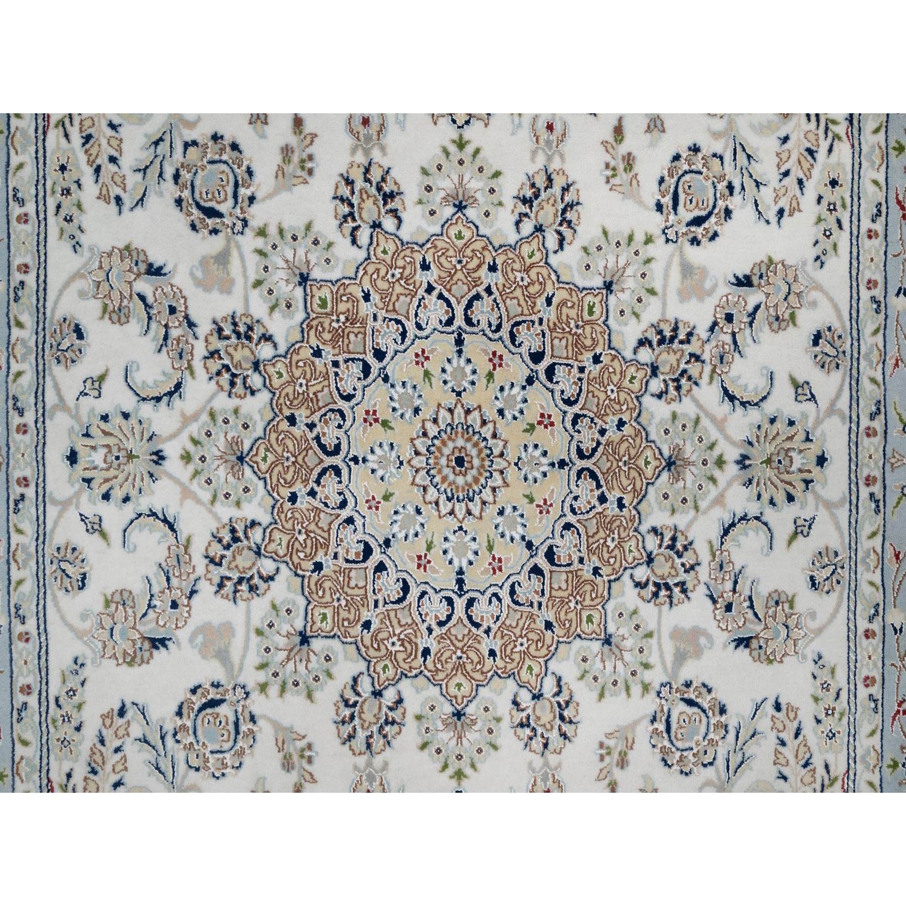6’x9′ Pristine White, 250 KPSI, Nain with Flower Medallion Design, Wool and Silk, Soft Pile, Hand Knotted, Oriental Rug HR91586