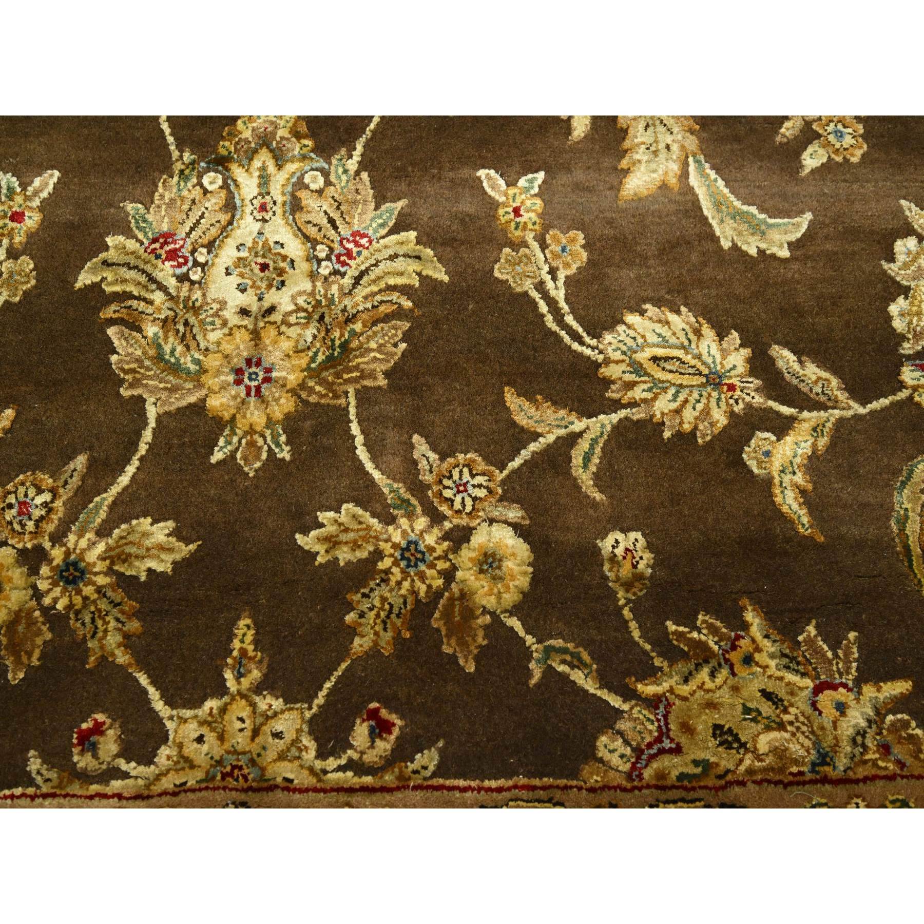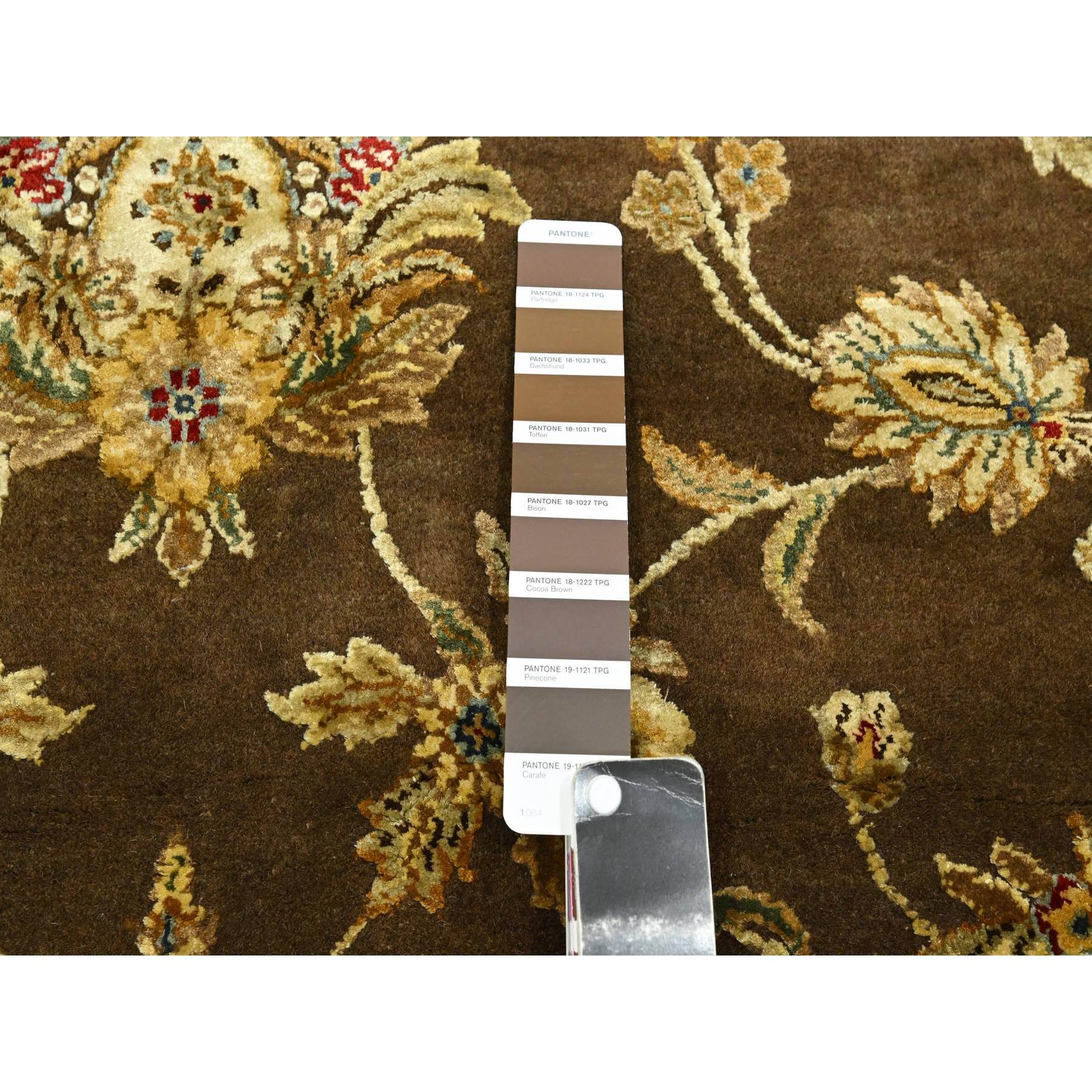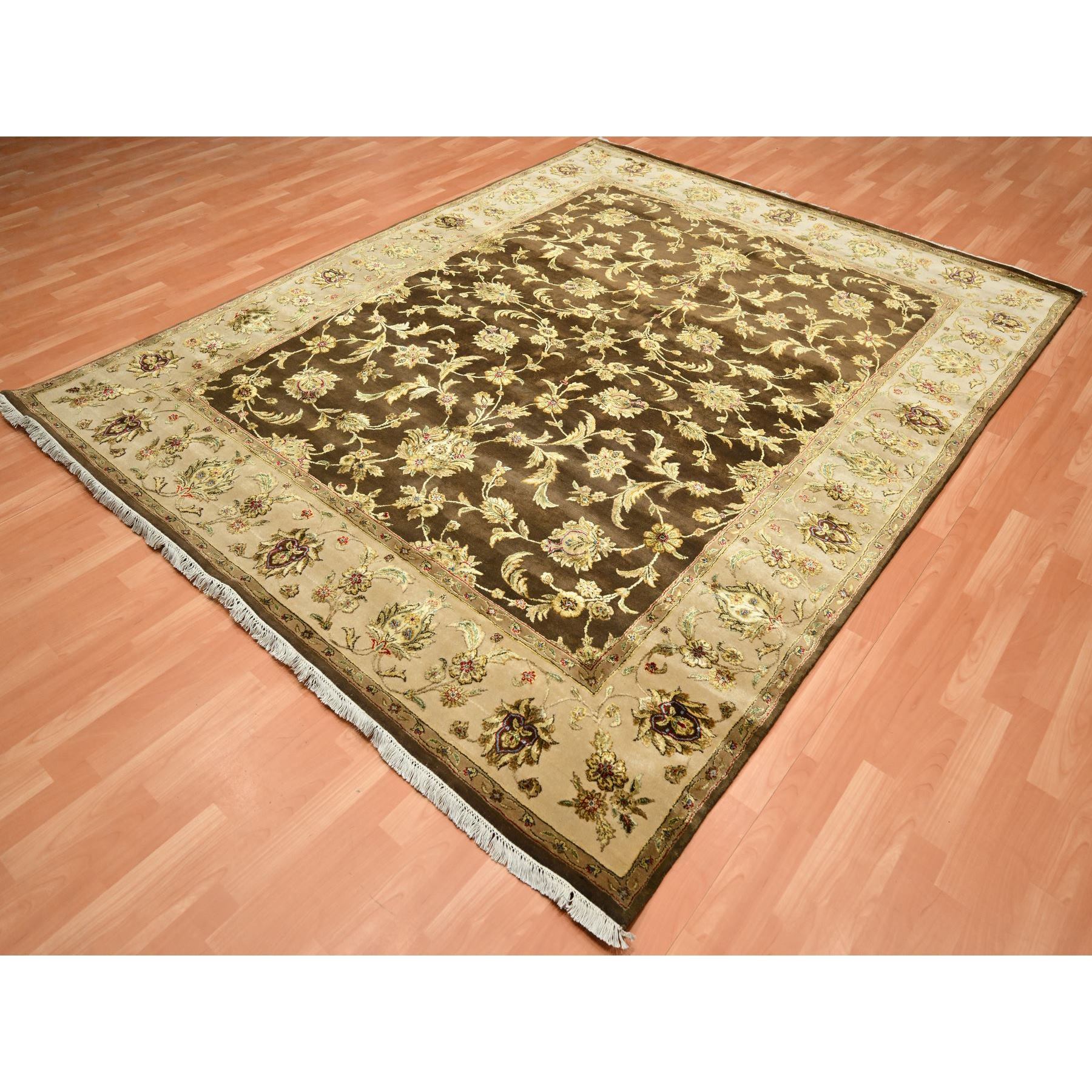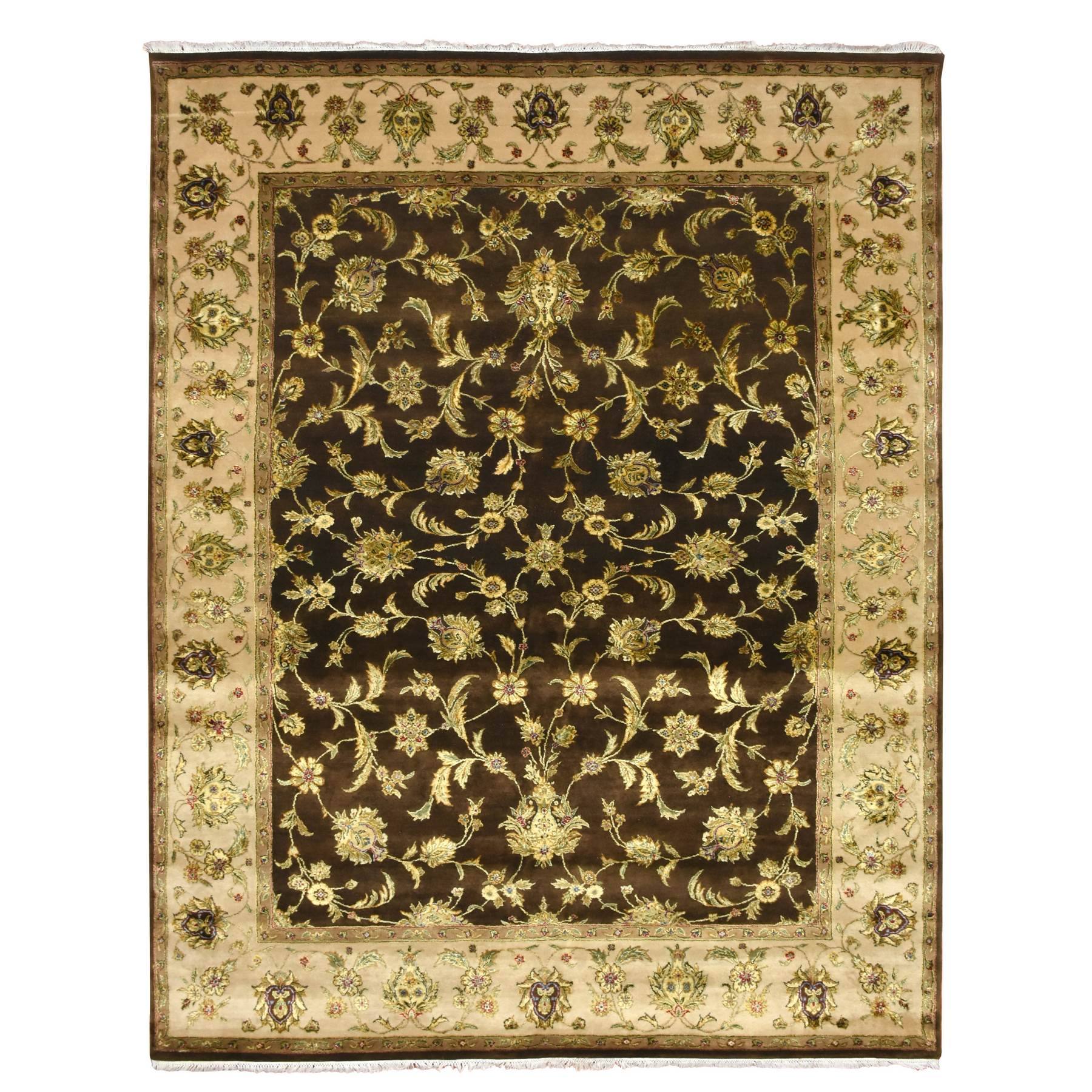 7’10″x10′ Coffee Brown, Rajasthan with All Over Leaf Design, Hand Knotted, Wool and Silk, Soft Pile, Thick and Plush, Oriental Rug HR75582