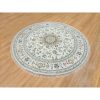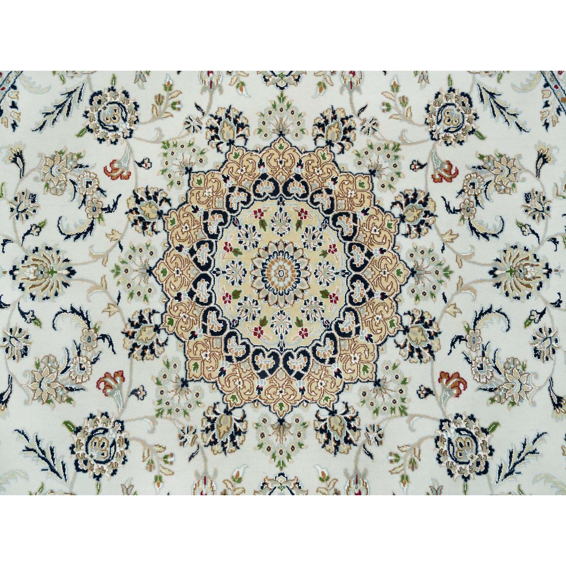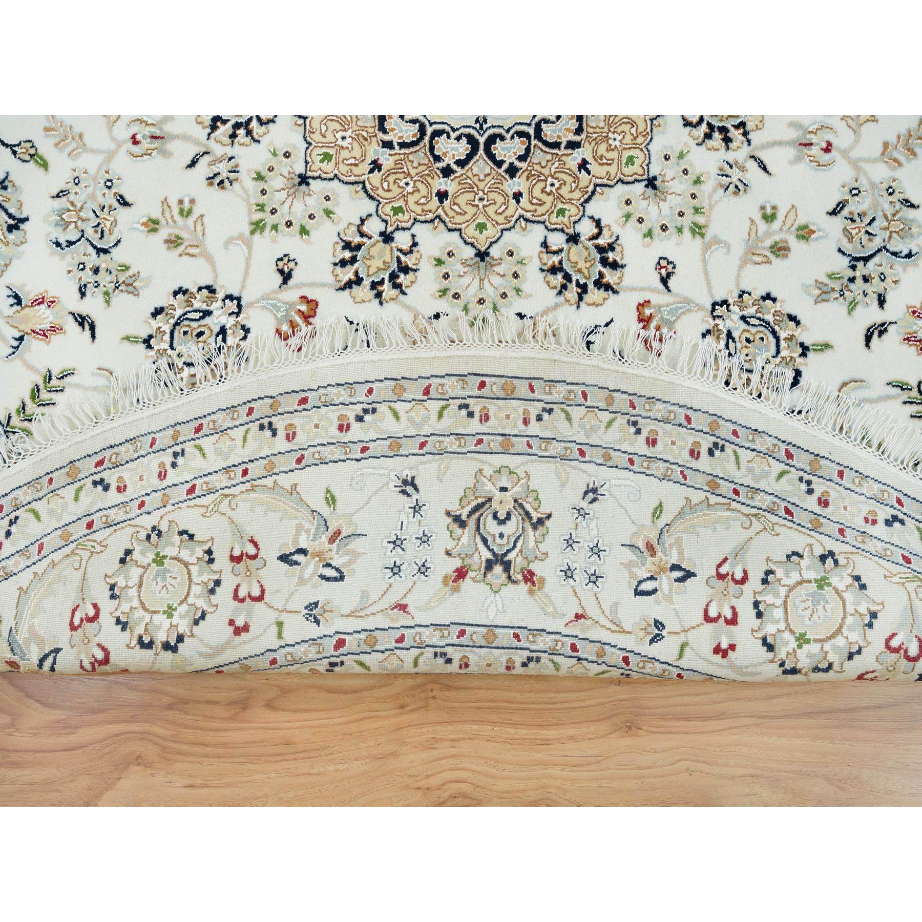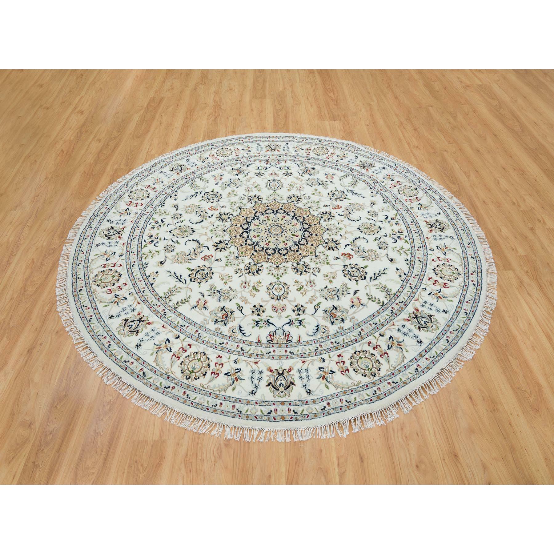7’10″x7’10” Ivory, Natural Wool Hand Knotted, Nain with Center Medallion Design 250 KPSI, Round Oriental Rug HR65298