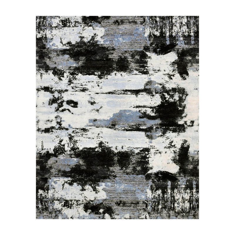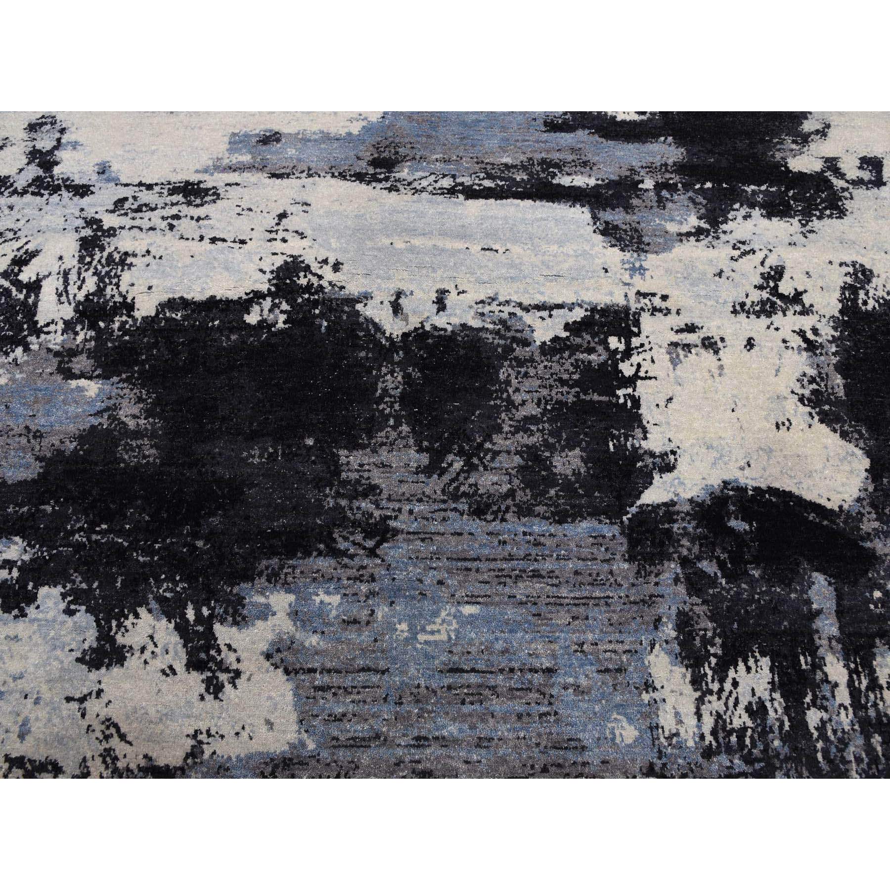 7’10″x9’10” Black and Gray, Modern Abstract Design, Pure Wool Hand Knotted, Oriental Rug HR75178