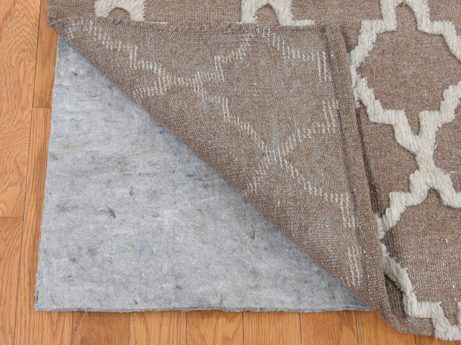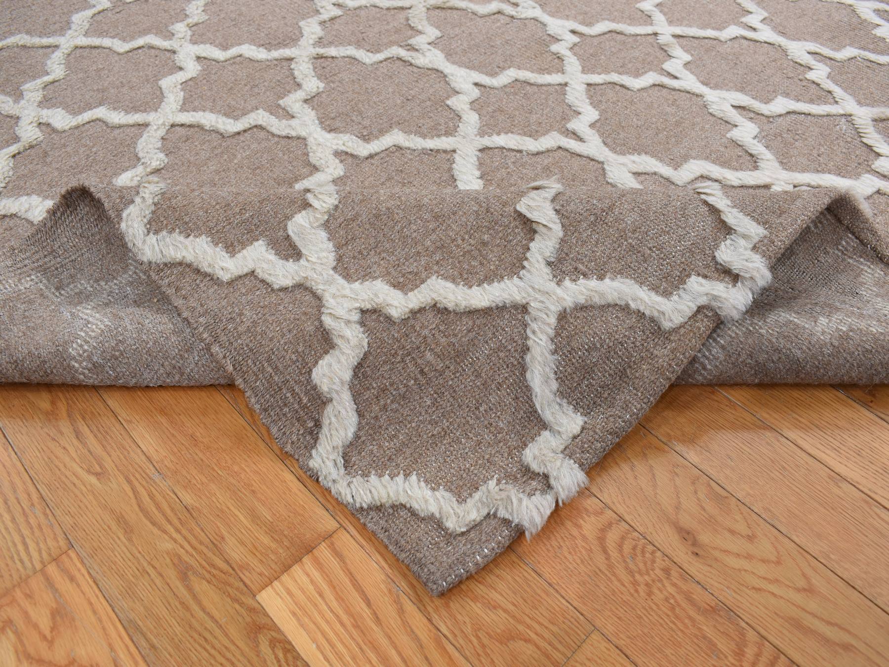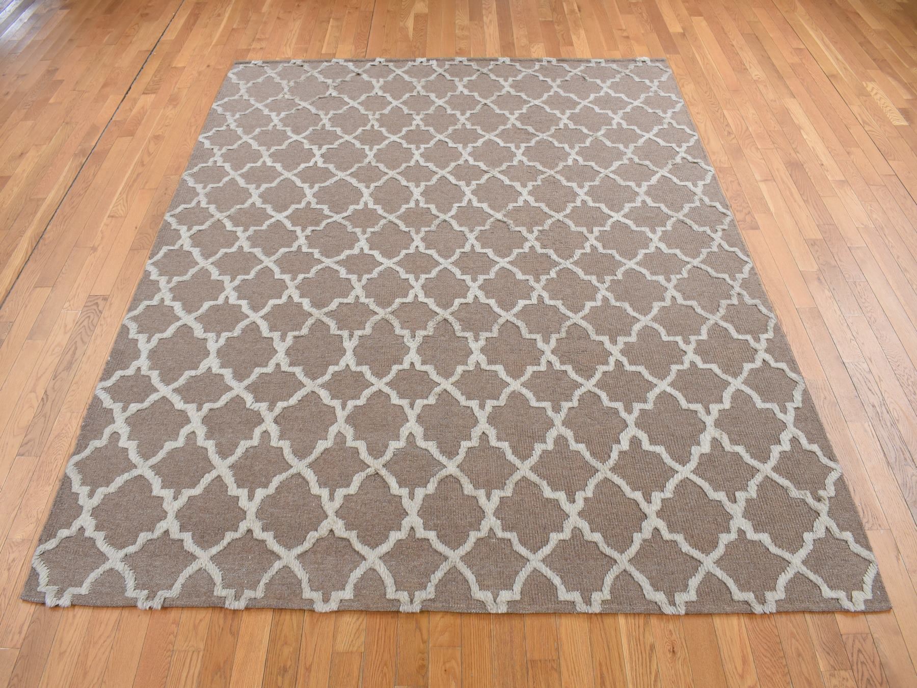 7’10″x9’9″ Coffee Brown, Moroccan Crisscross Design, Pure Wool, Hand Knotted, Flat Weave and Pile Combination, Oriental Rug HR87026