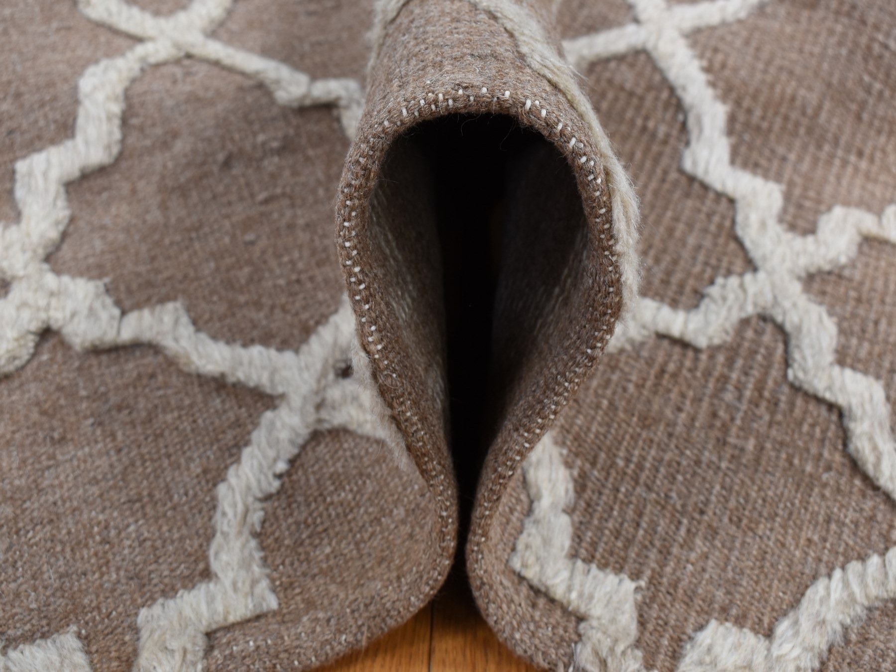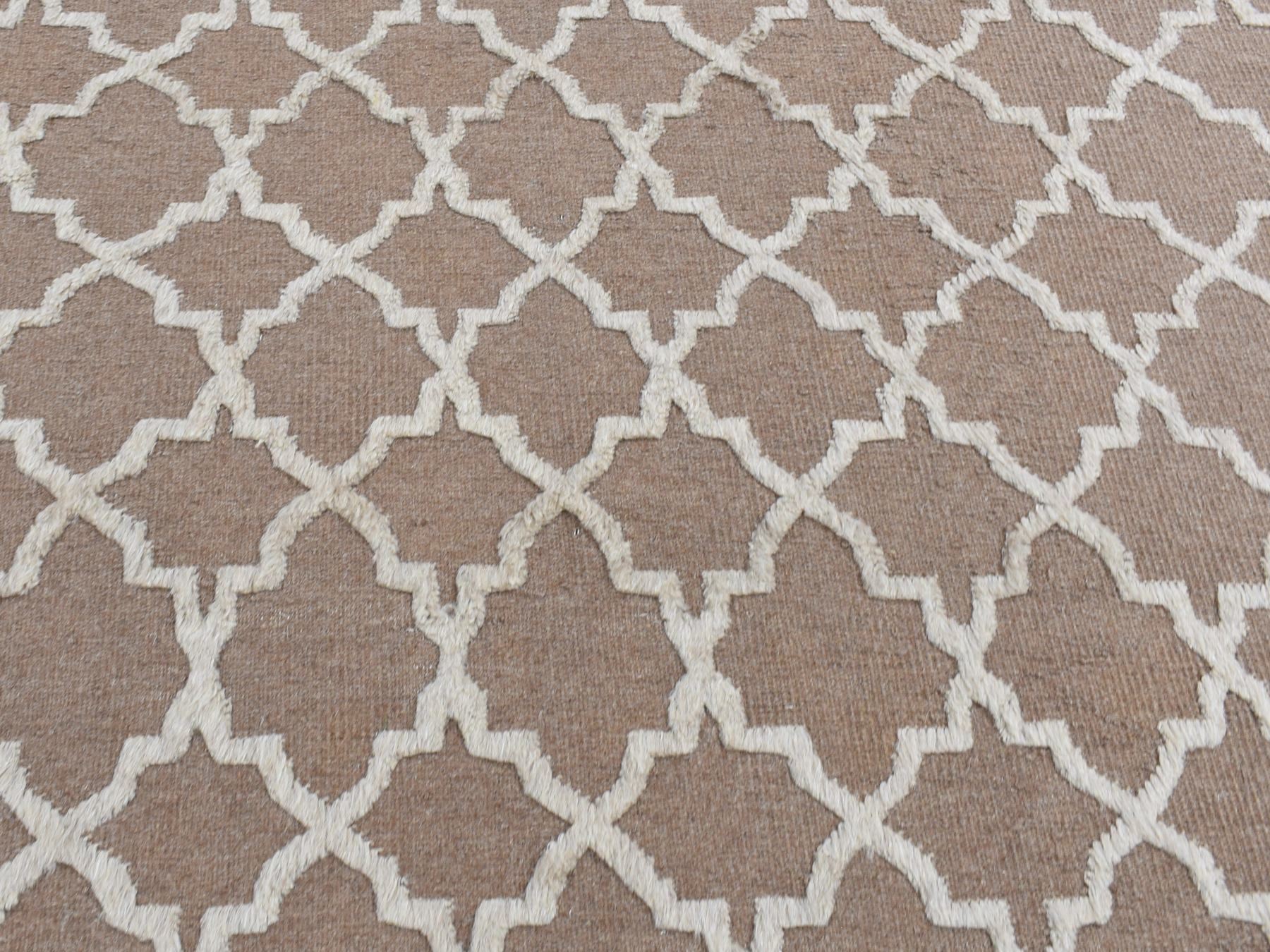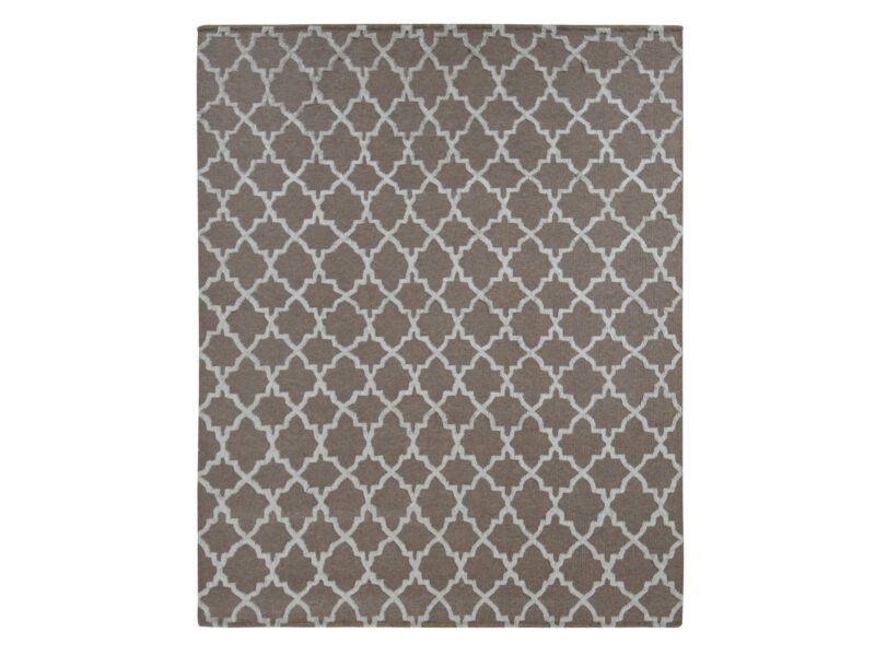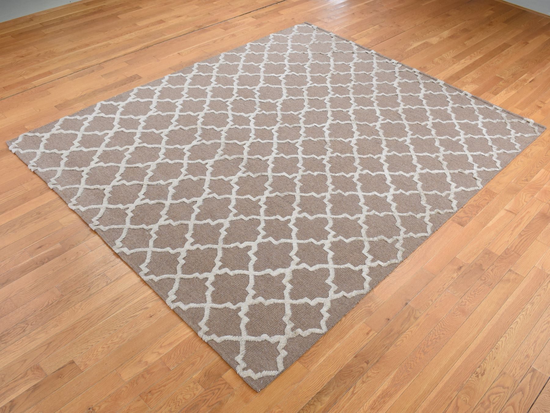 7’10″x9’9″ Coffee Brown, Moroccan Crisscross Design, Pure Wool, Hand Knotted, Flat Weave and Pile Combination, Oriental Rug HR87026