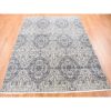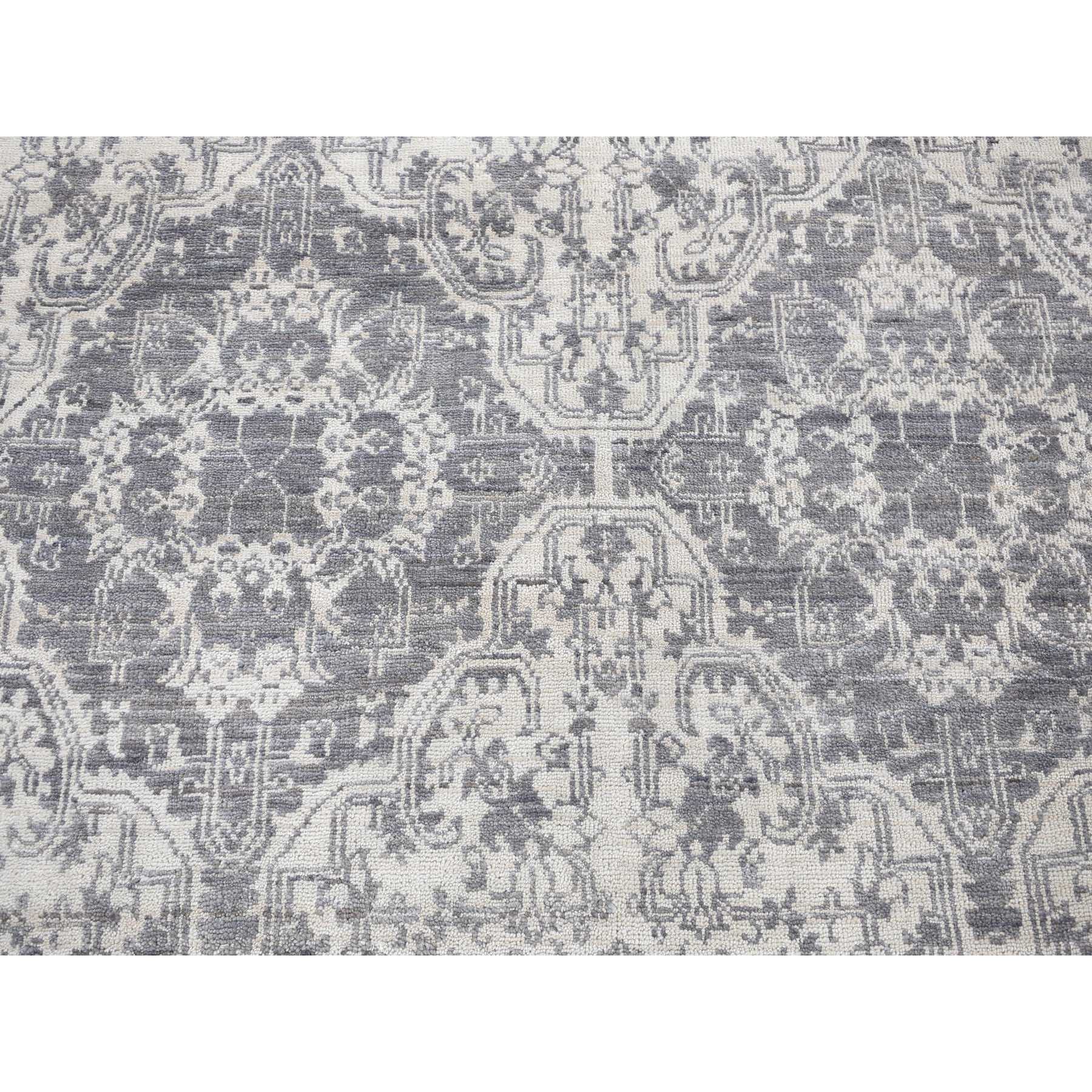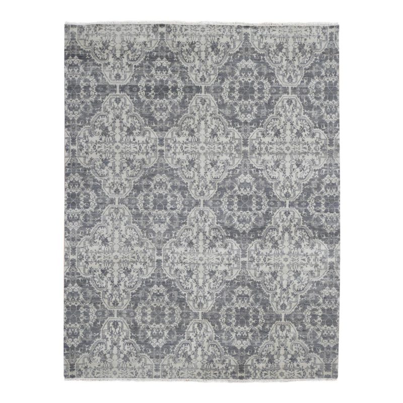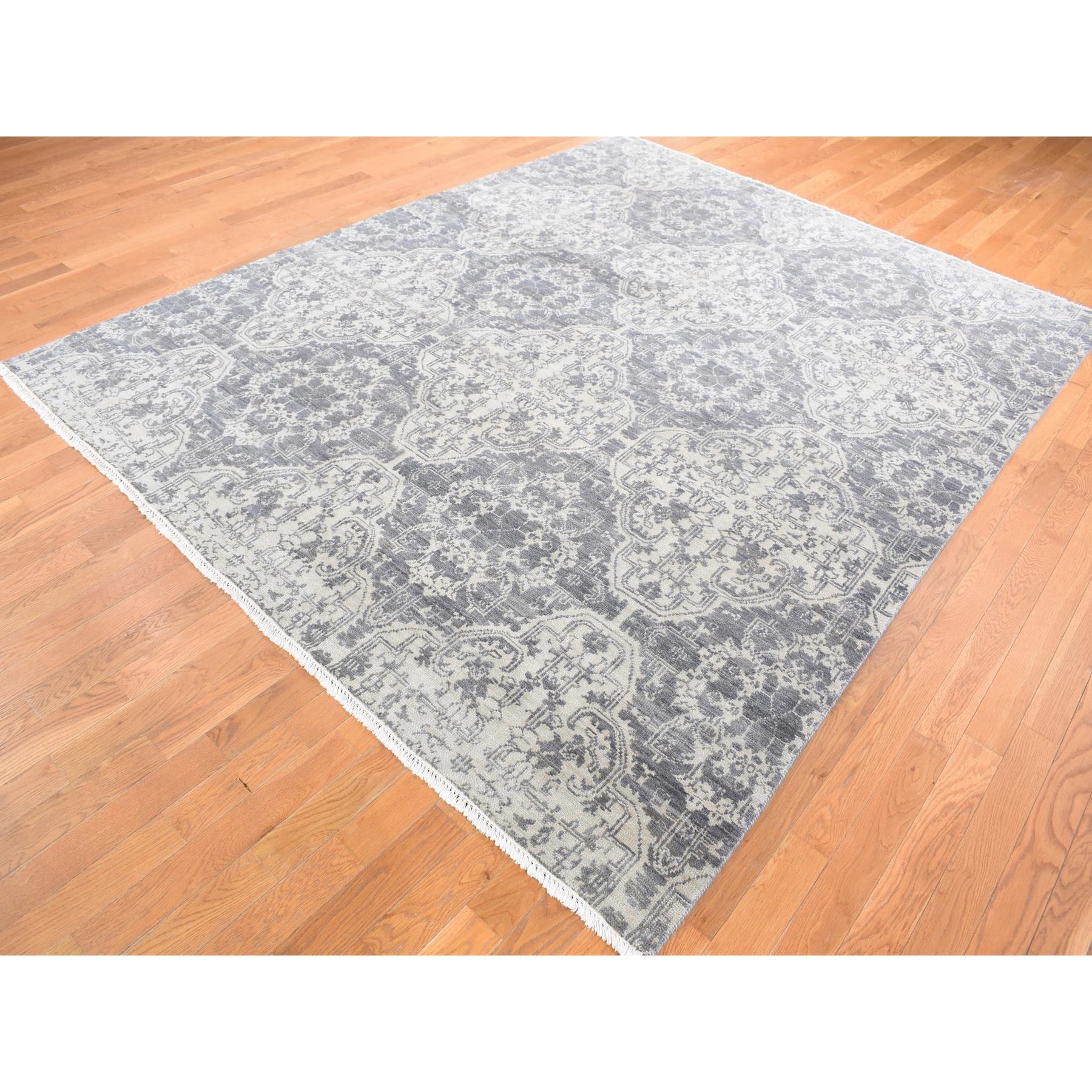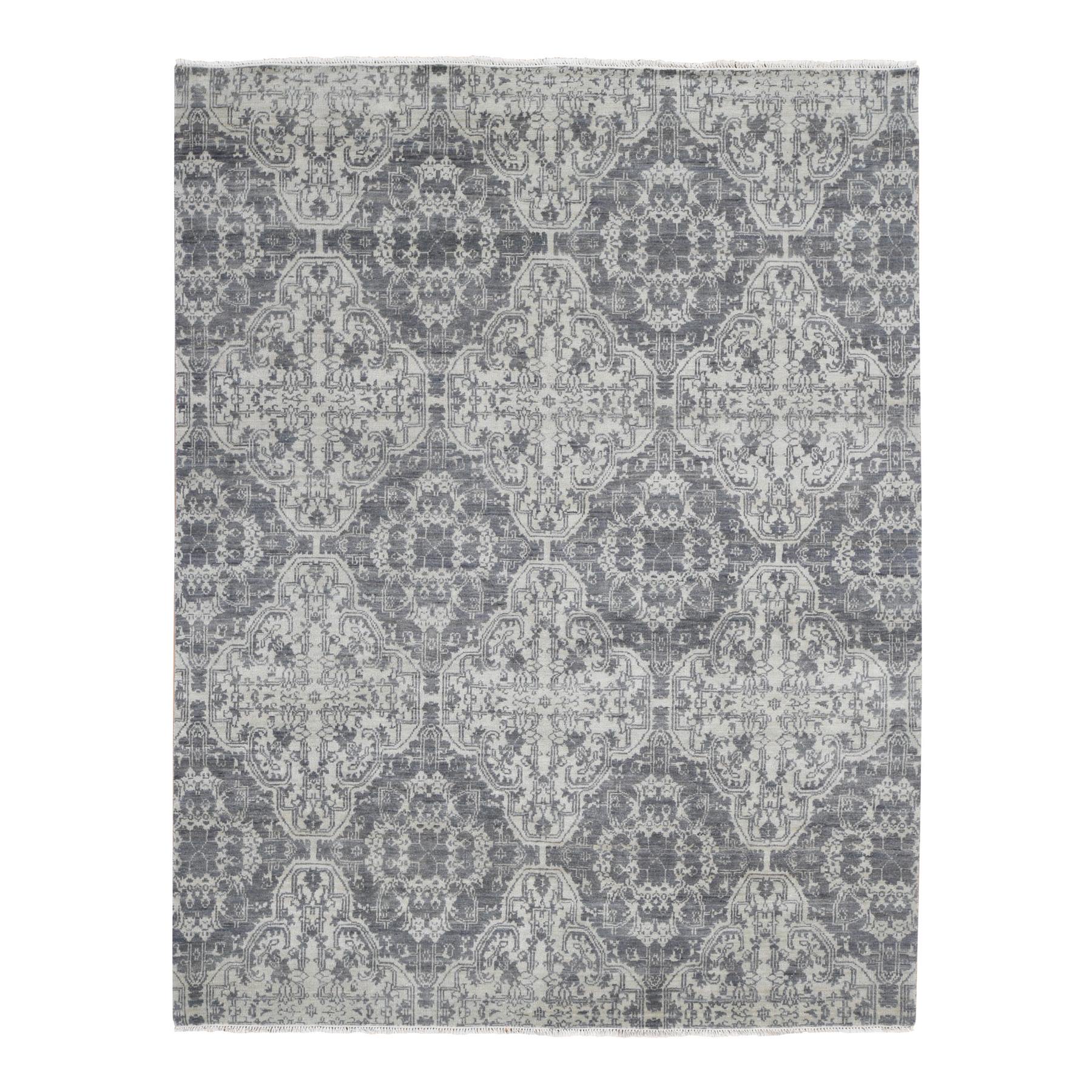 7’9″x10′ Ivory, Hand Knotted, Wool and Silk, Geometric Mughal Design with Large Elements Oriental Rug HR80382