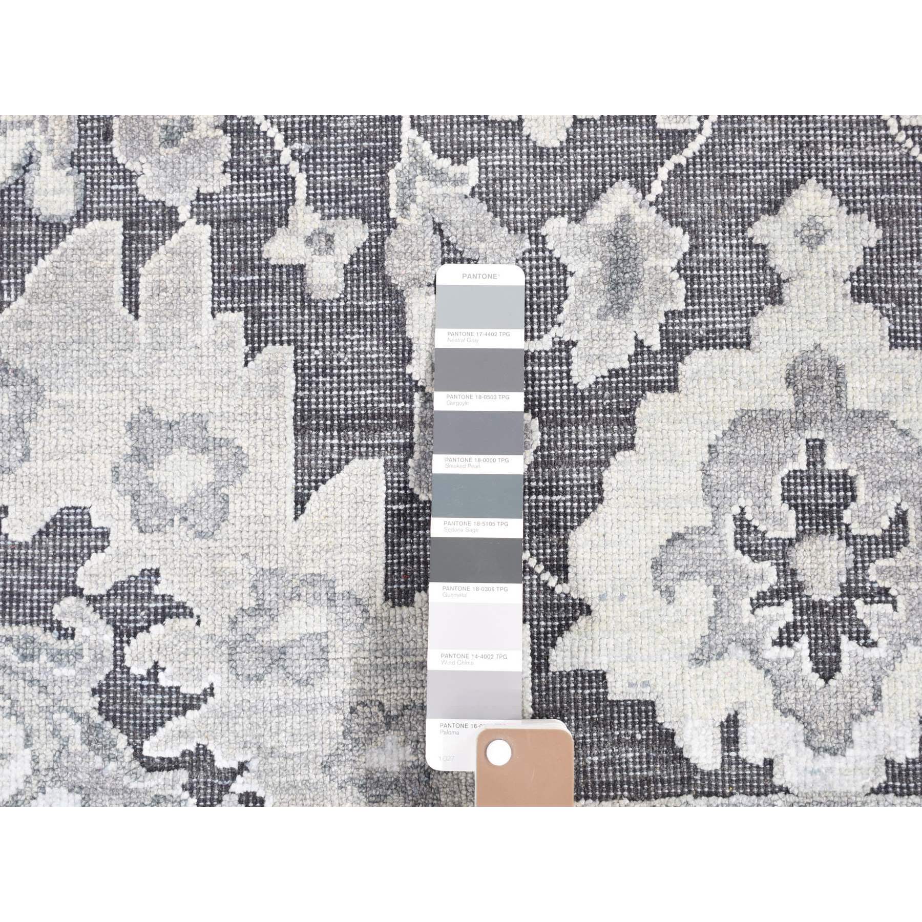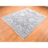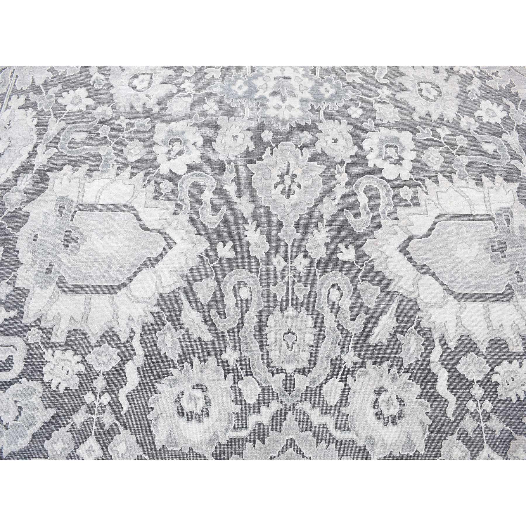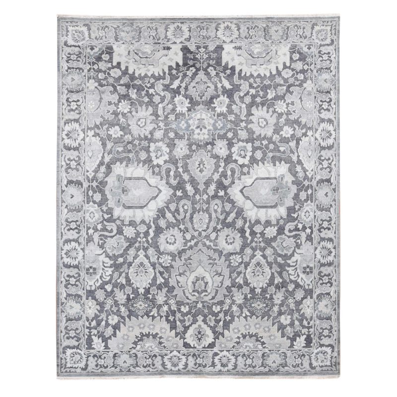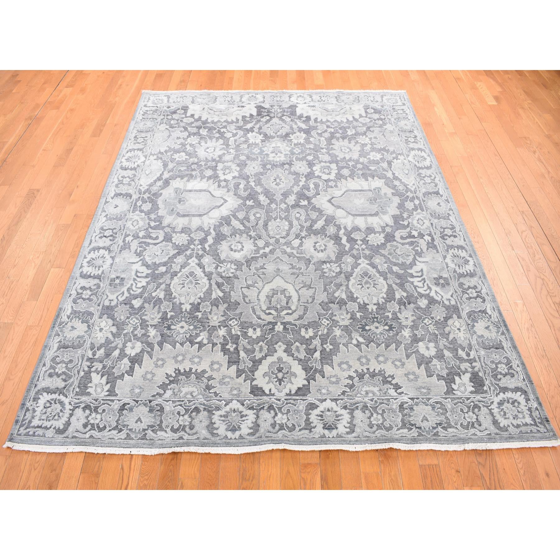 7’9″x10′ Thunder Gray, Hand Knotted Oushak Influence Silk with Textured Wool Oriental Rug HR80740