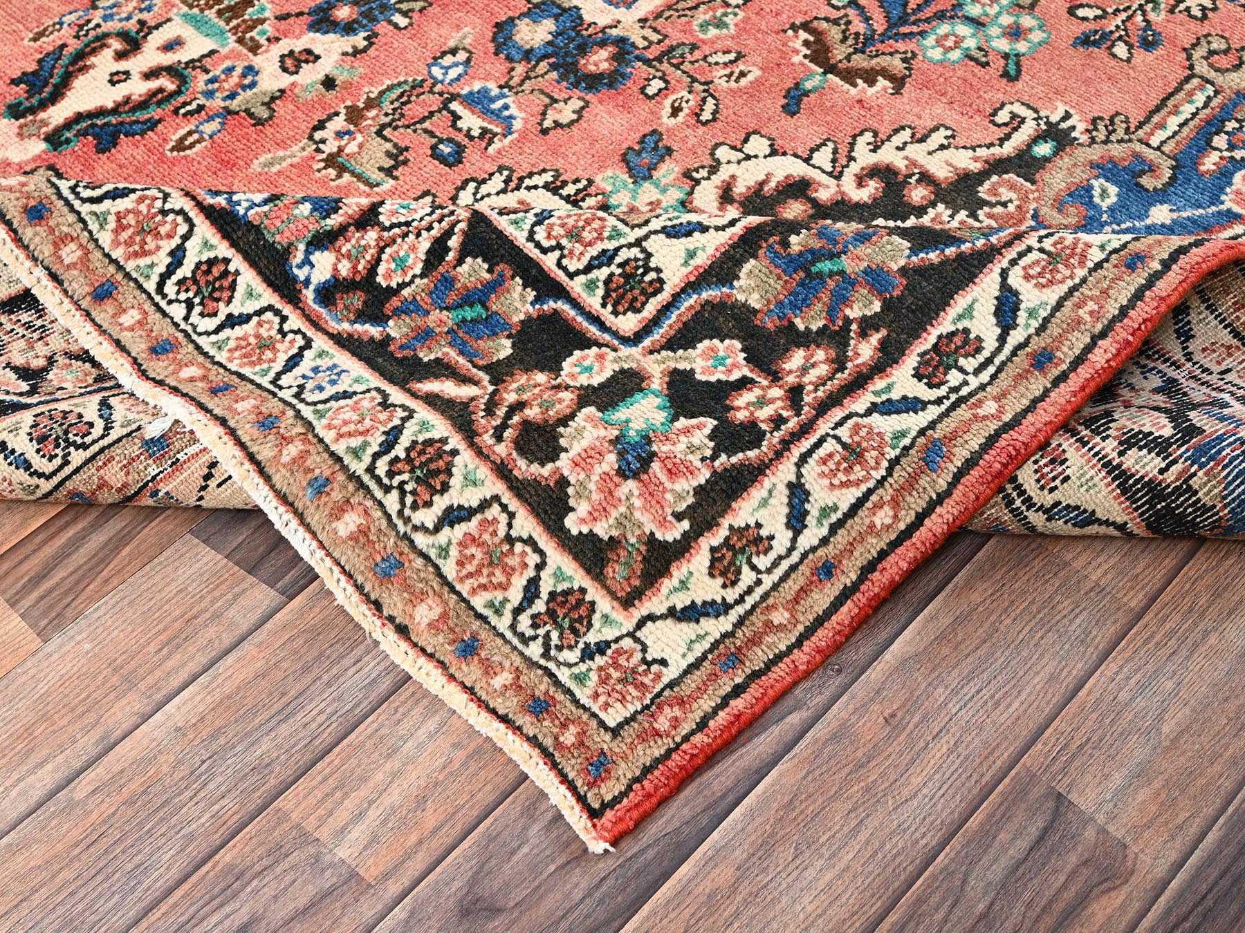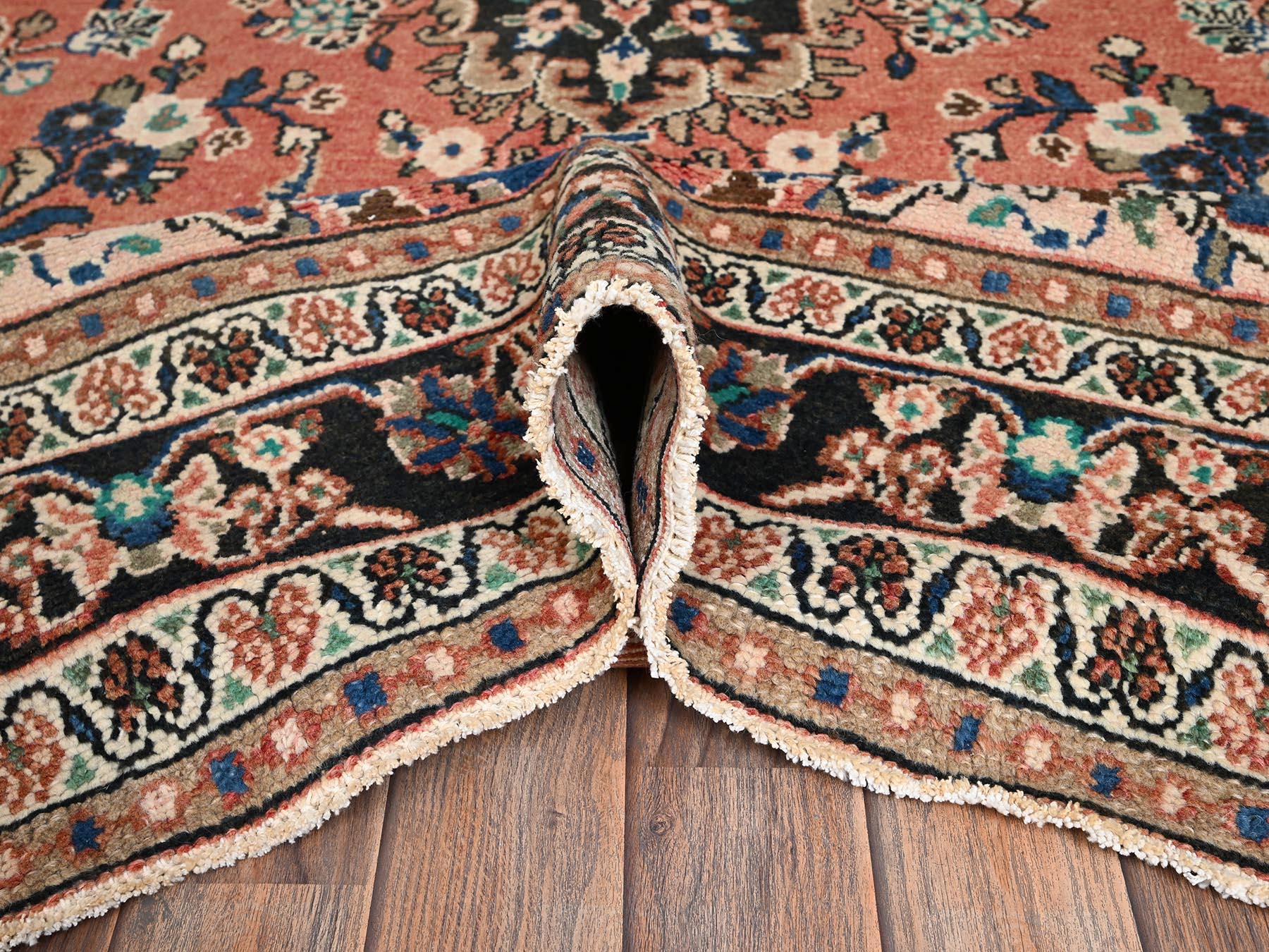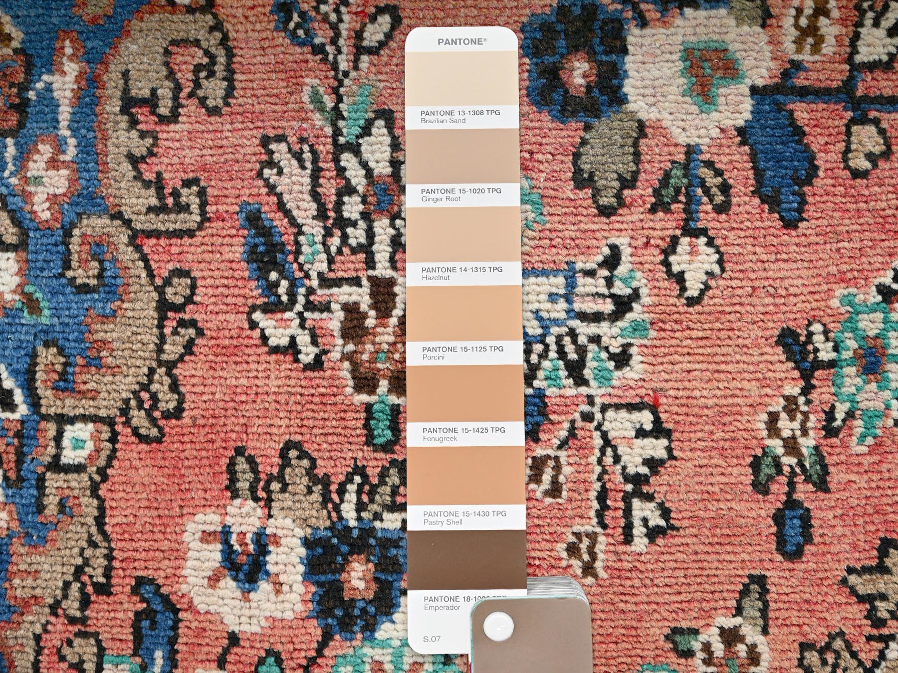 7’x10′ Rose Pink, Vintage Persian Bibikabad, Clean and Soft, Full Pile, 100% Wool, Hand Knotted, Sides and Ends Secured, Oriental Rug HR2066