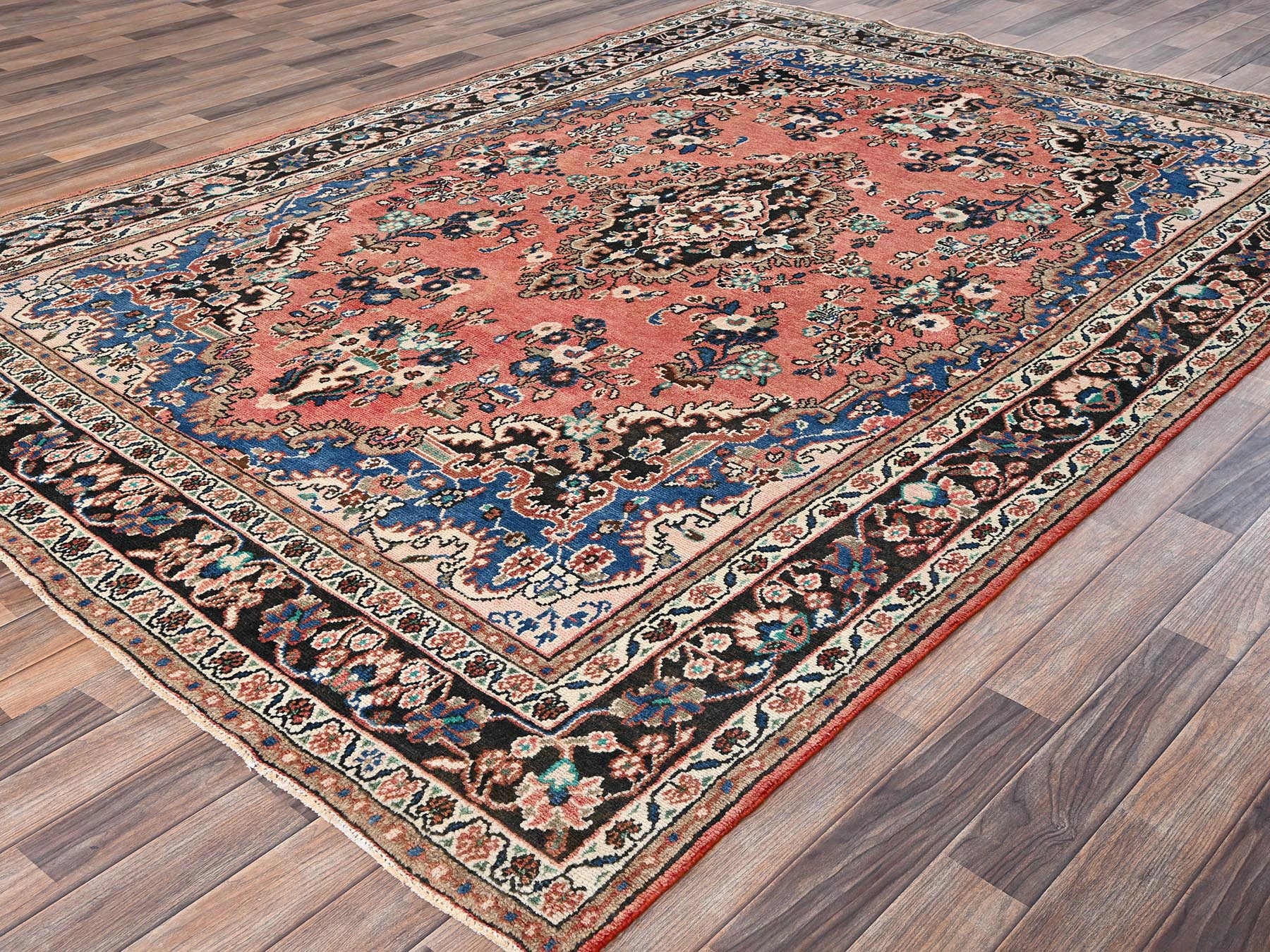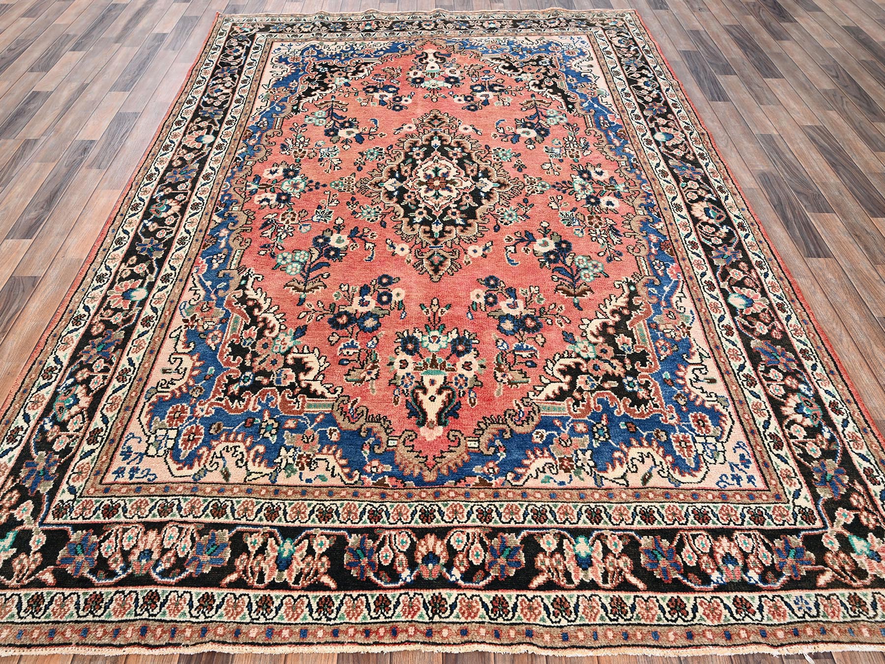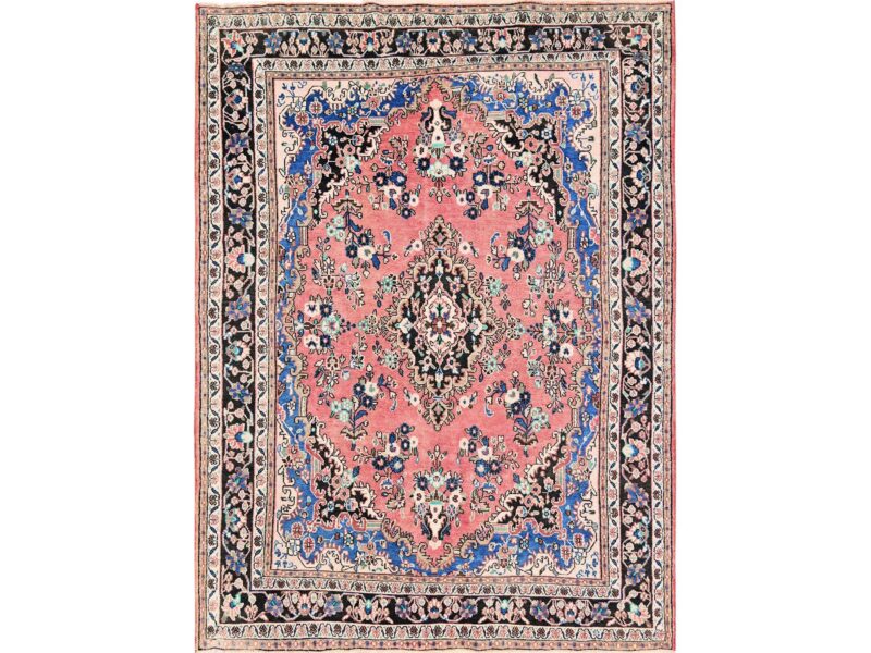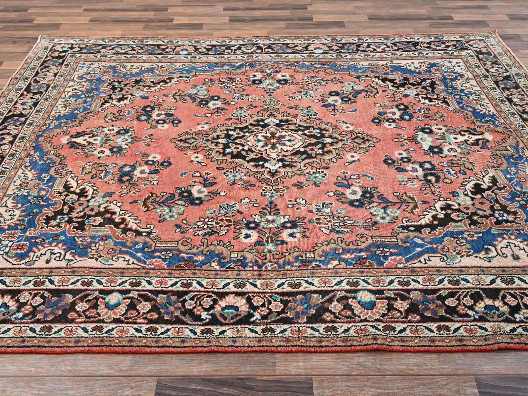 7’x10′ Rose Pink, Vintage Persian Bibikabad, Clean and Soft, Full Pile, 100% Wool, Hand Knotted, Sides and Ends Secured, Oriental Rug HR2066