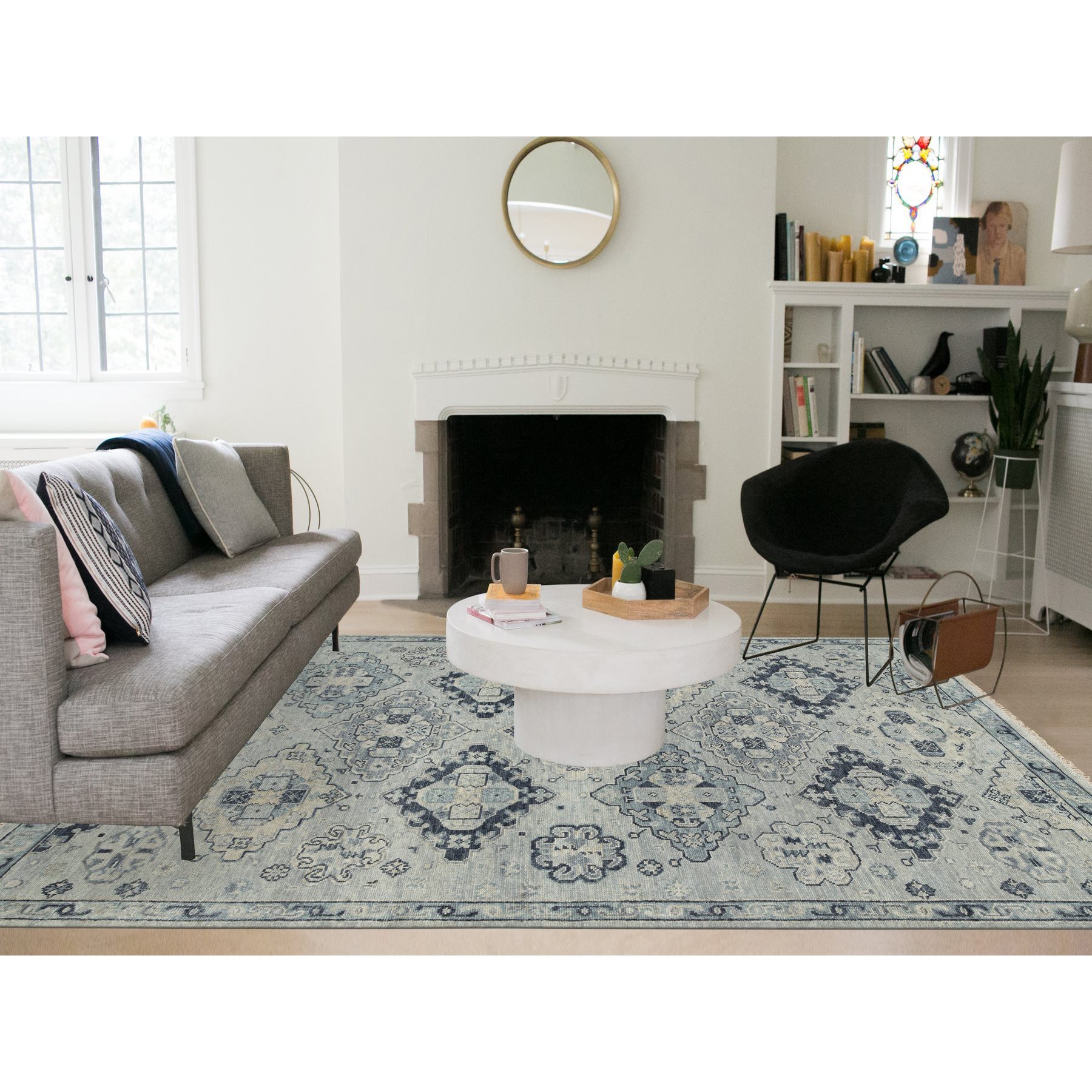 8’10″x11’10” Silver Gray, Pure Wool Hand Knotted, Anatolian Design Supple Collection Thick and Plush, Oriental Rug HR64520