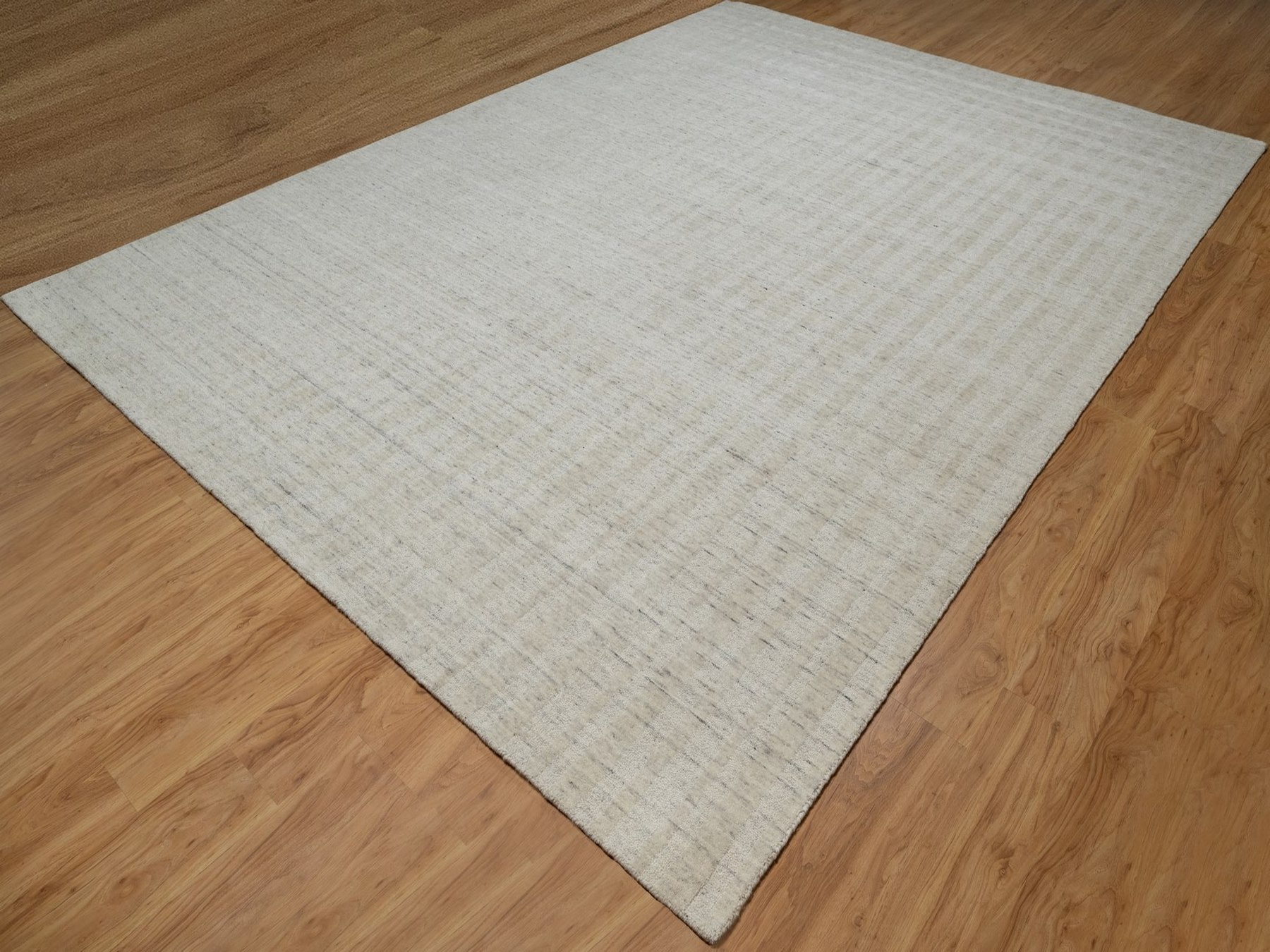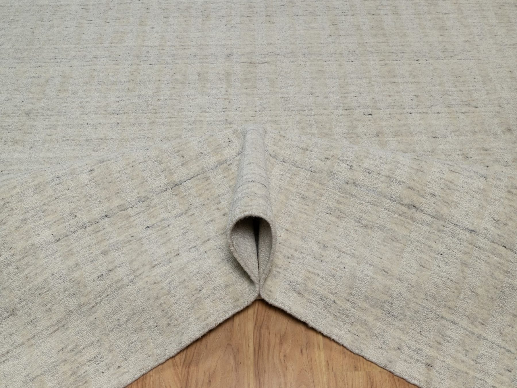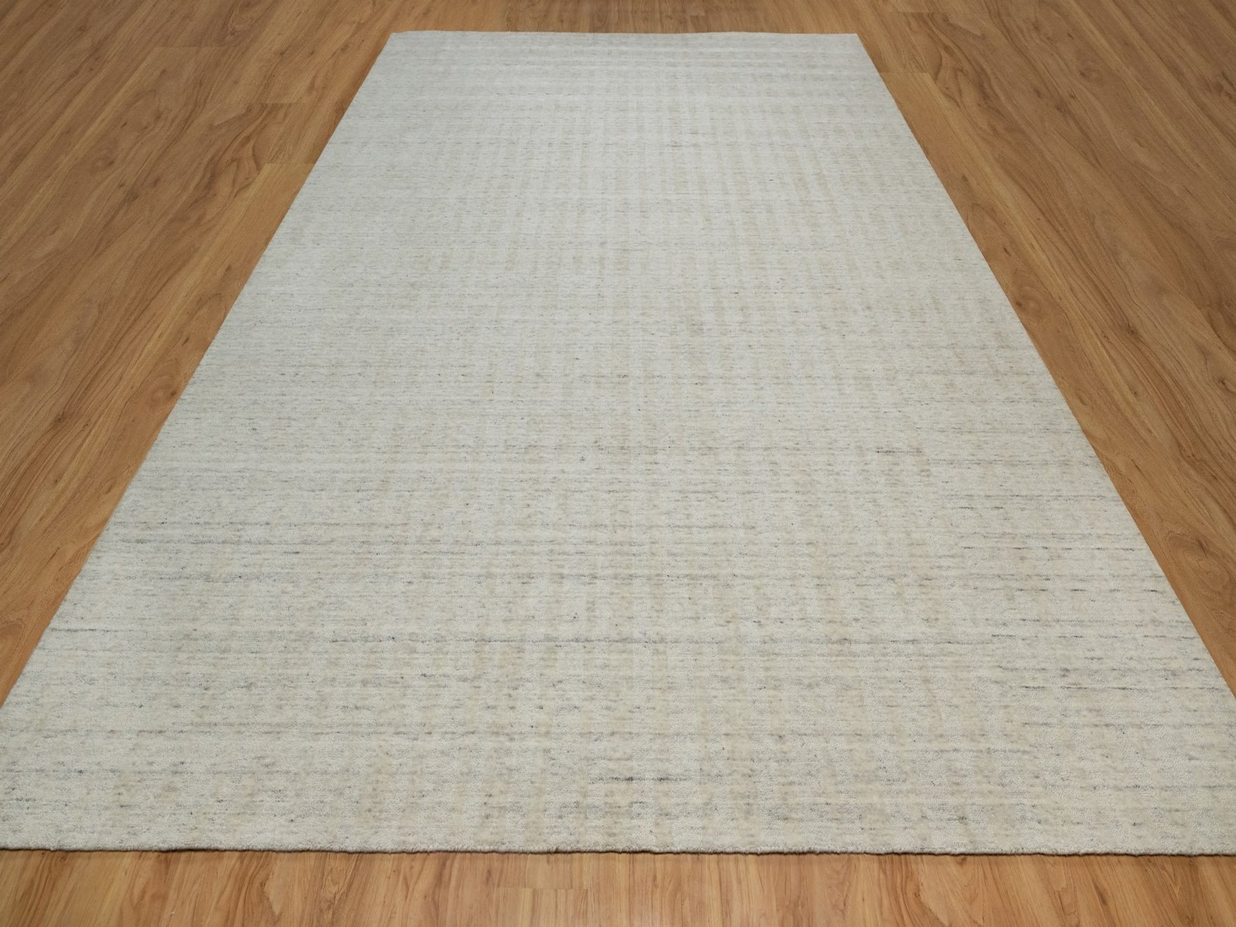8’10″x12′ Bone White, Vertical Stripes Design with Salt and Pepper Effect, Hand Loomed, Undyed Natural Wool, Oriental Rug HR91675