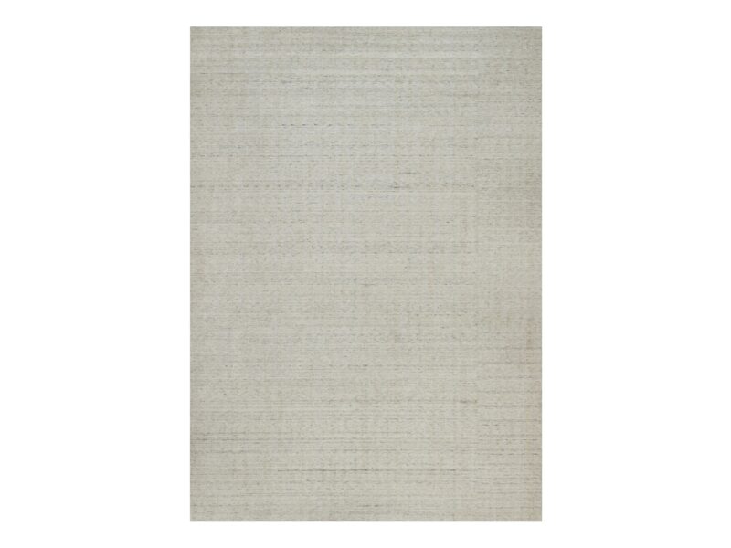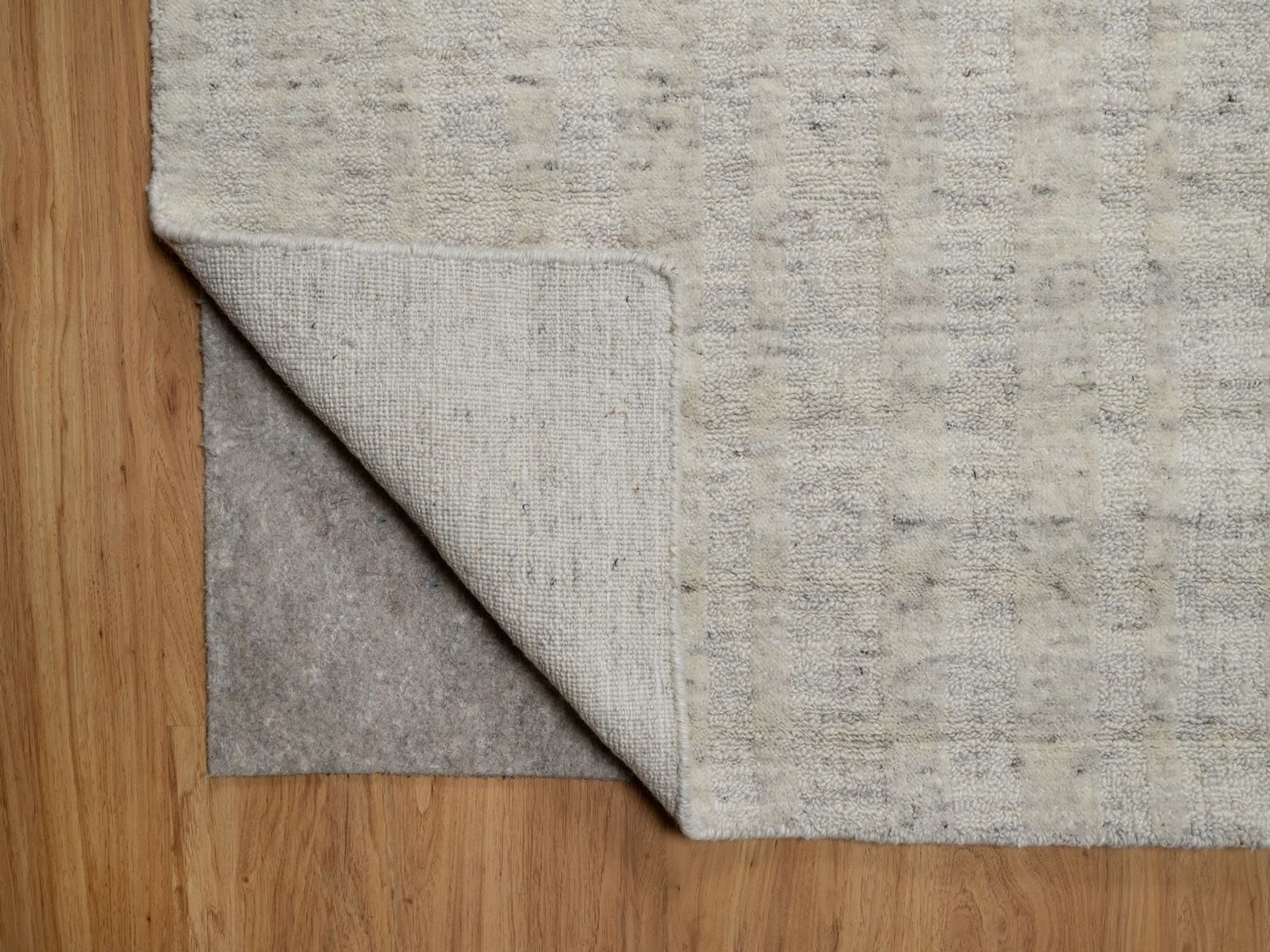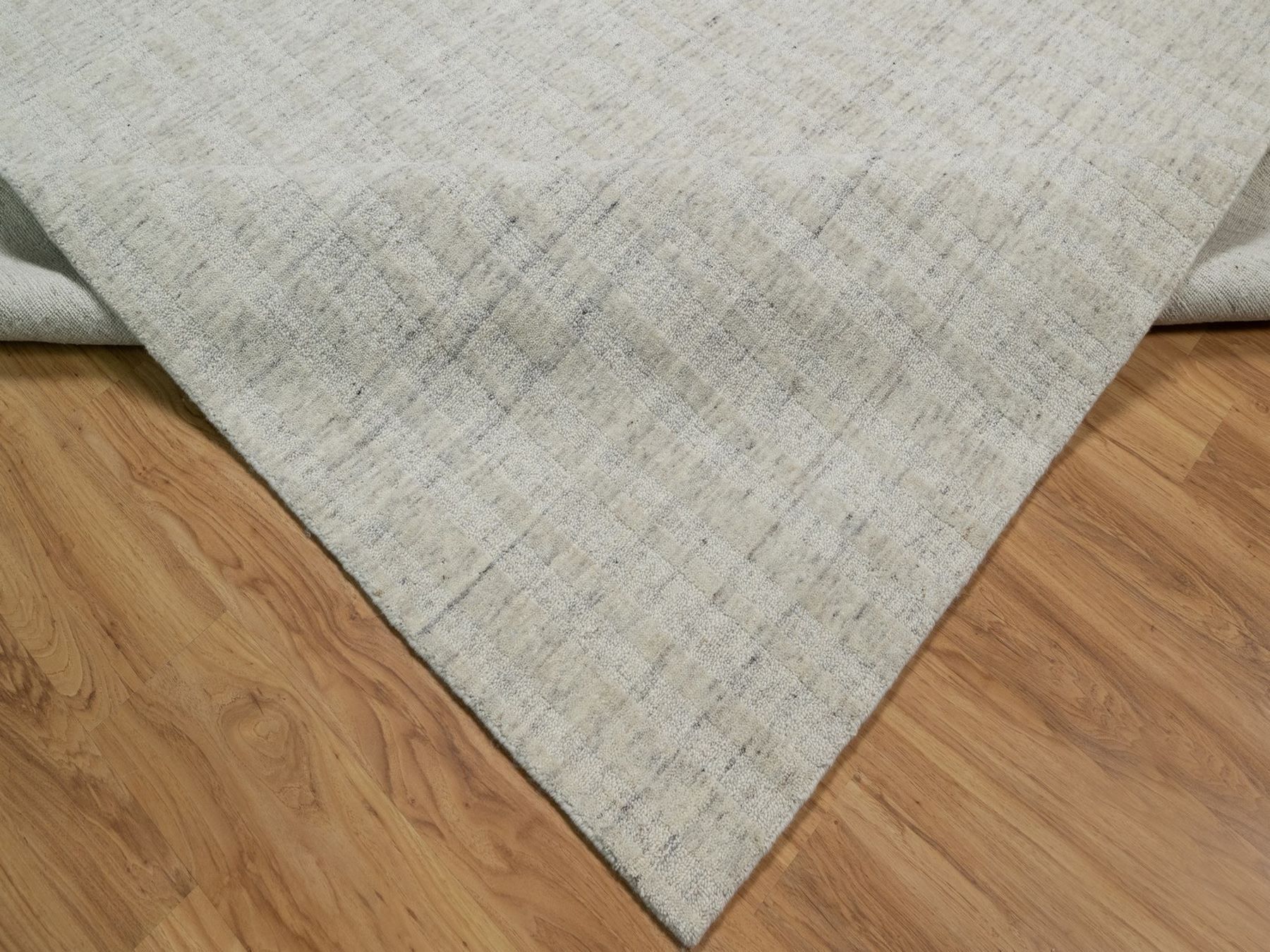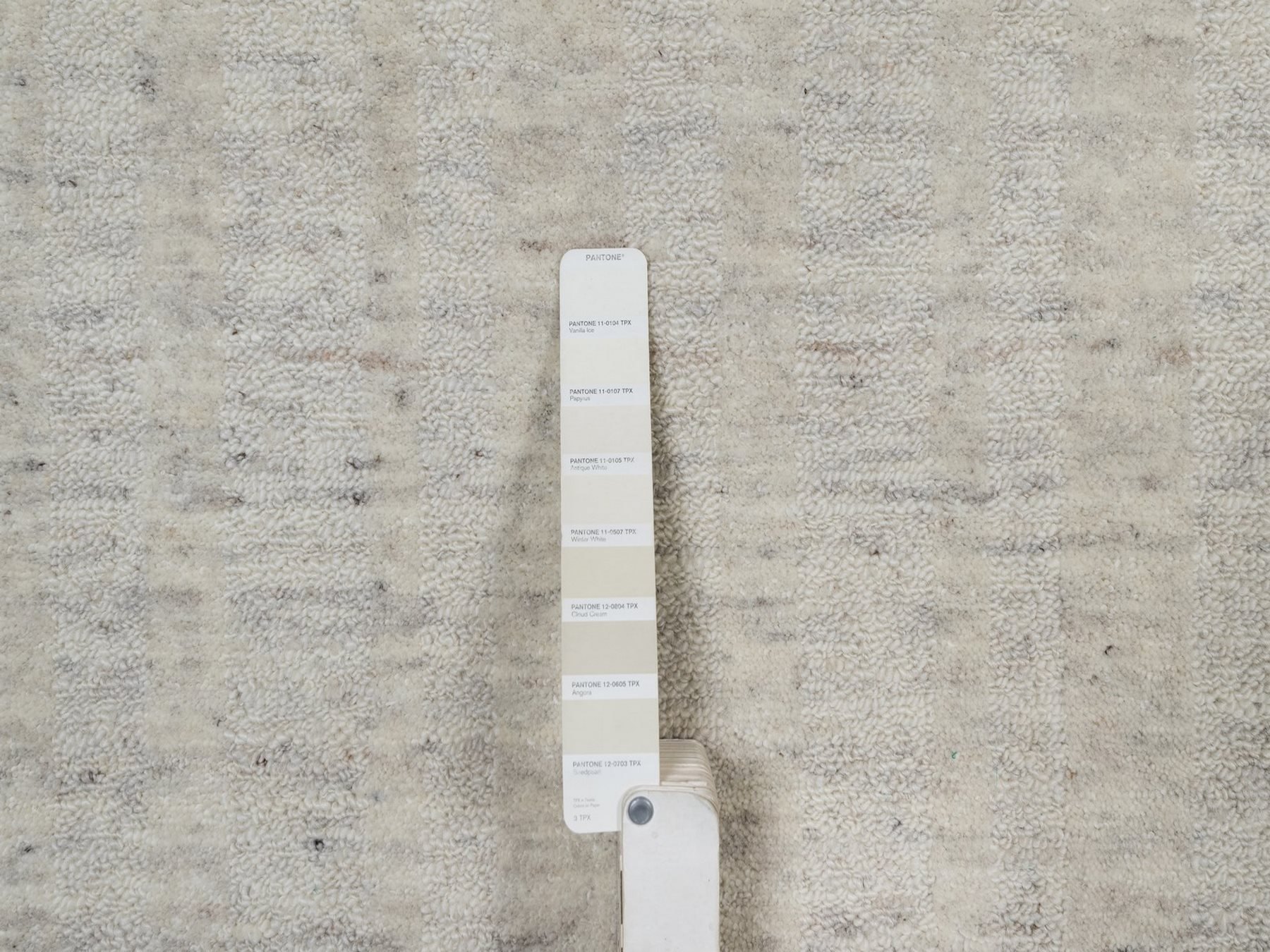 8’10″x12′ Bone White, Vertical Stripes Design with Salt and Pepper Effect, Hand Loomed, Undyed Natural Wool, Oriental Rug HR91675