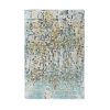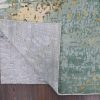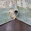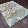 8’10″x12′ Ivory with Green & Gold, Abstract Design, Wool and Silk, Thick and Plush, Hand Knotted, Oriental Rug HR10434