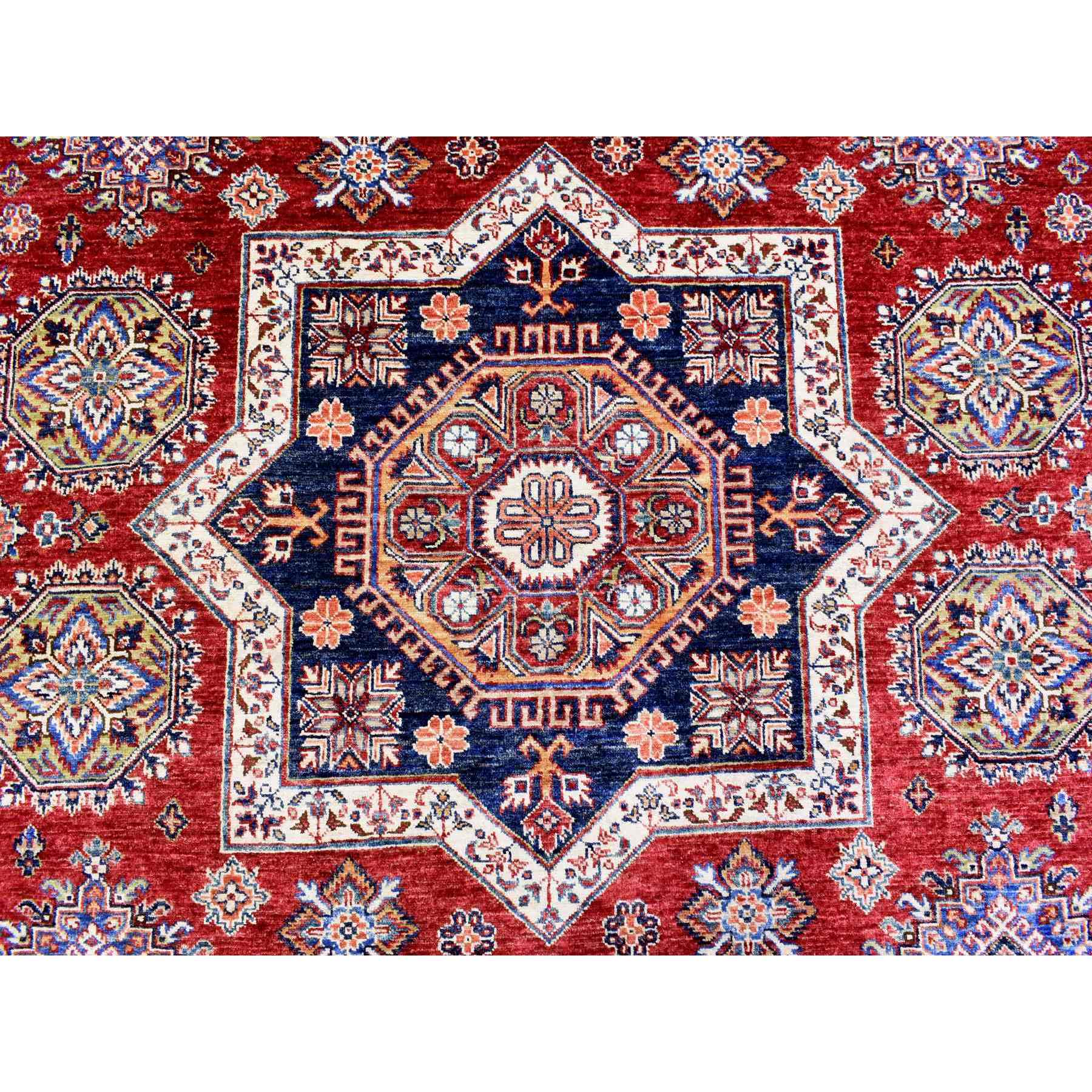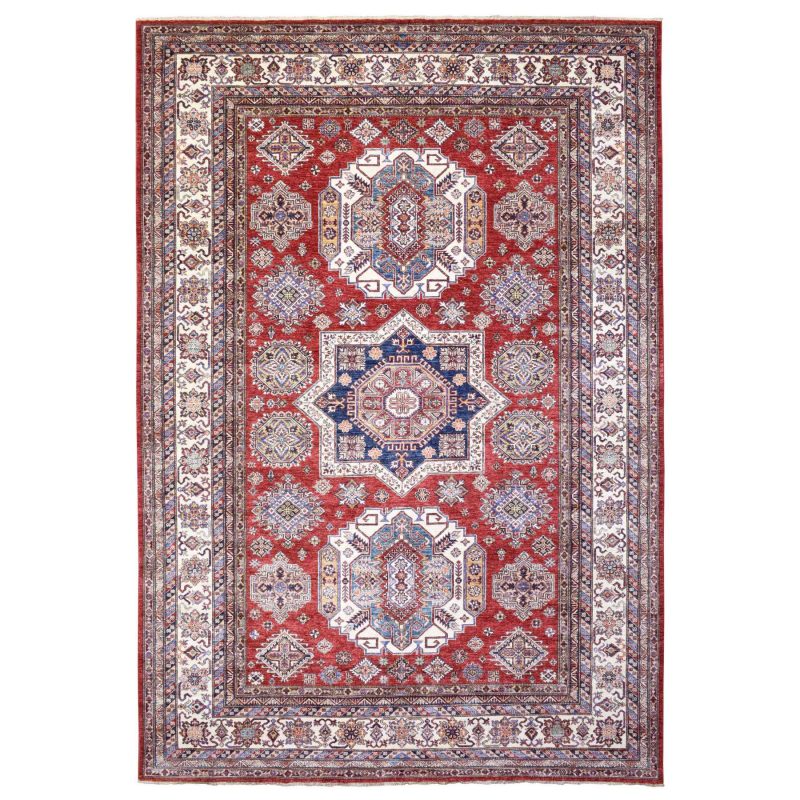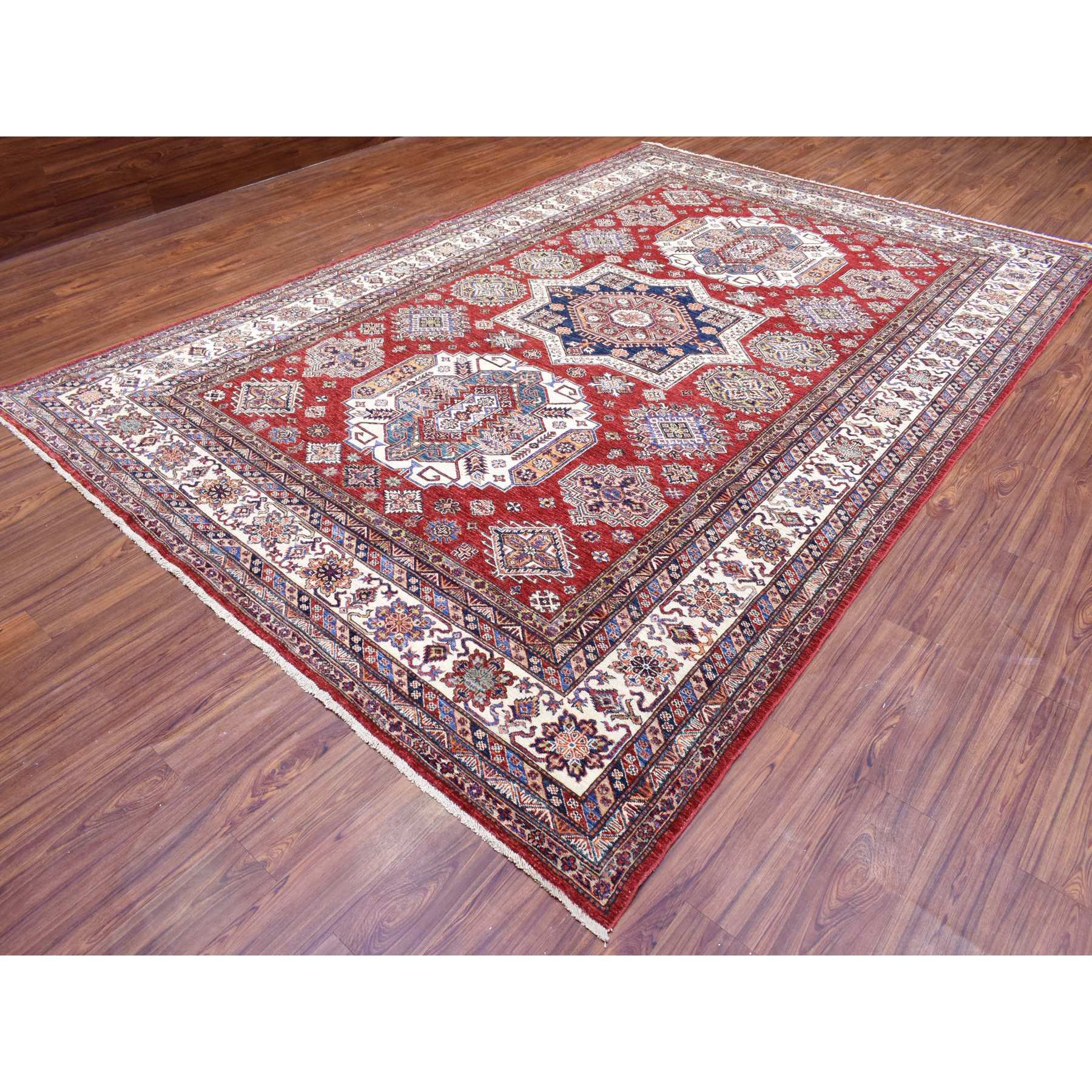 8’10″x13′ Tomato Red, Afghan Super Kazak with Tribal Medallions Design Natural Dyes, Densely Woven Pure Wool Hand Knotted, Oriental Rug HR72549