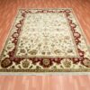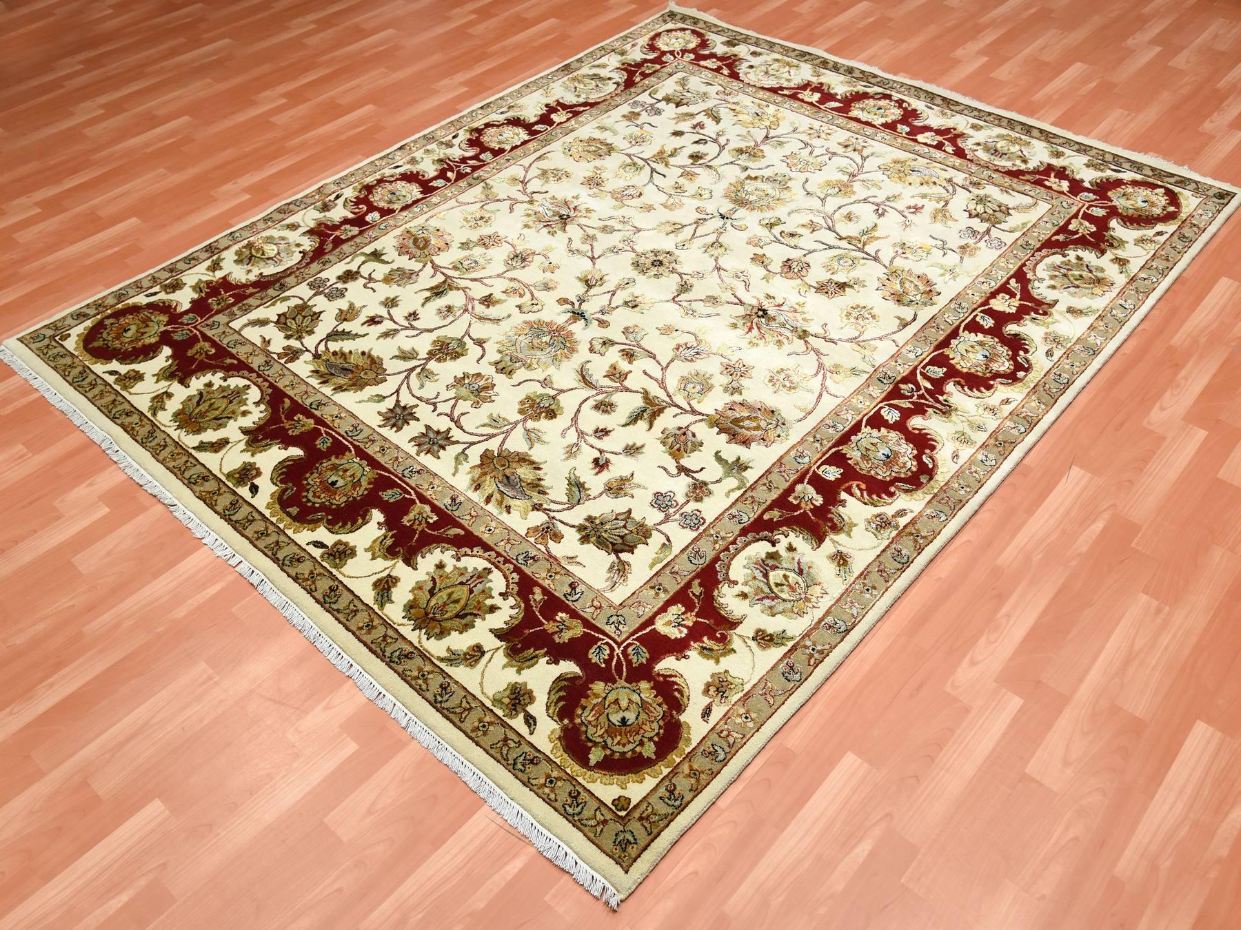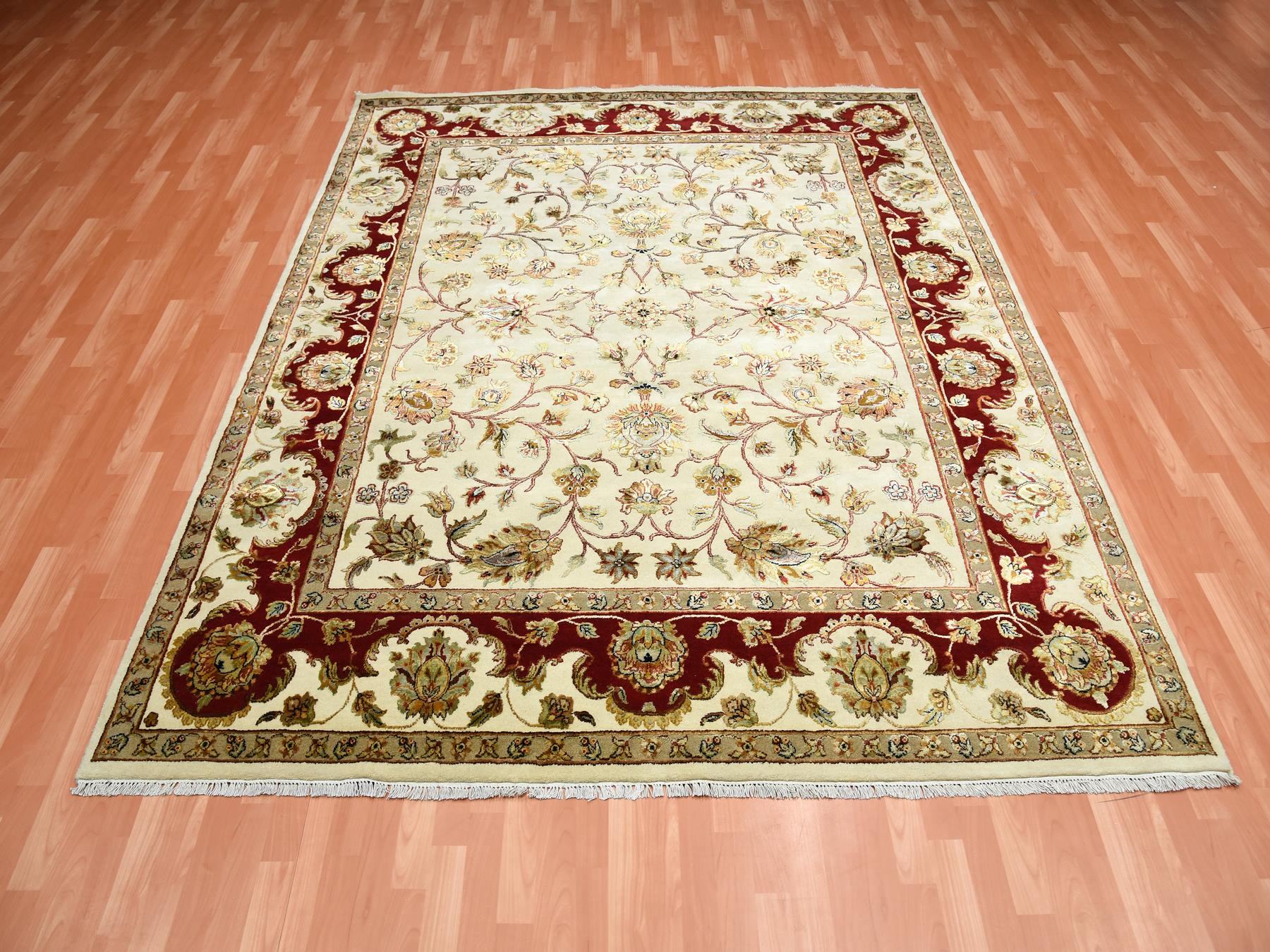 8’1″x10′ Ivory, Rajasthan with All Over Leaf Design Thick and Plush, Wool and Silk Hand Knotted, Oriental Rug HR75272