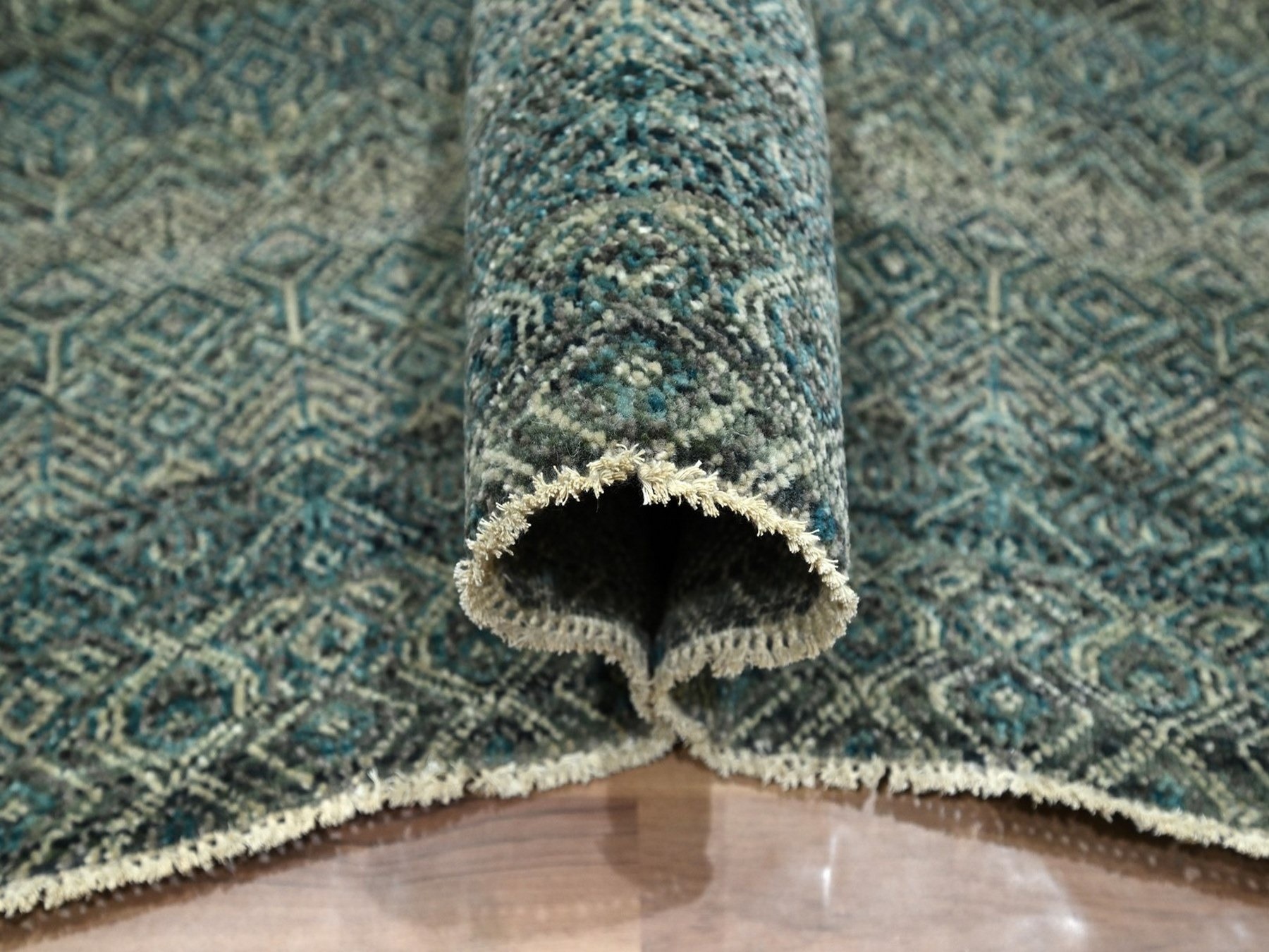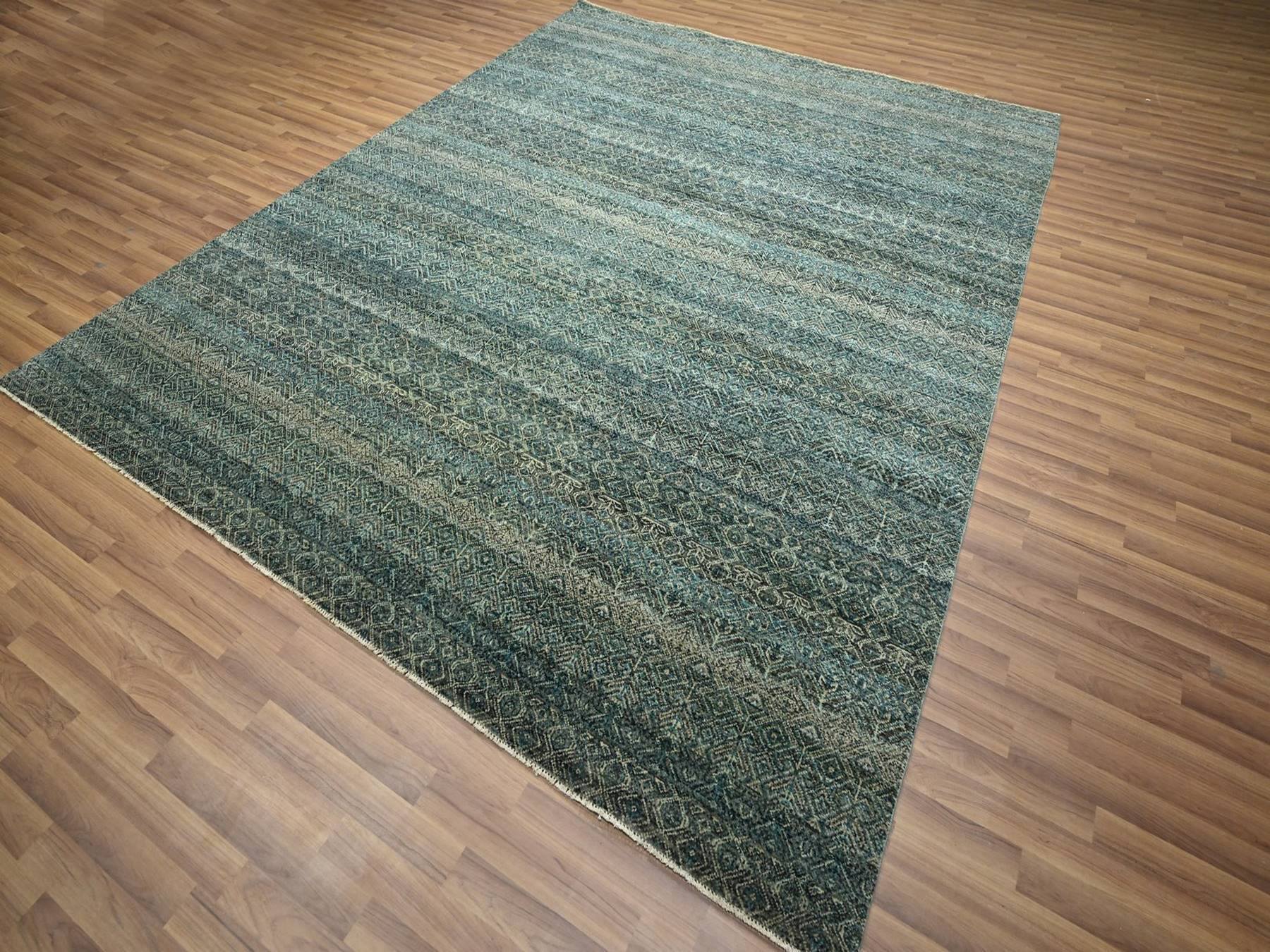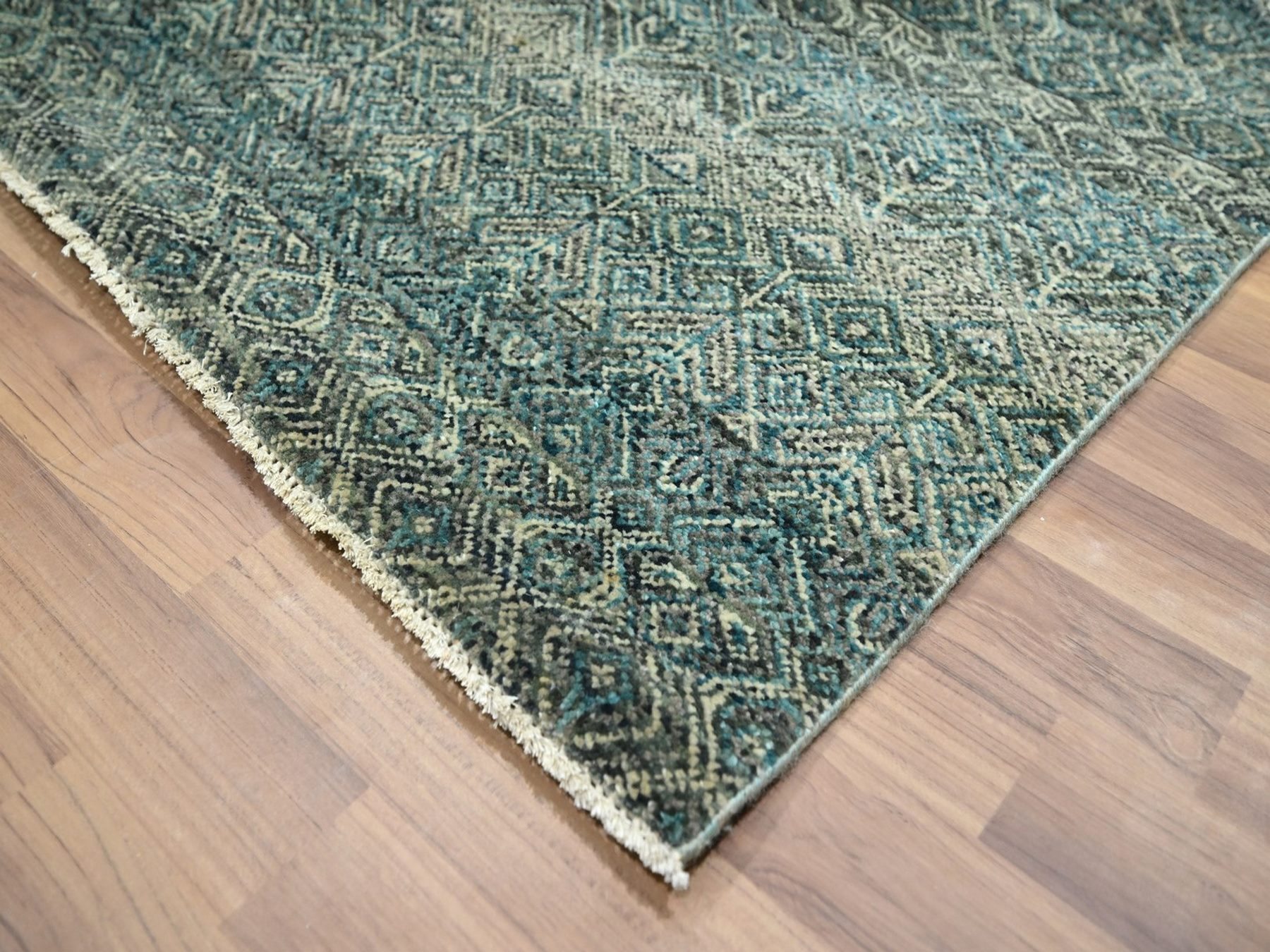 8’1″x10′ Teal Green, Hand Knotted, Kohinoor Herat Pattern, Small Geometric Repetitive Diamond Design, Soft Wool, Tone on Tone, Oriental Rug HR76569